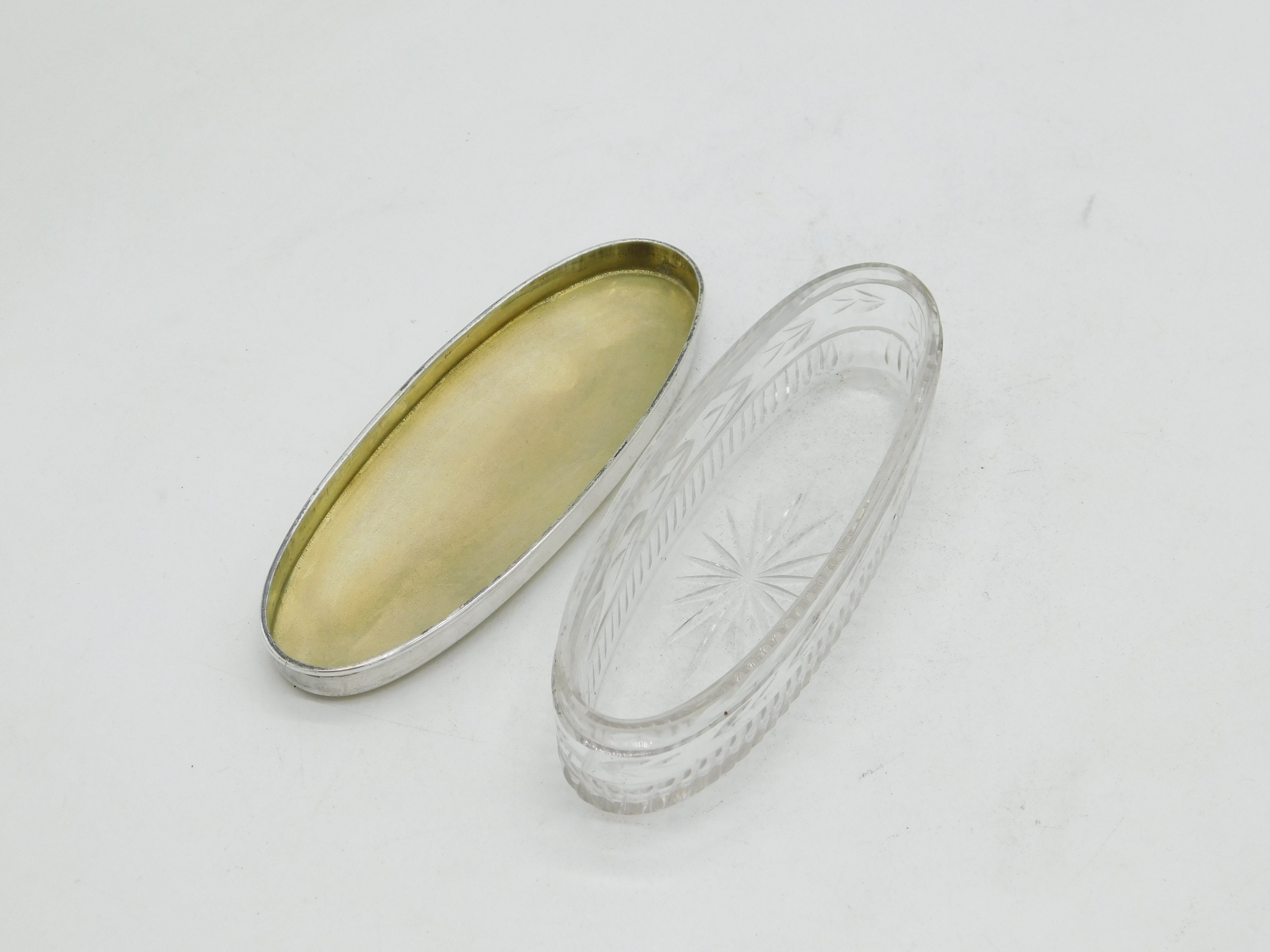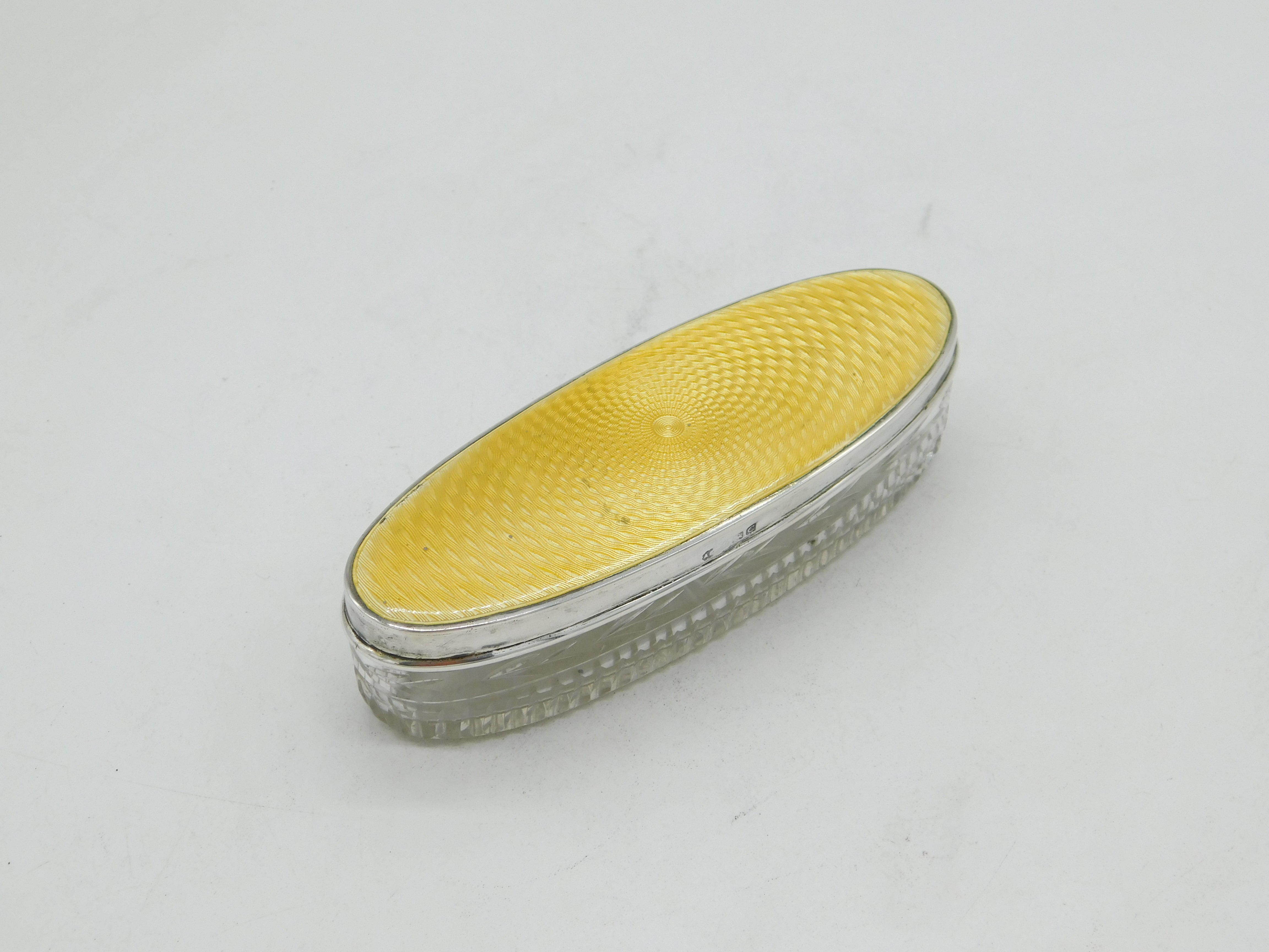 Sterling Silver Yellow Enamel Topped Cut Glass Vanity Box Antique 1927 Deco