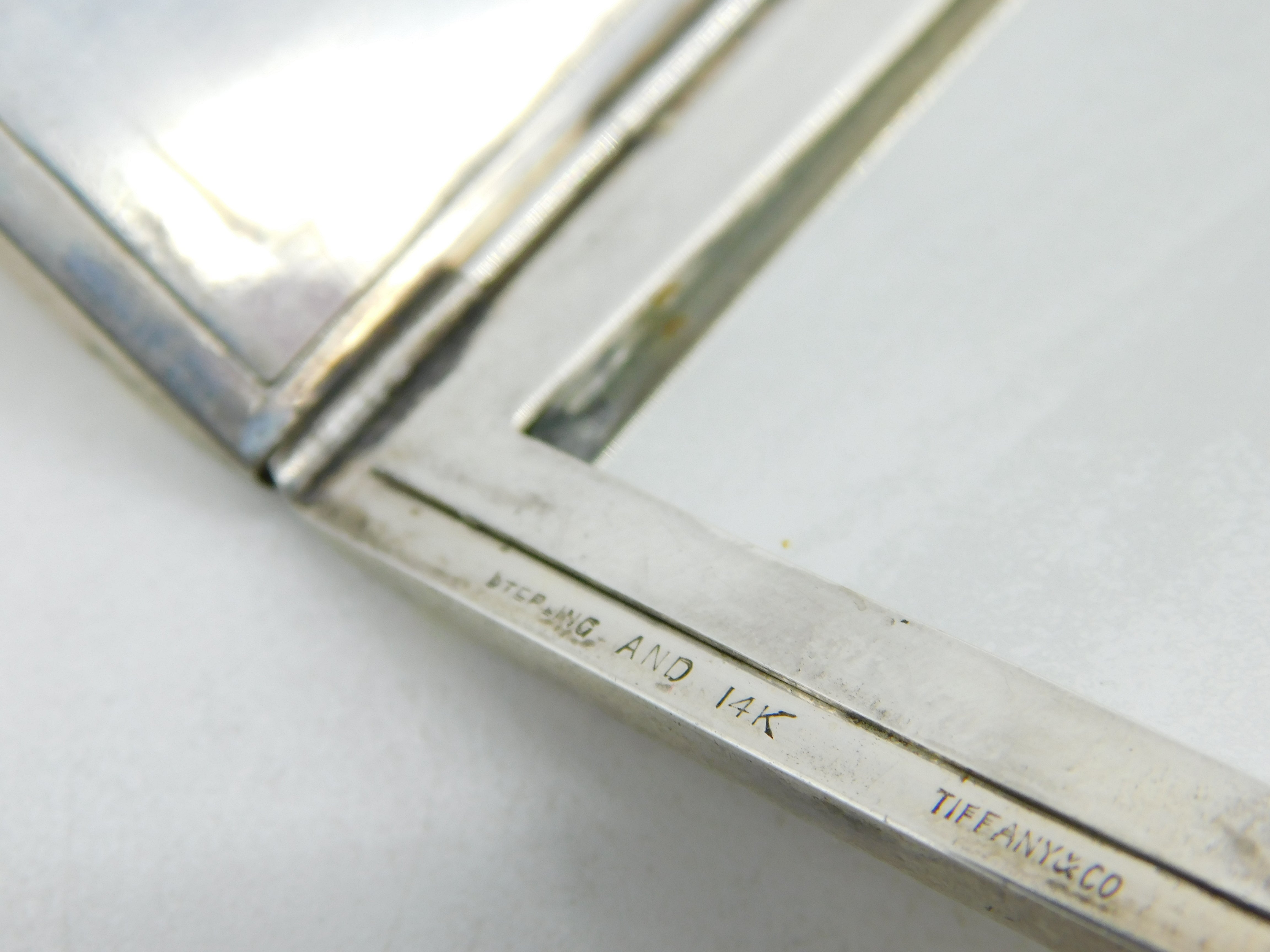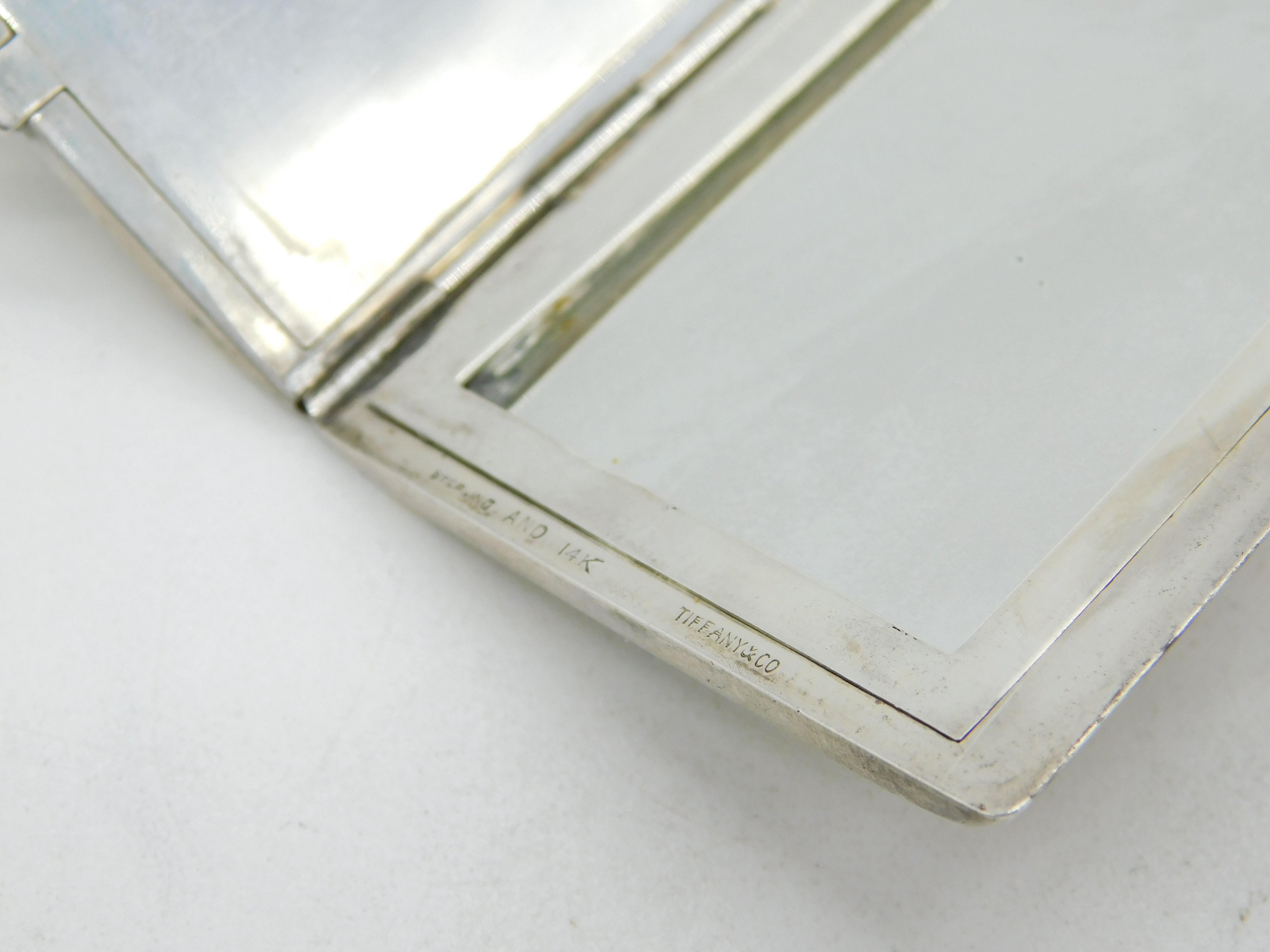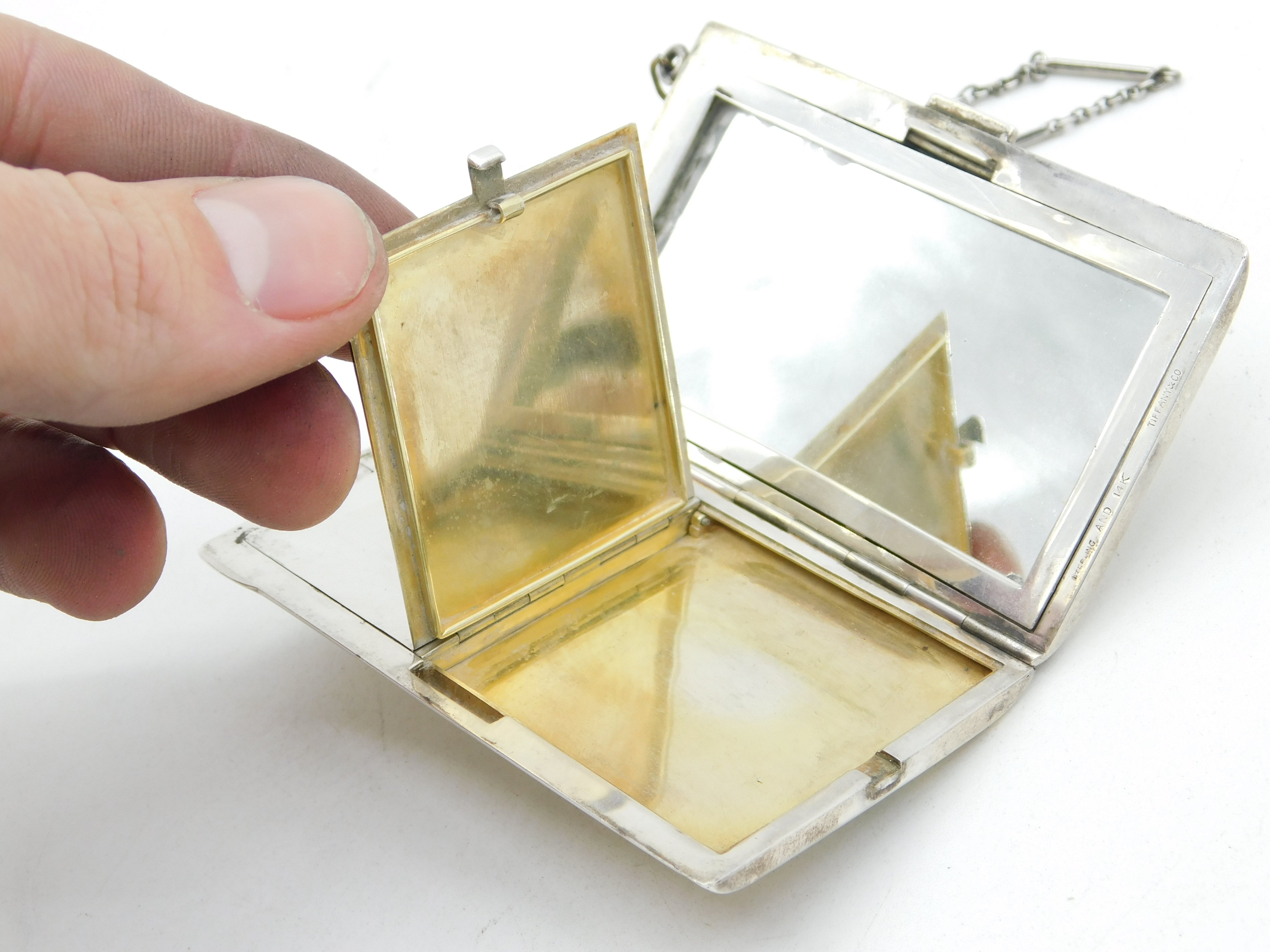 Tiffany & Co. 14ct Gold & Sterling Silver Mirror Compact Antique c1920 Art Deco