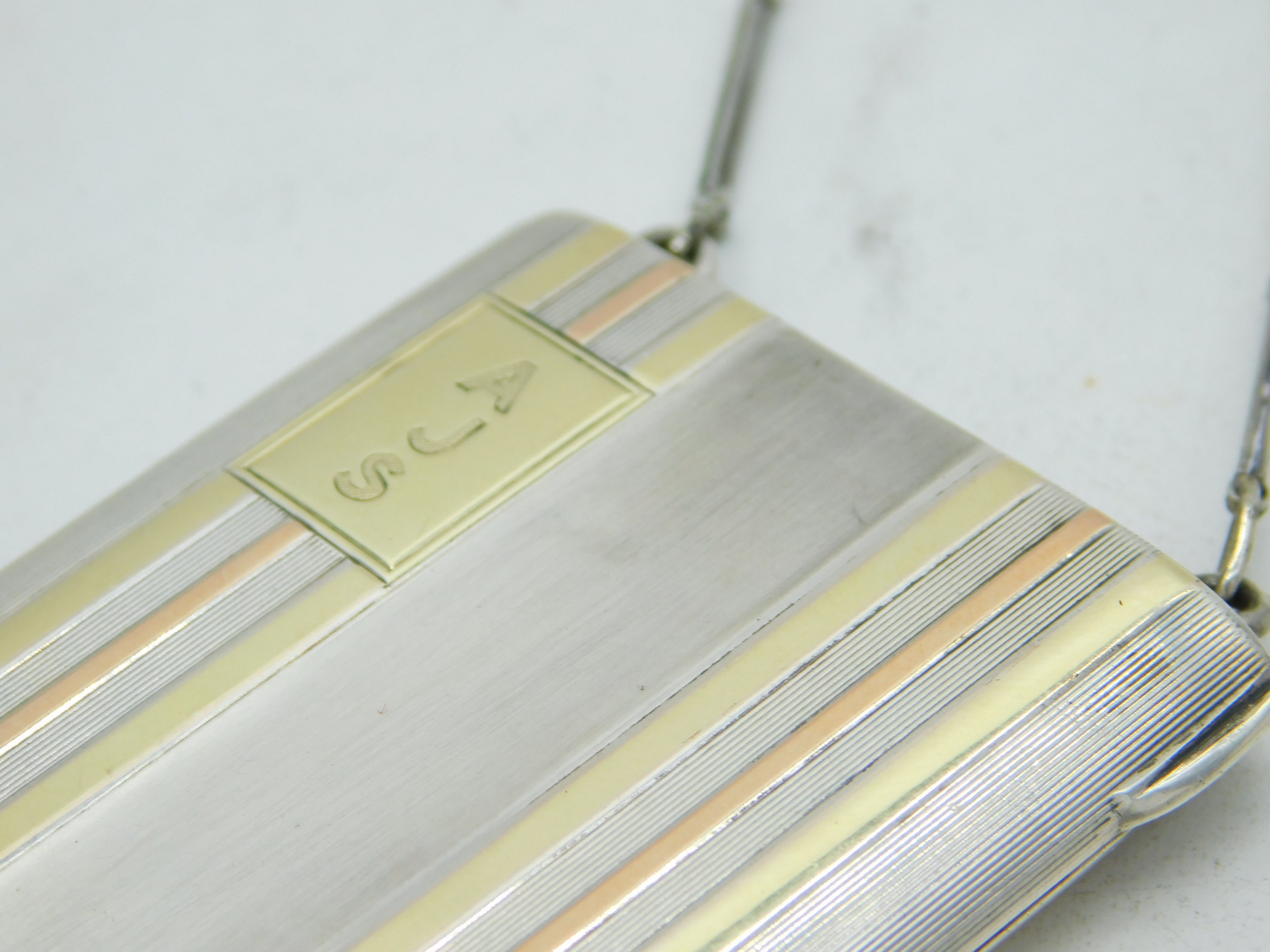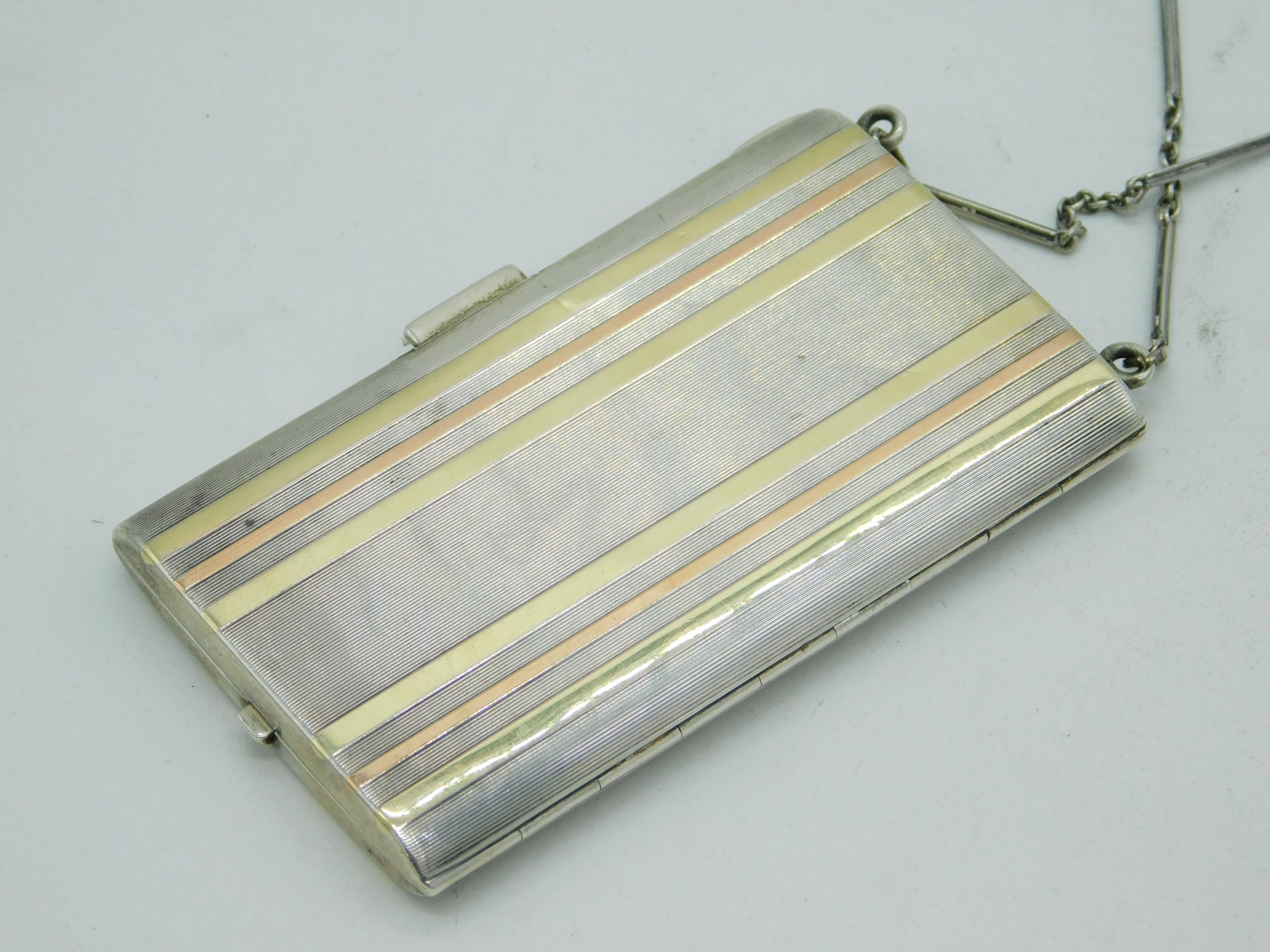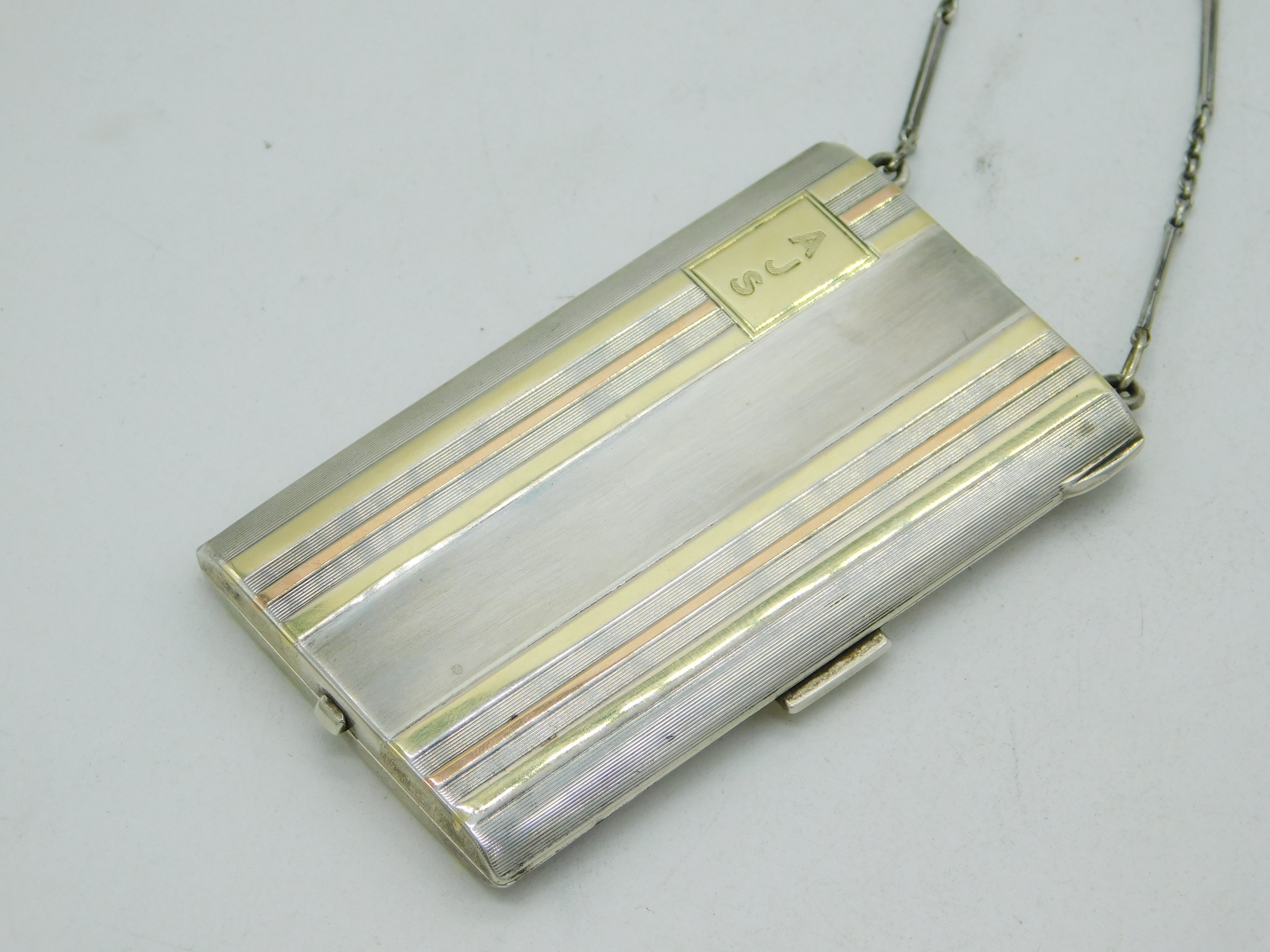 Tiffany & Co. 14ct Gold & Sterling Silver Mirror Compact Antique c1920 Art Deco