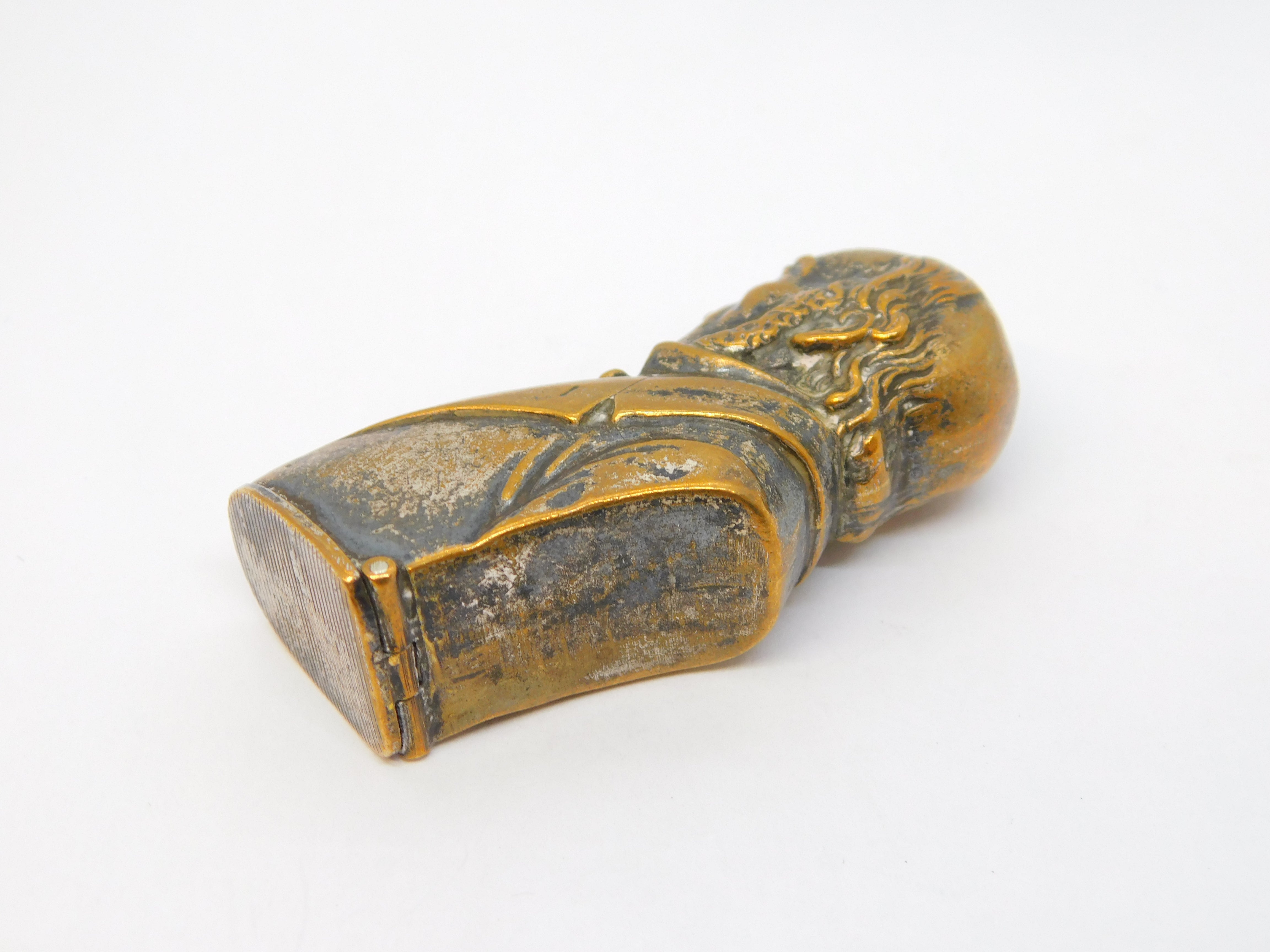 Details: A fantastic and wonderfully designed antique Victorian novelty brass vesta case in the form of William Gladstone c1860. This is a wonderful item that would make a perfect gift or addition to any collection. We are more than happy to provide XRF reports for items upon request.
