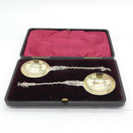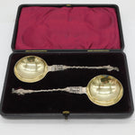 Details: A fantastic and wonderfully designed antique Victorian boxed pair of sterling silver apostle terminal dessert serving spoons with lovely detailing hallmarked Chester 1901 by John Millward Banks. This is a wonderful item that would make a perfect gift or addition to any collection. The BOX pictured is for PRESENTATION ONLY and is NOT included in the listings but used to frame the pictures unless specifically stated otherwise.
