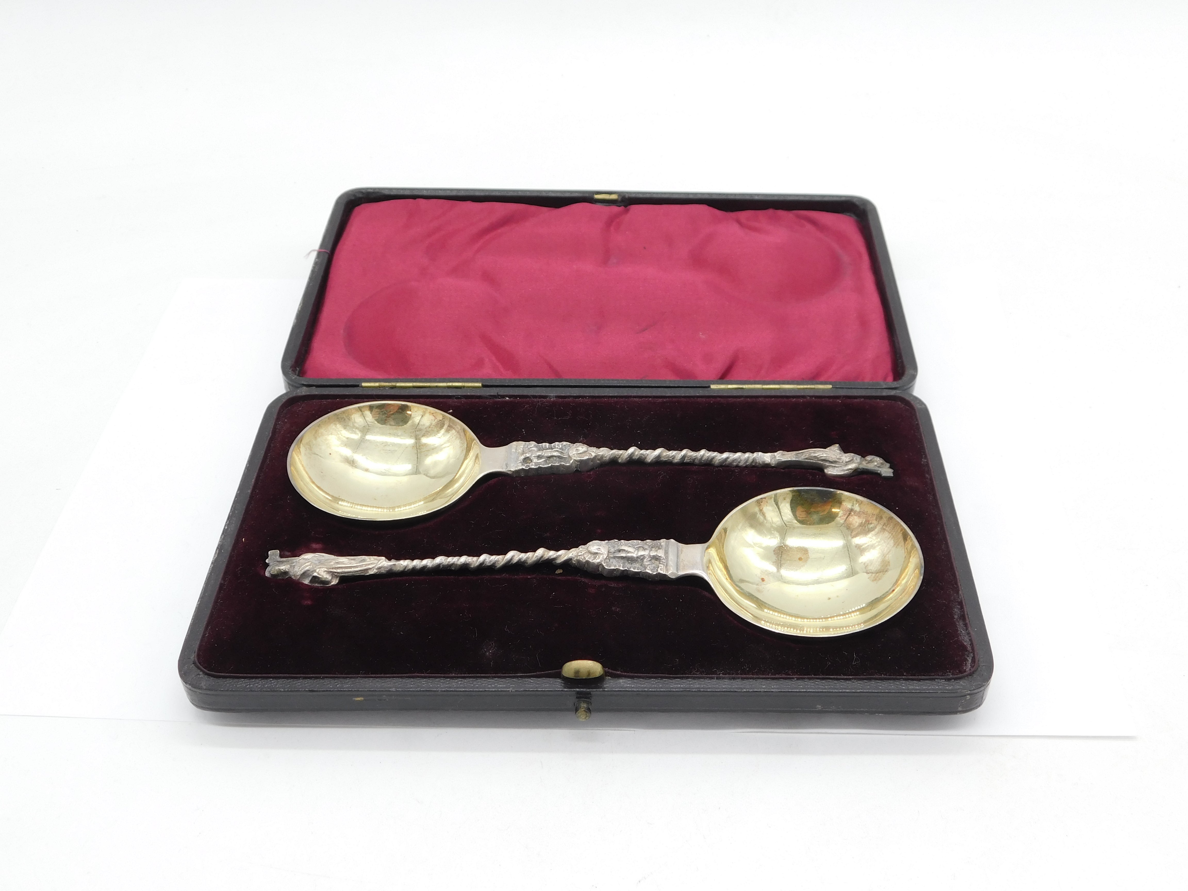 Victorian Pair of Sterling Silver Apostle Dessert Spoons Antique 1901 Chester