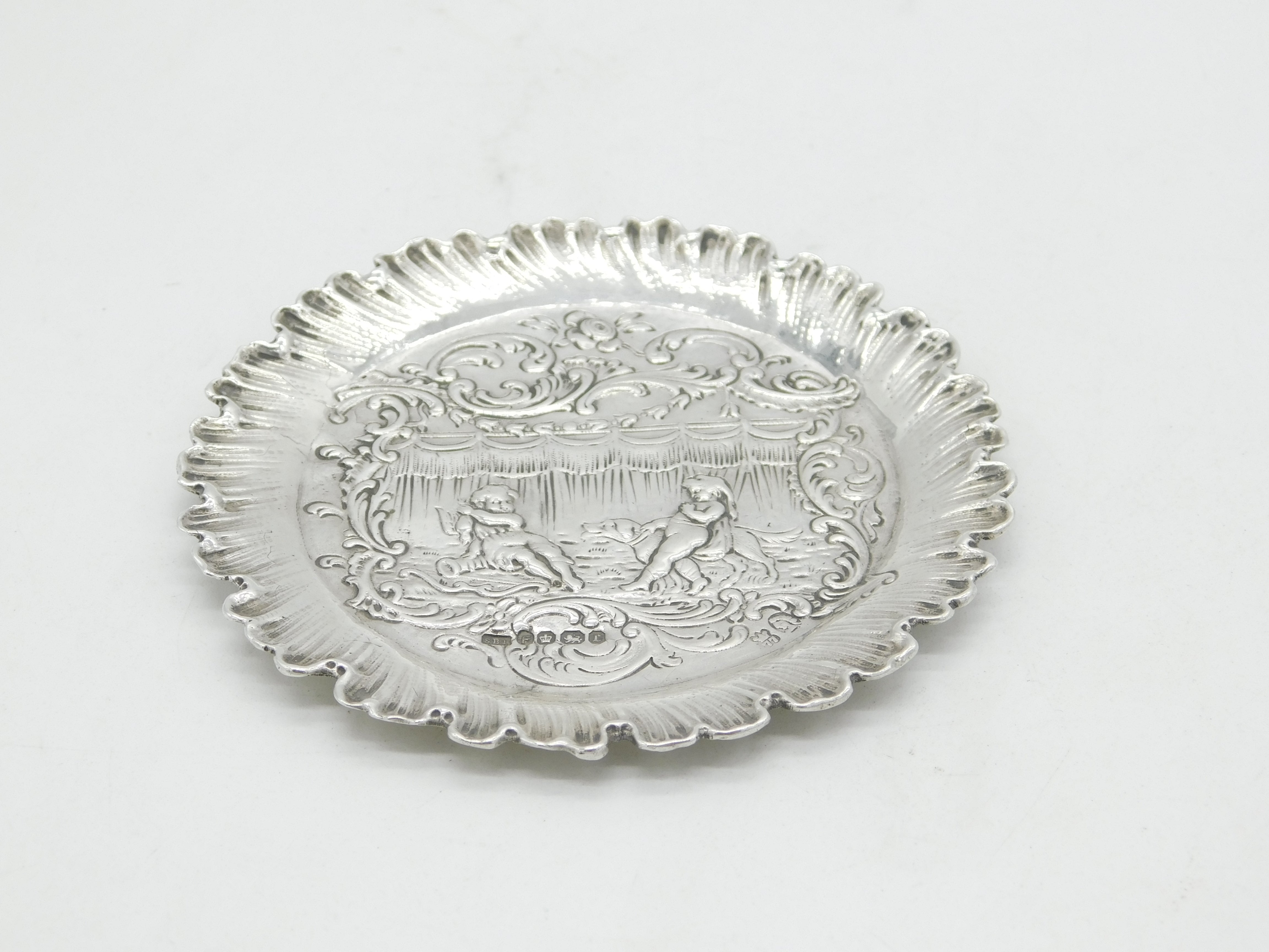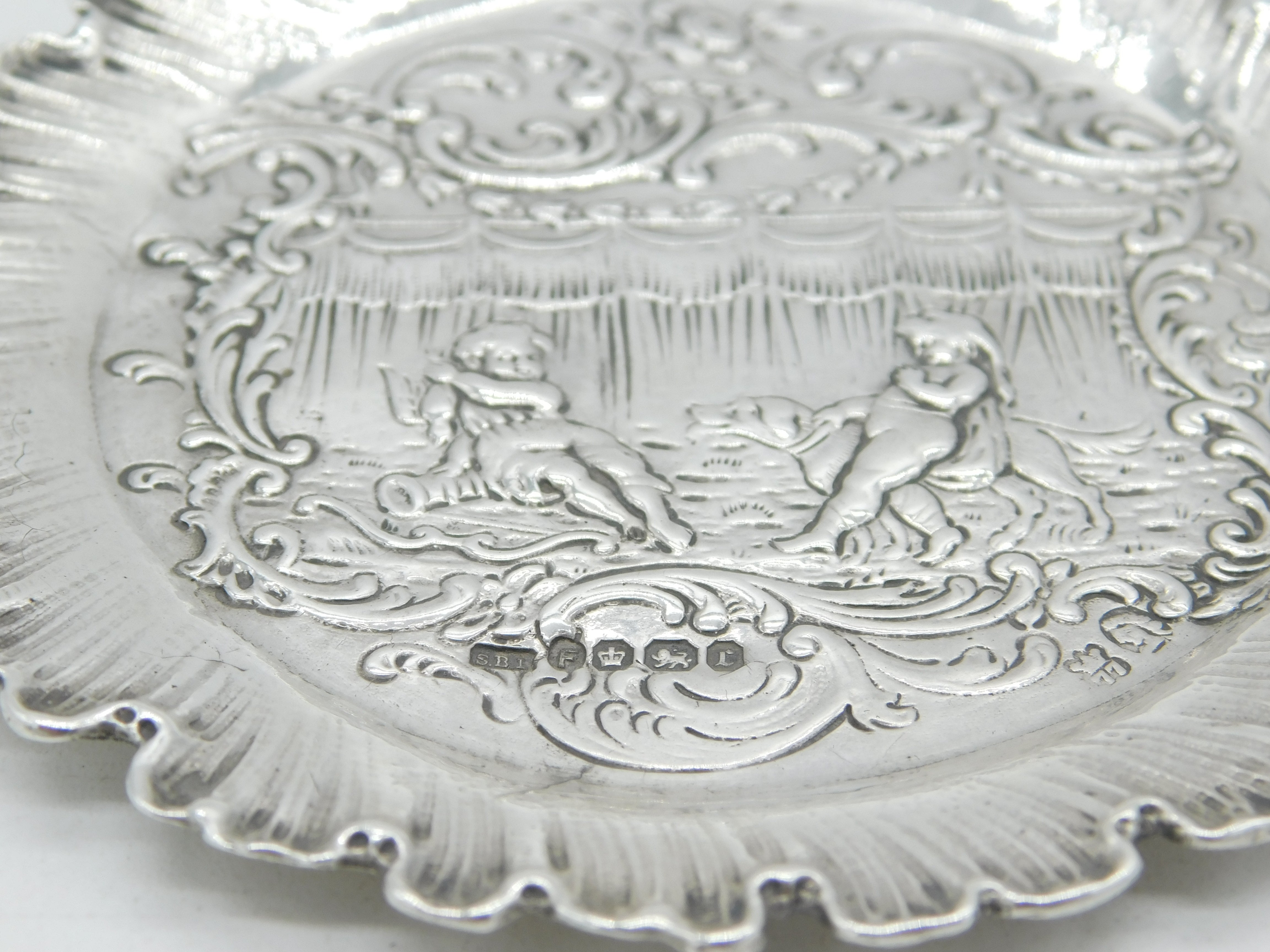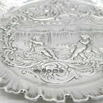 Victorian Sterling Silver Cherub & Dog Pattern Ring Dish Antique 1895 Sheffield