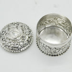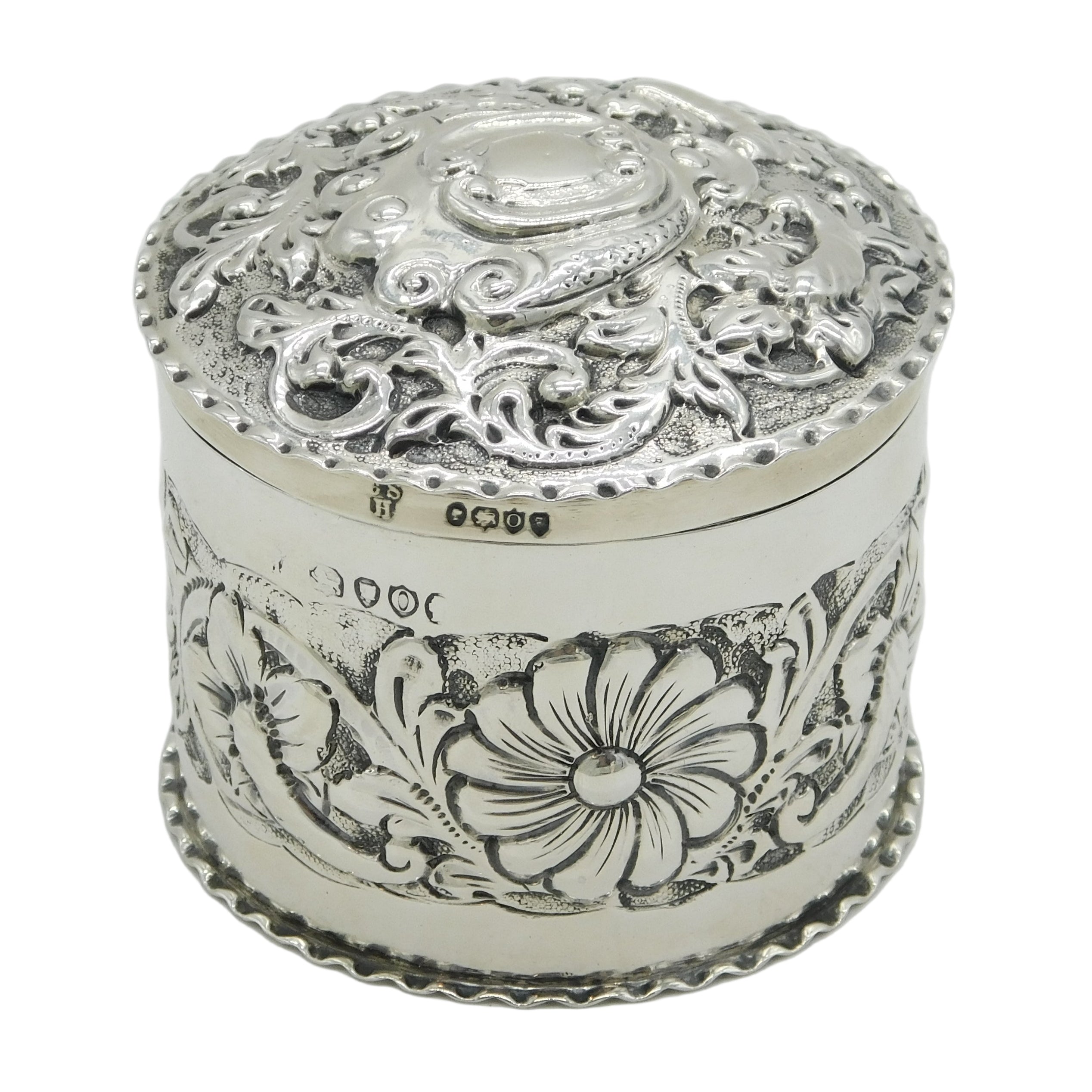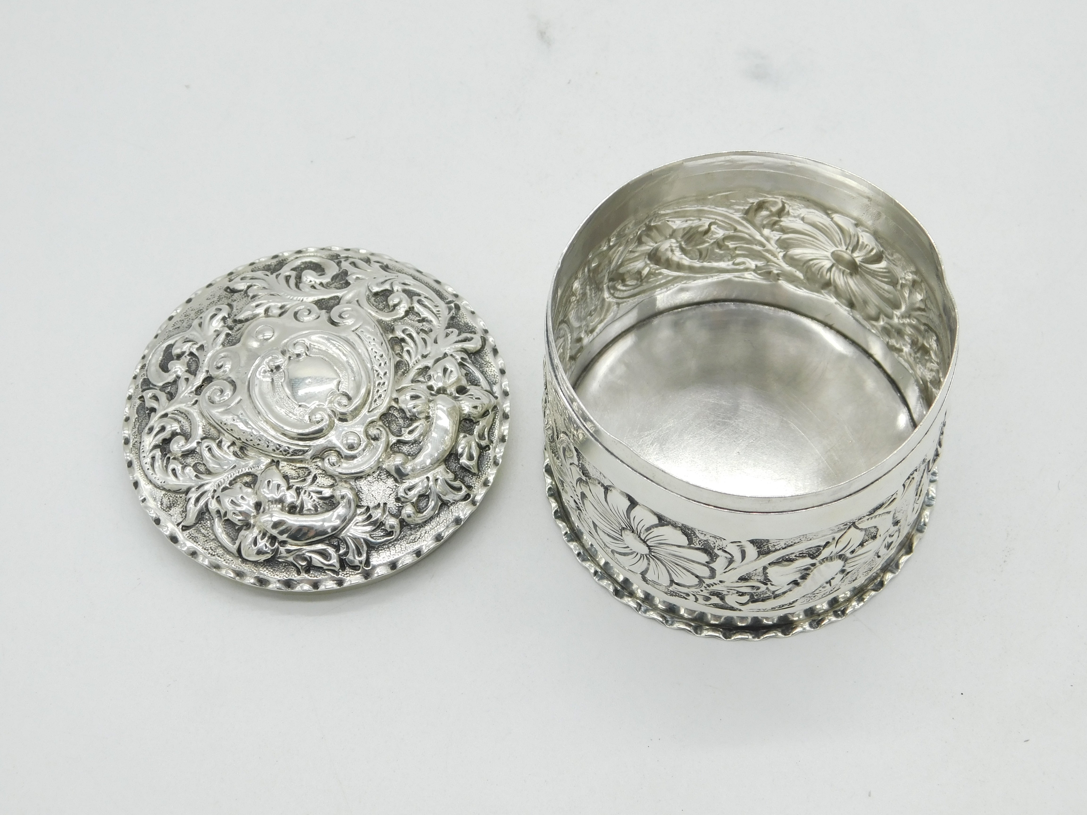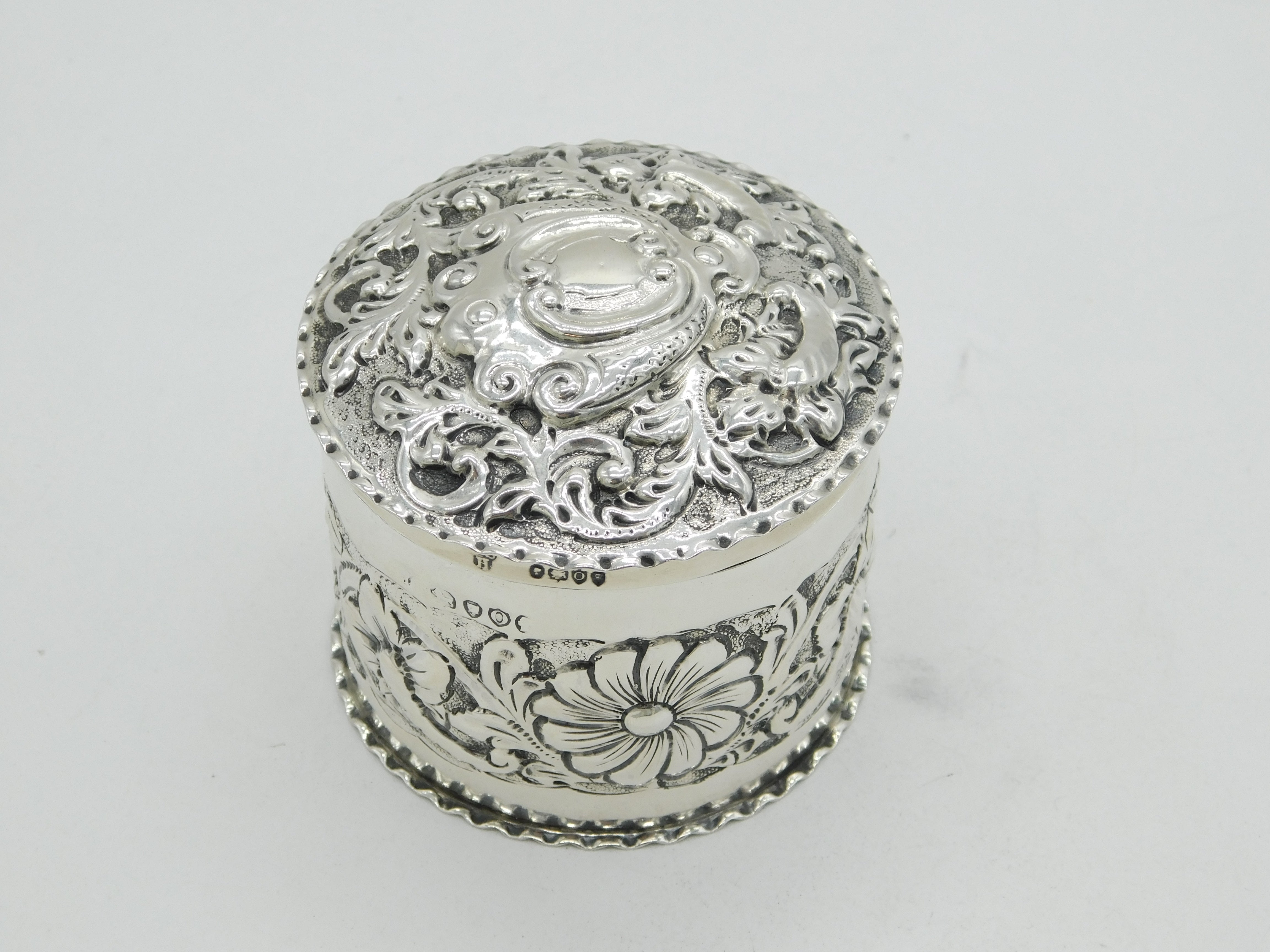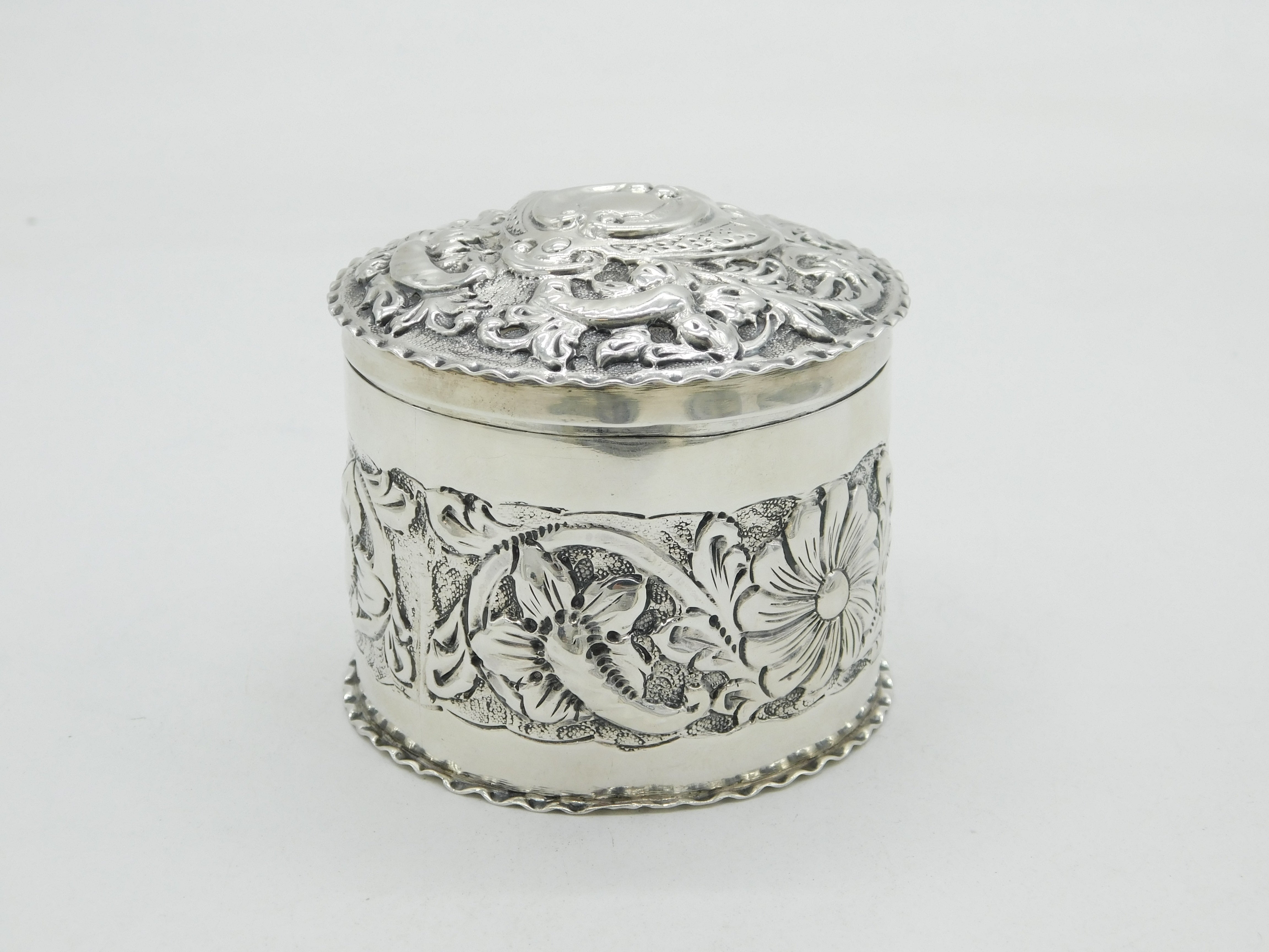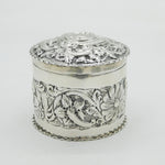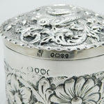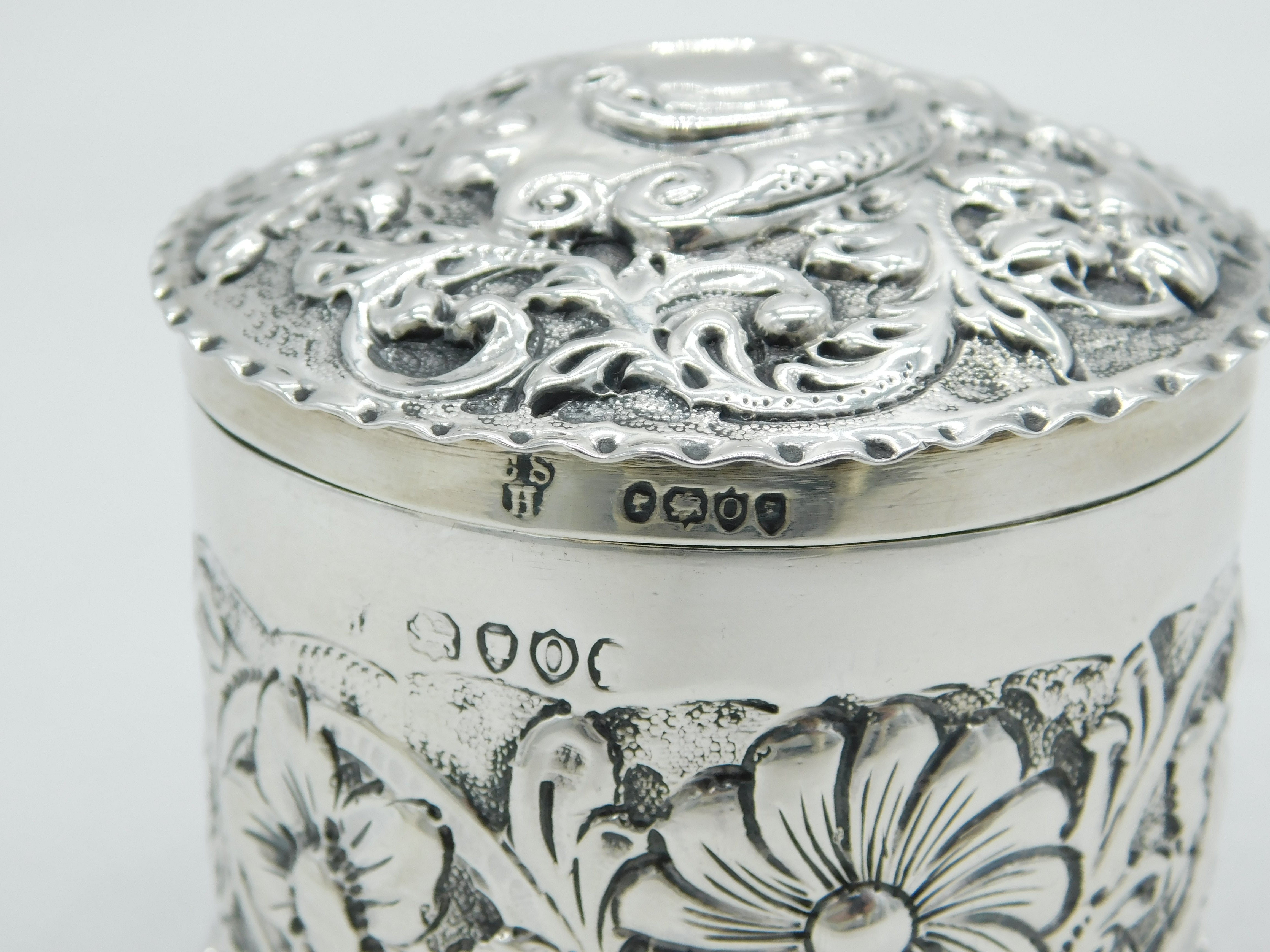 Victorian Sterling Silver Floral Embossed Trinket Pot Antique 1891 London