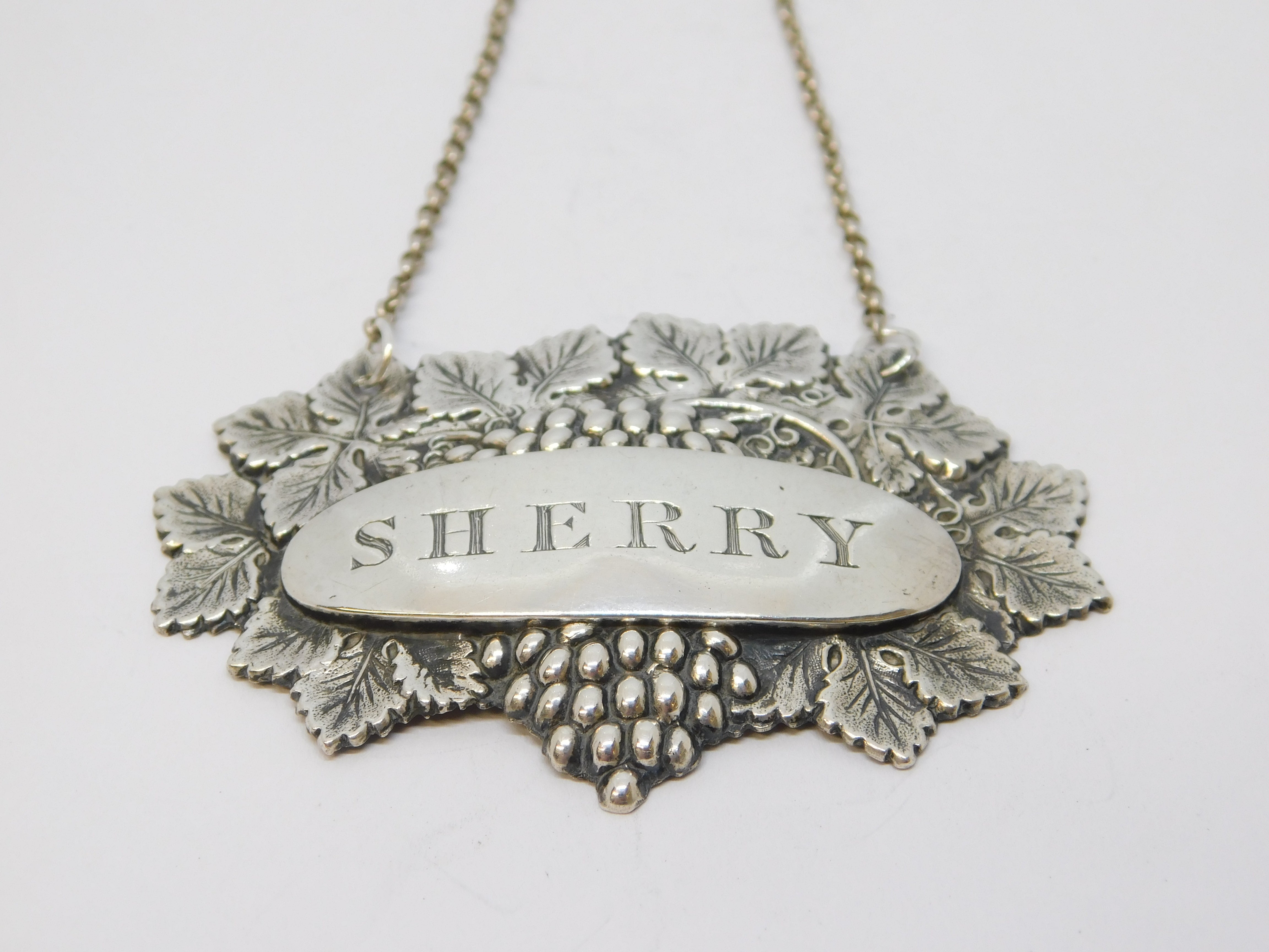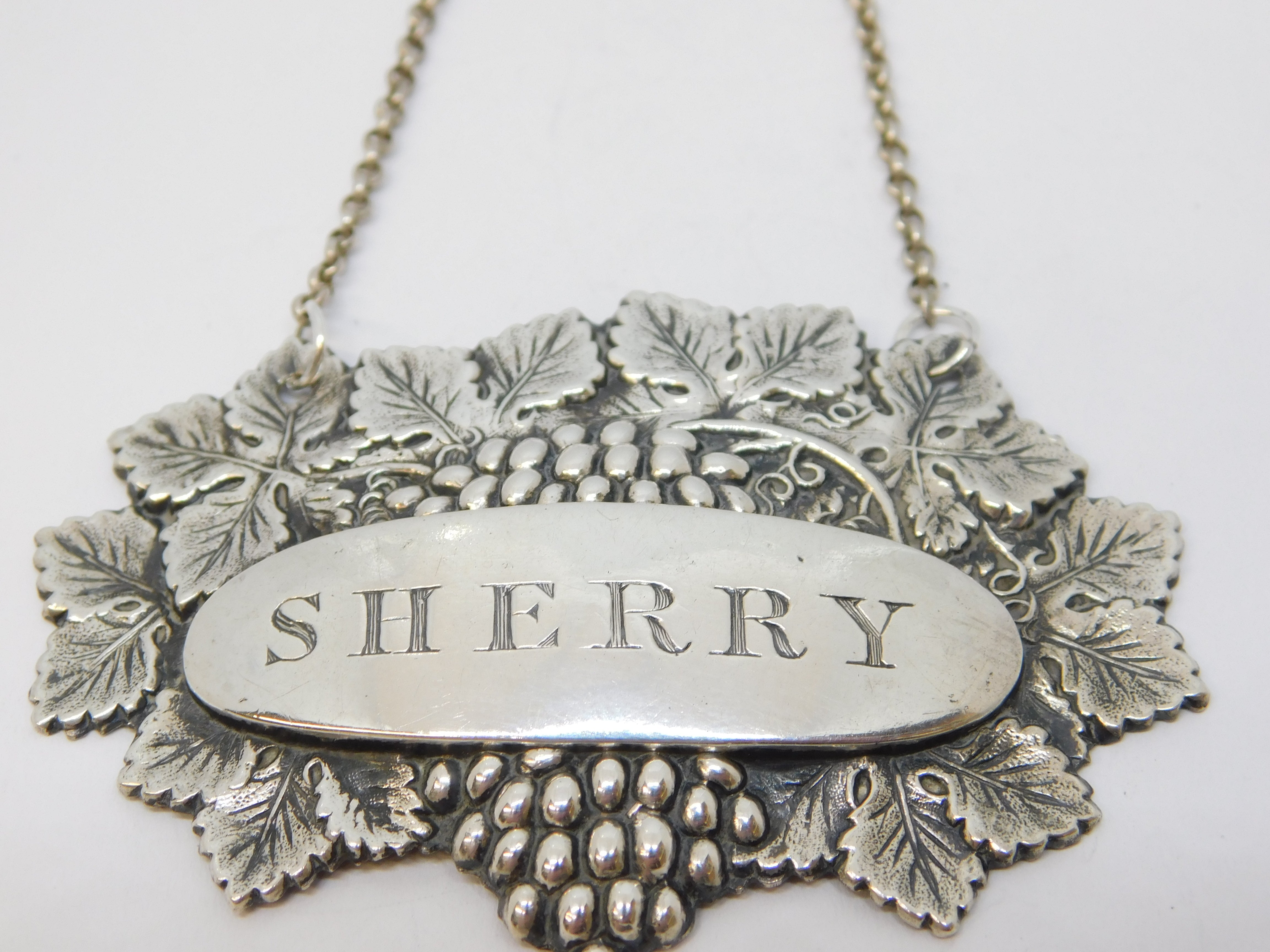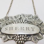 Victorian Sterling Silver Leaf & Vine Sherry Decanter Label Antique 1840 Birmingham