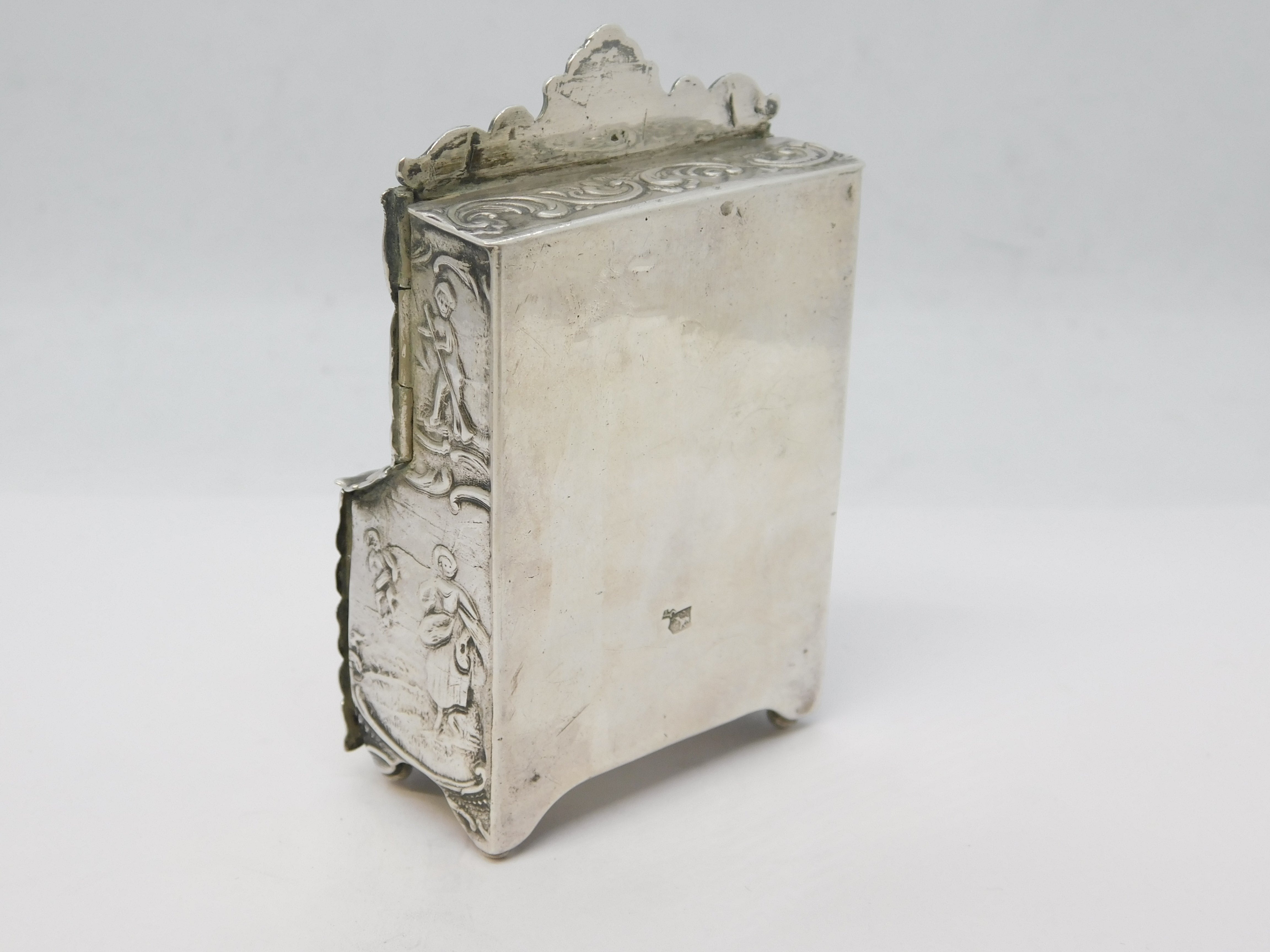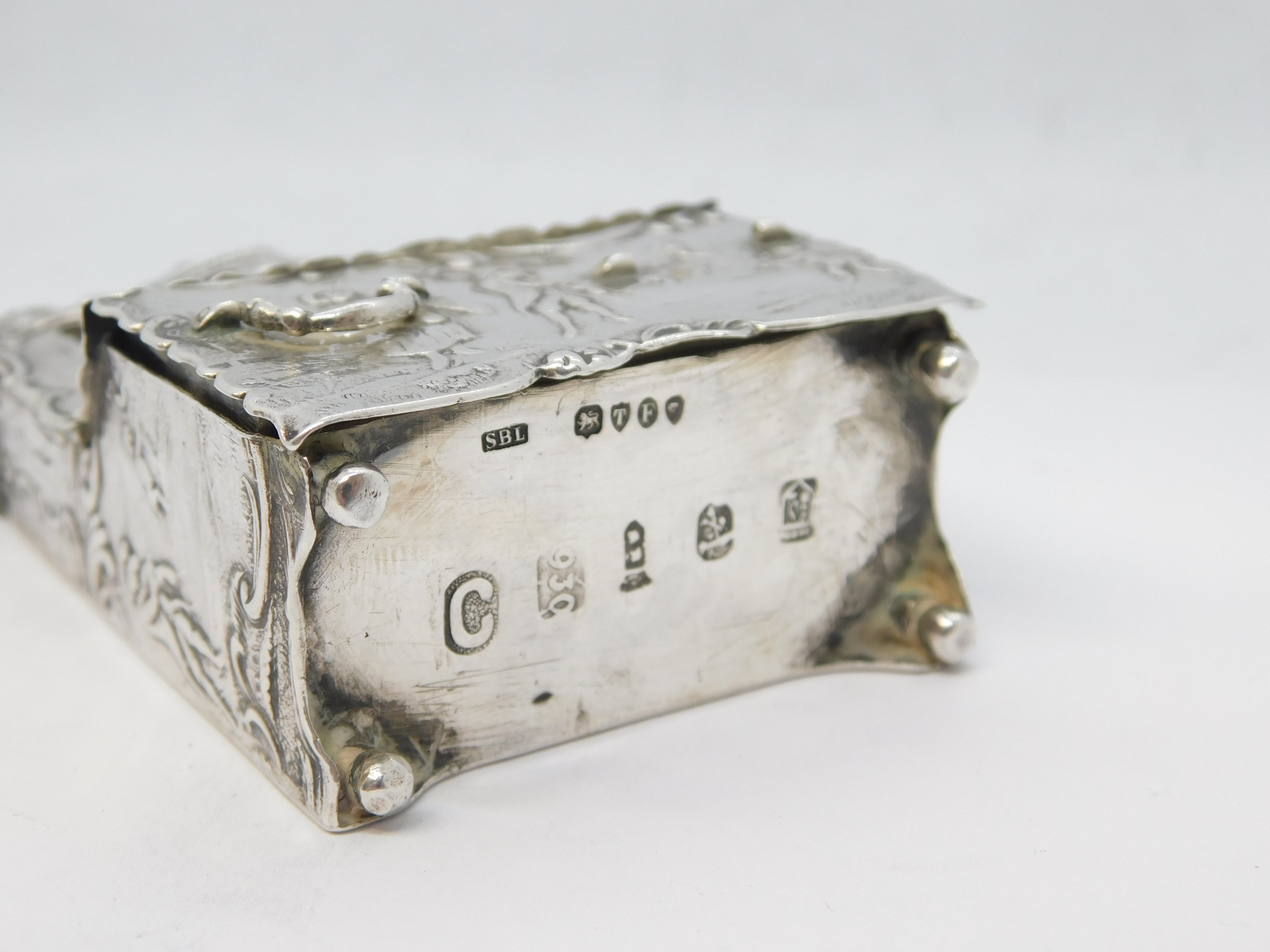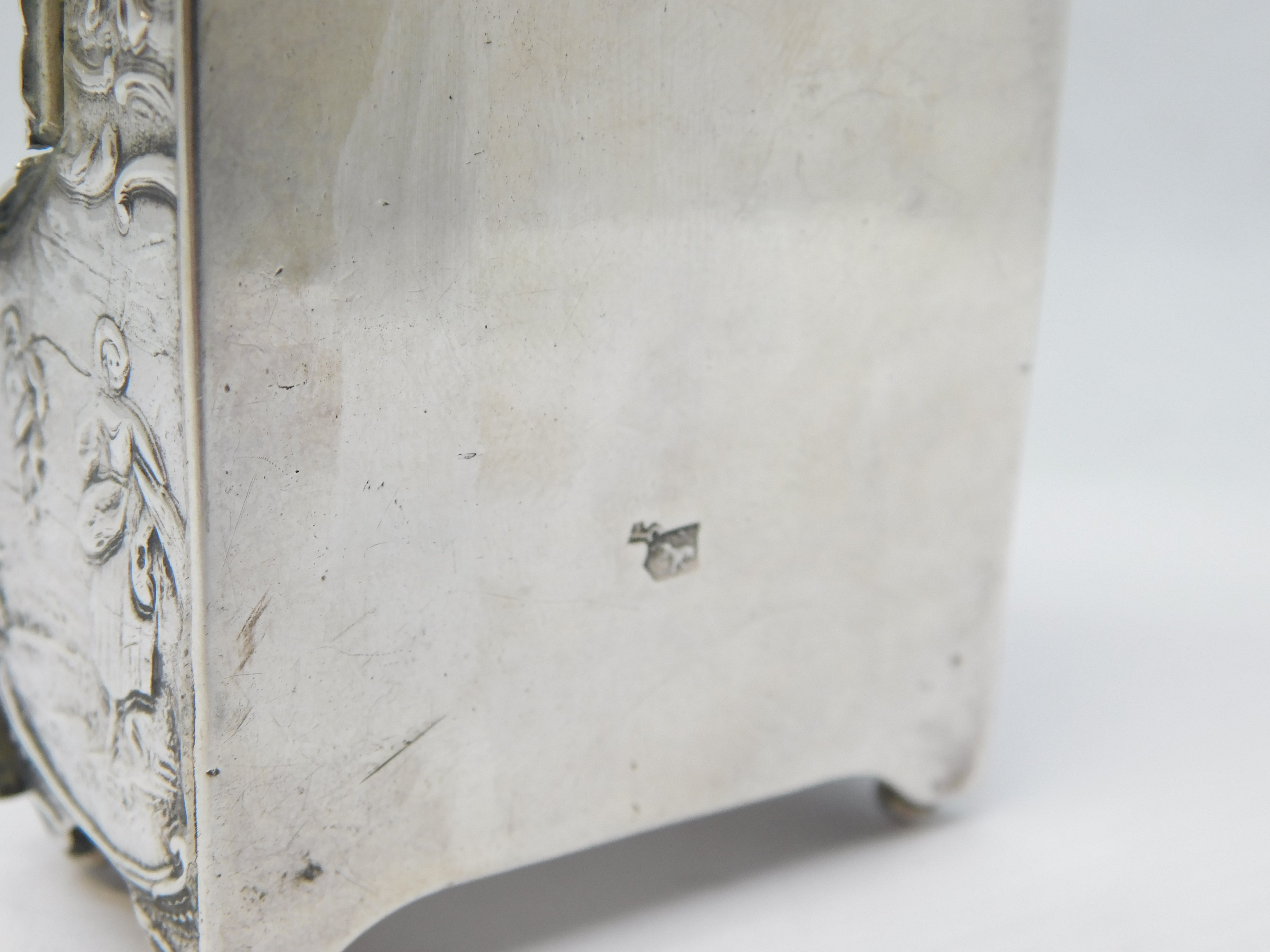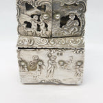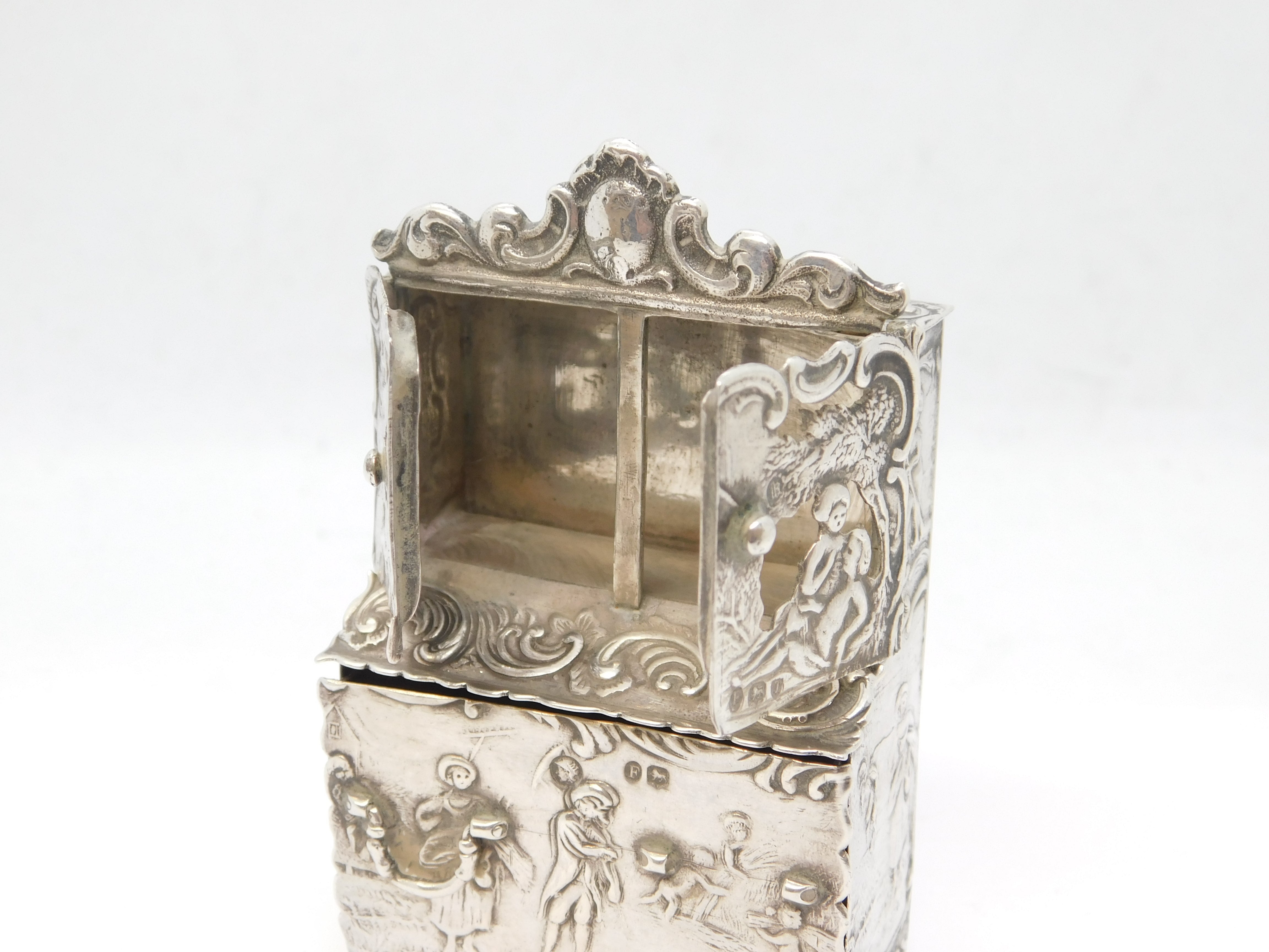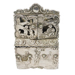 Details: A fantastic and wonderfully designed antique late-Victorian sterling silver miniature wardrobe with heavily decorated embossed details - two opening doors to the top and drawer to the bottom, one of the draw handles has broken please note and the top doors don't close flush, hallmarked London 1894 to the base with import hallmarks. This is a wonderful item that would make a perfect gift or addition to any collection. We are more than happy to provide XRF reports for items upon request.