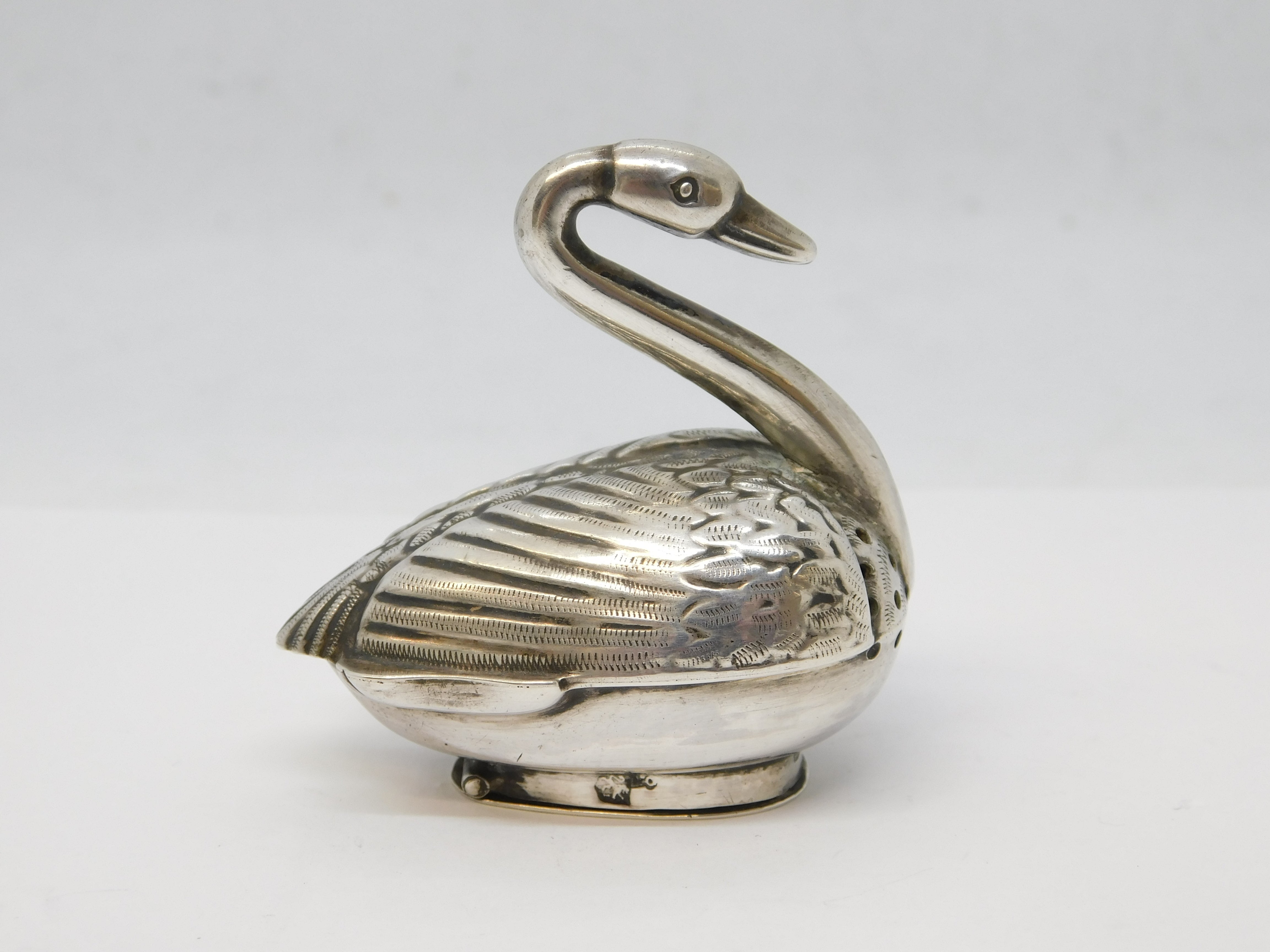 Victorian Sterling Silver Novelty Swan Pepper Shaker Antique 1901 Sheffield
