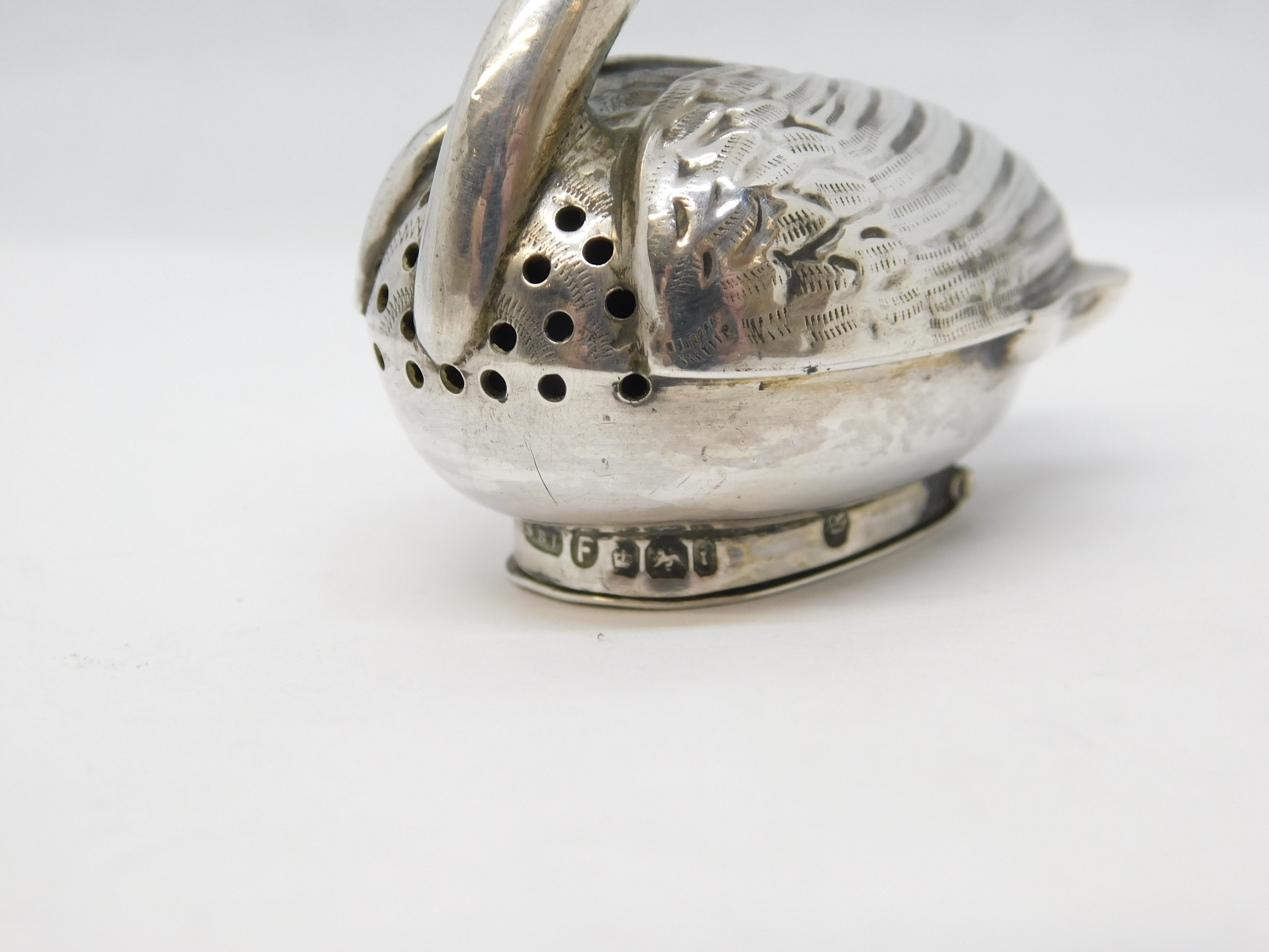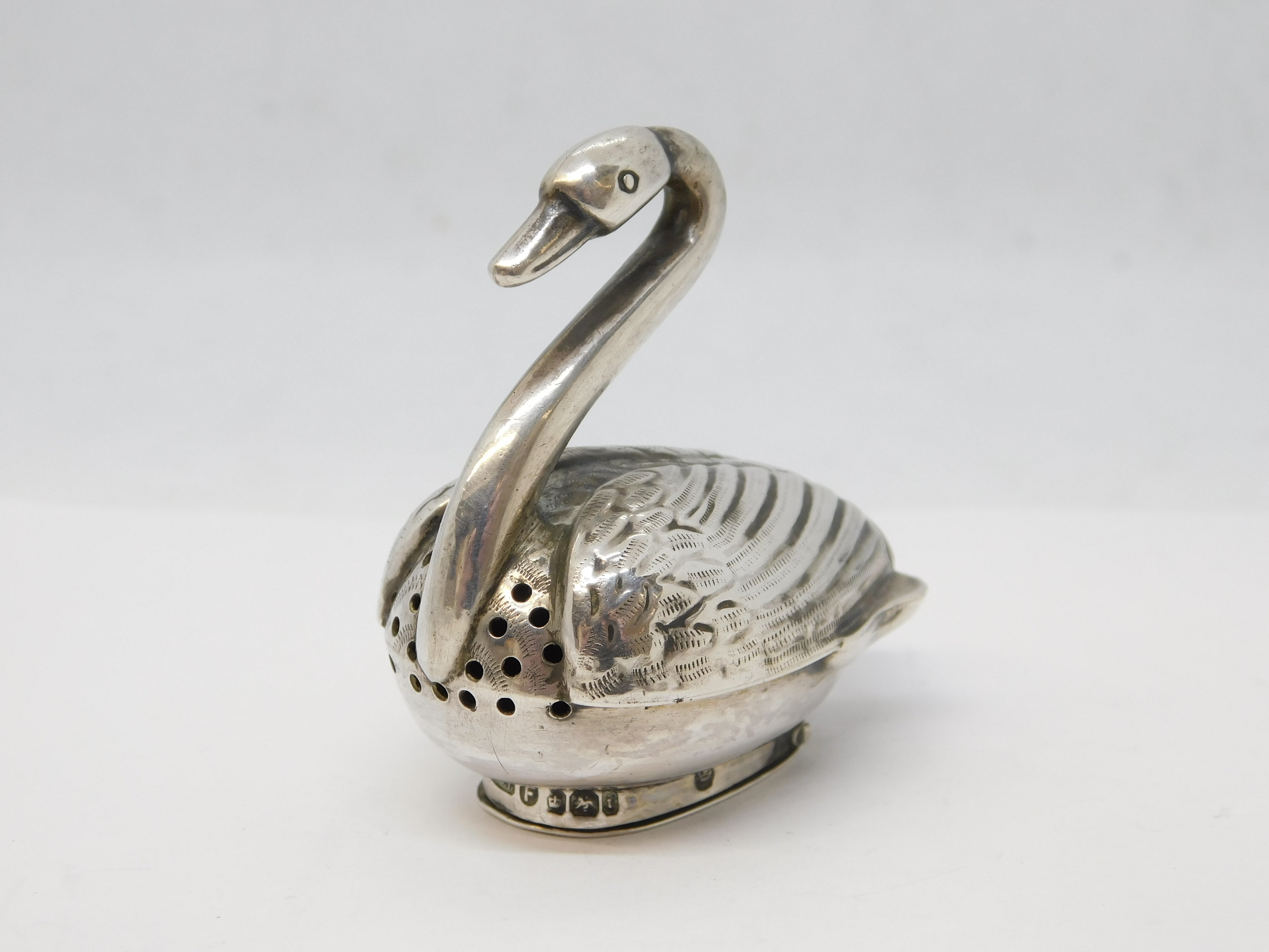 Details: A fantastic and wonderfully designed antique Victorian sterling silver novelty swan form pepper shaker with lovely detailing hallmarked for Sheffield 1901 by Samuel Boyce Landeck. This is a wonderful item that would make a perfect gift or addition to any collection. We are more than happy to provide XRF reports for items upon request.
