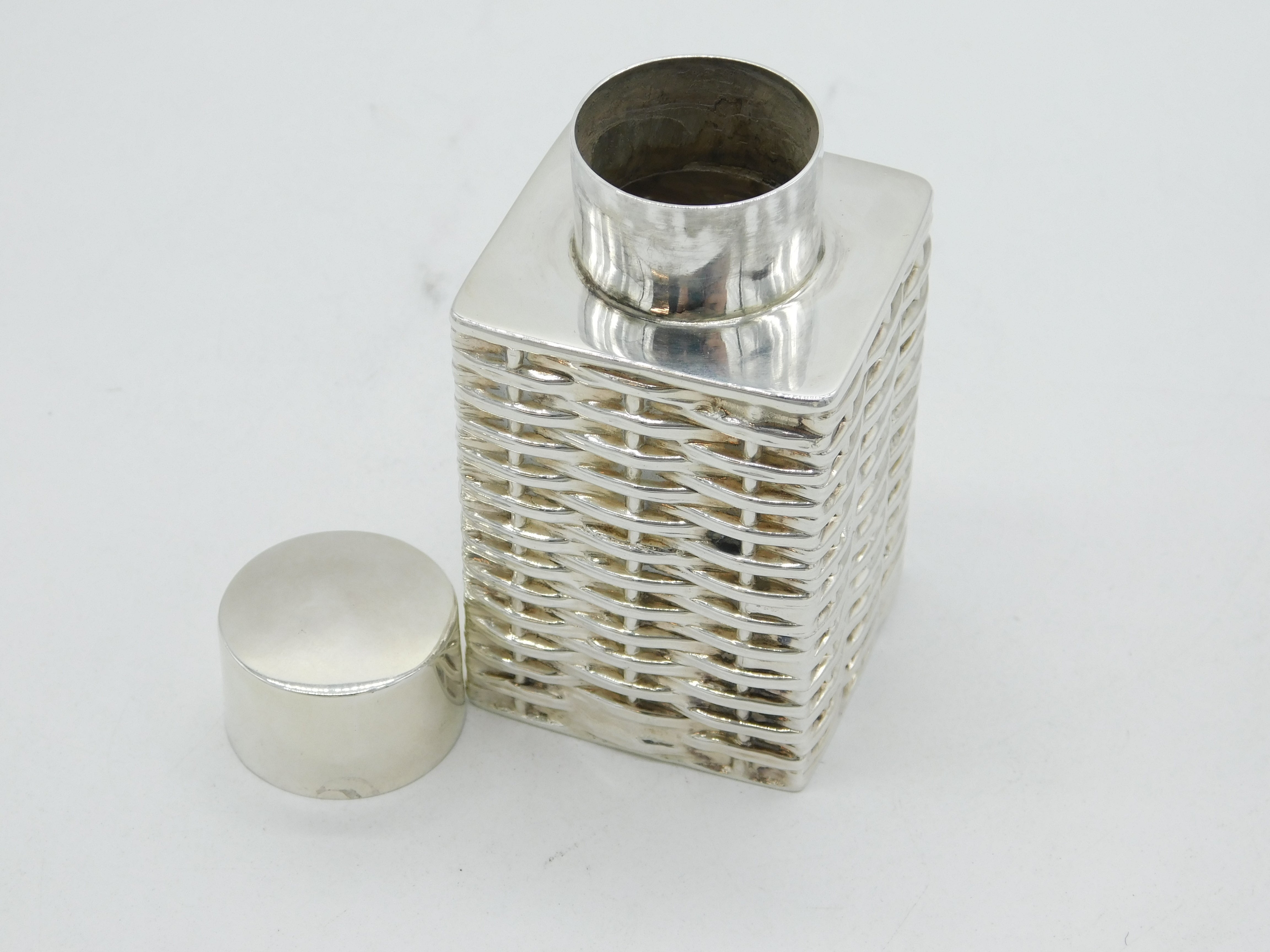 Victorian Sterling Silver Wicker Style Small Tea Caddy Antique 1900 Sheffield