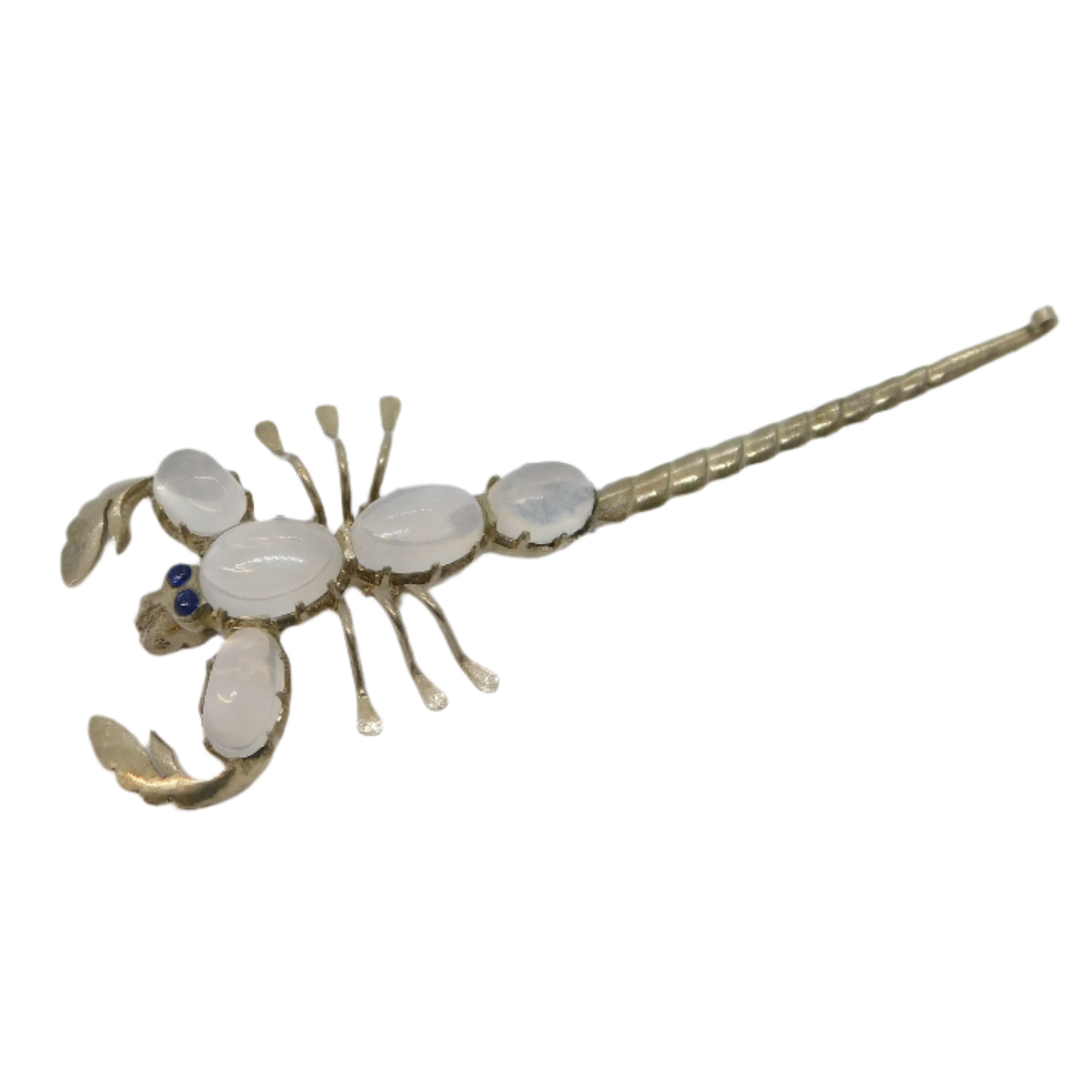 Sterling Silver Moonstone Cabochon Set Scorpion Brooch Antique c1920 Art Deco