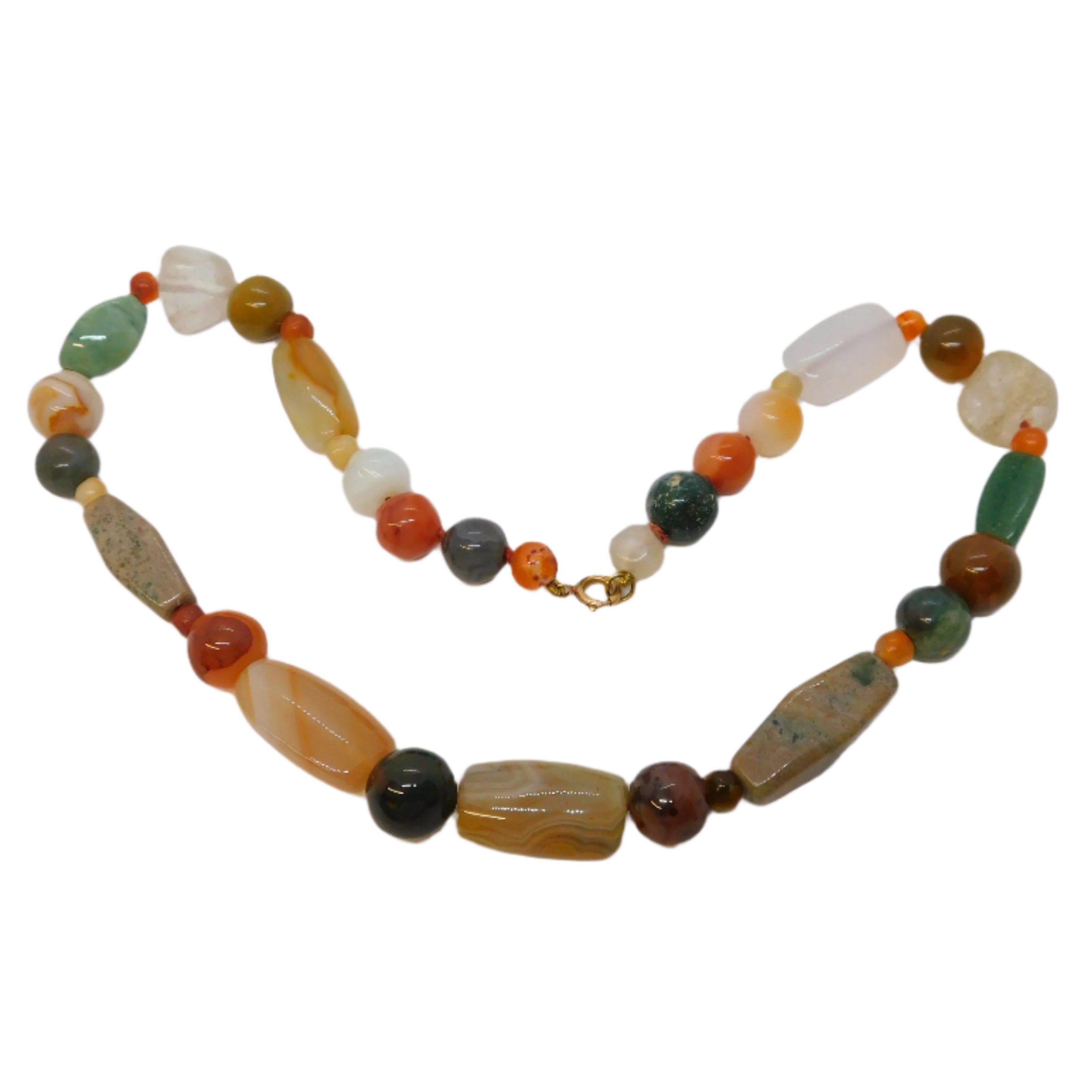 9ct Rose Gold Beaded Agate Graduating Necklace Antique c1930 Art Deco