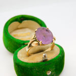 14ct Yellow Gold & Amethyst Set Leaf Pattern Dress Ring Antique c1940 Art Deco