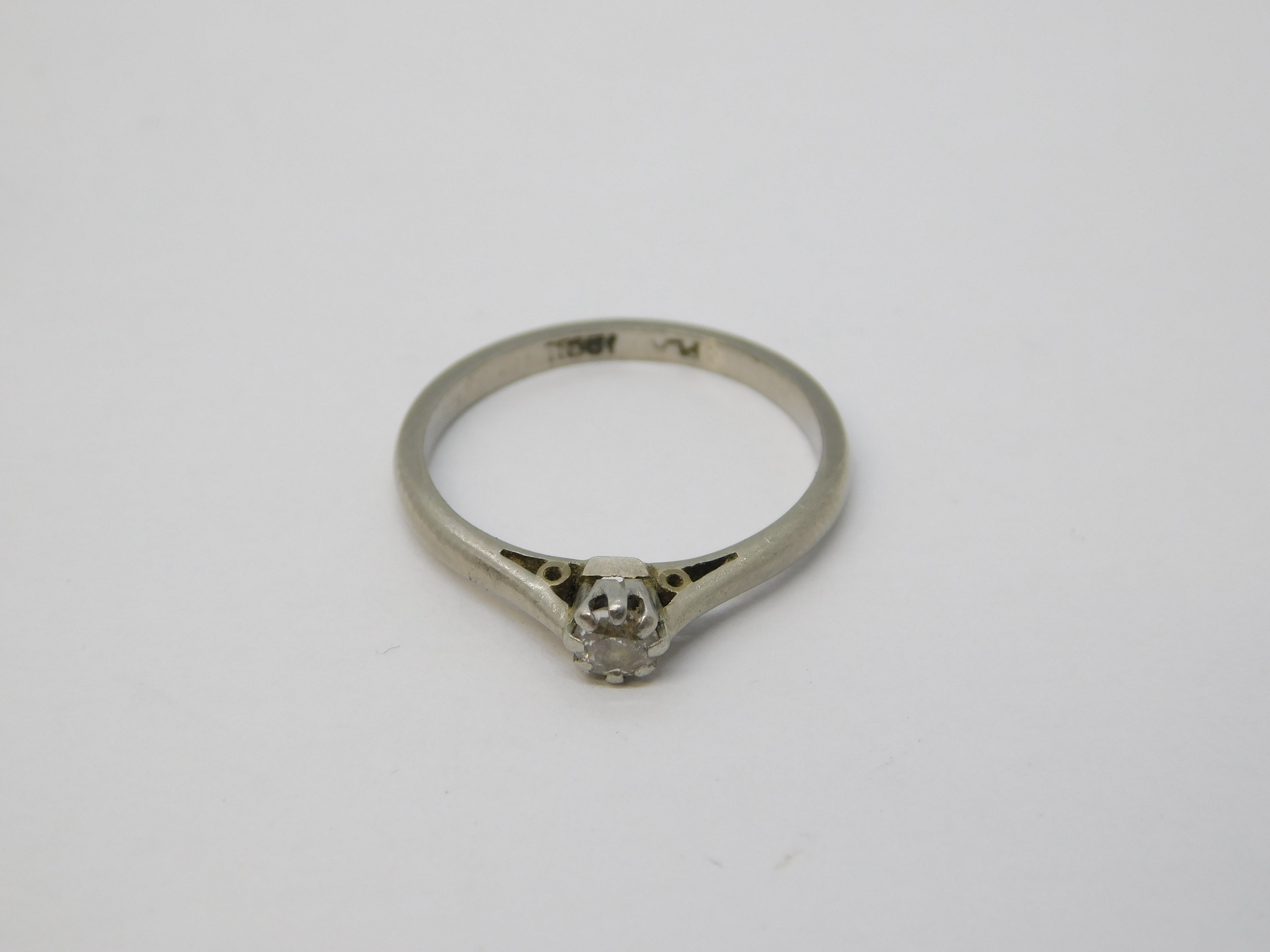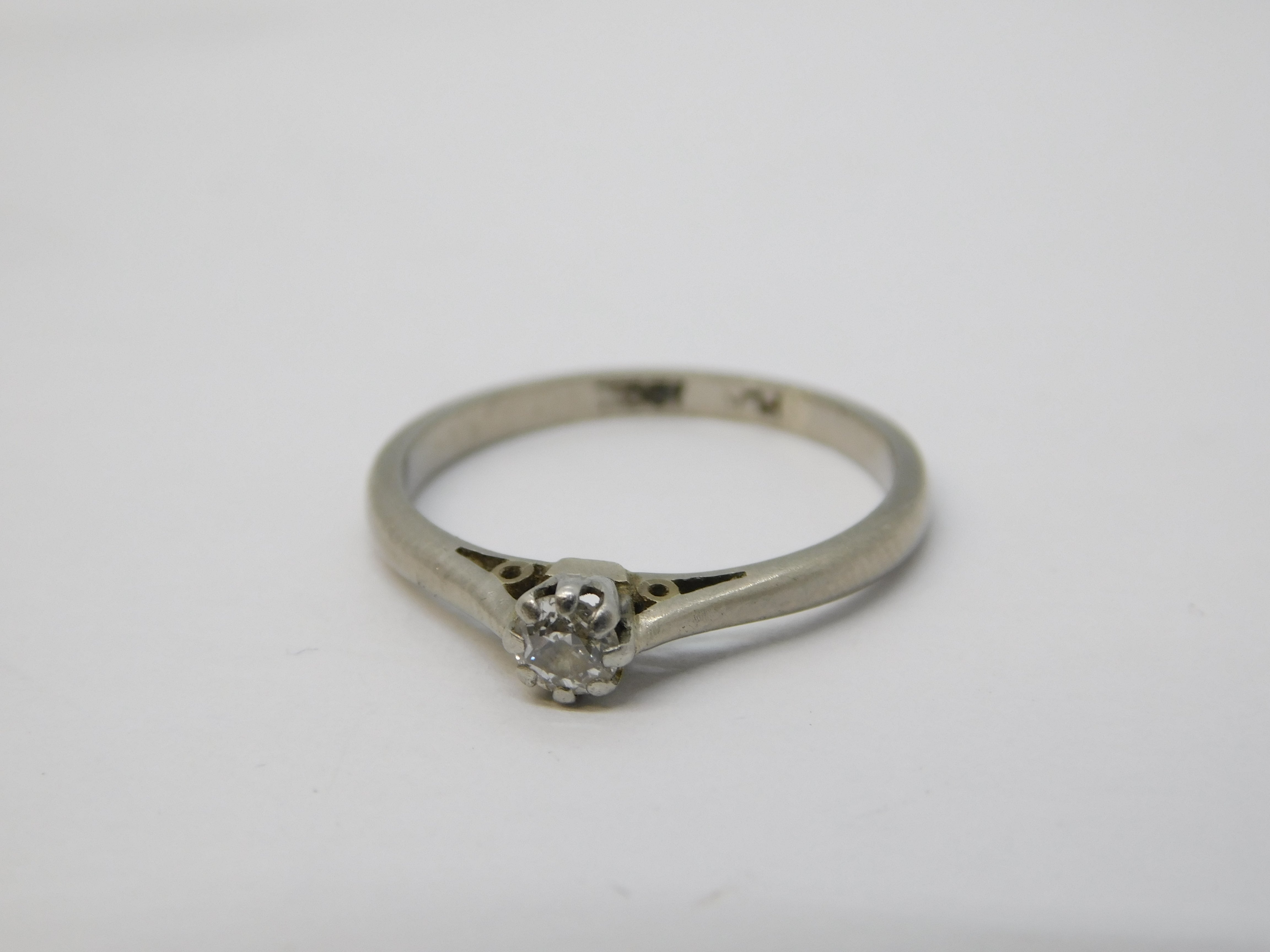 18ct White Gold & 0.1ct Diamond Solitaire Ring Antique c1930 Art Deco