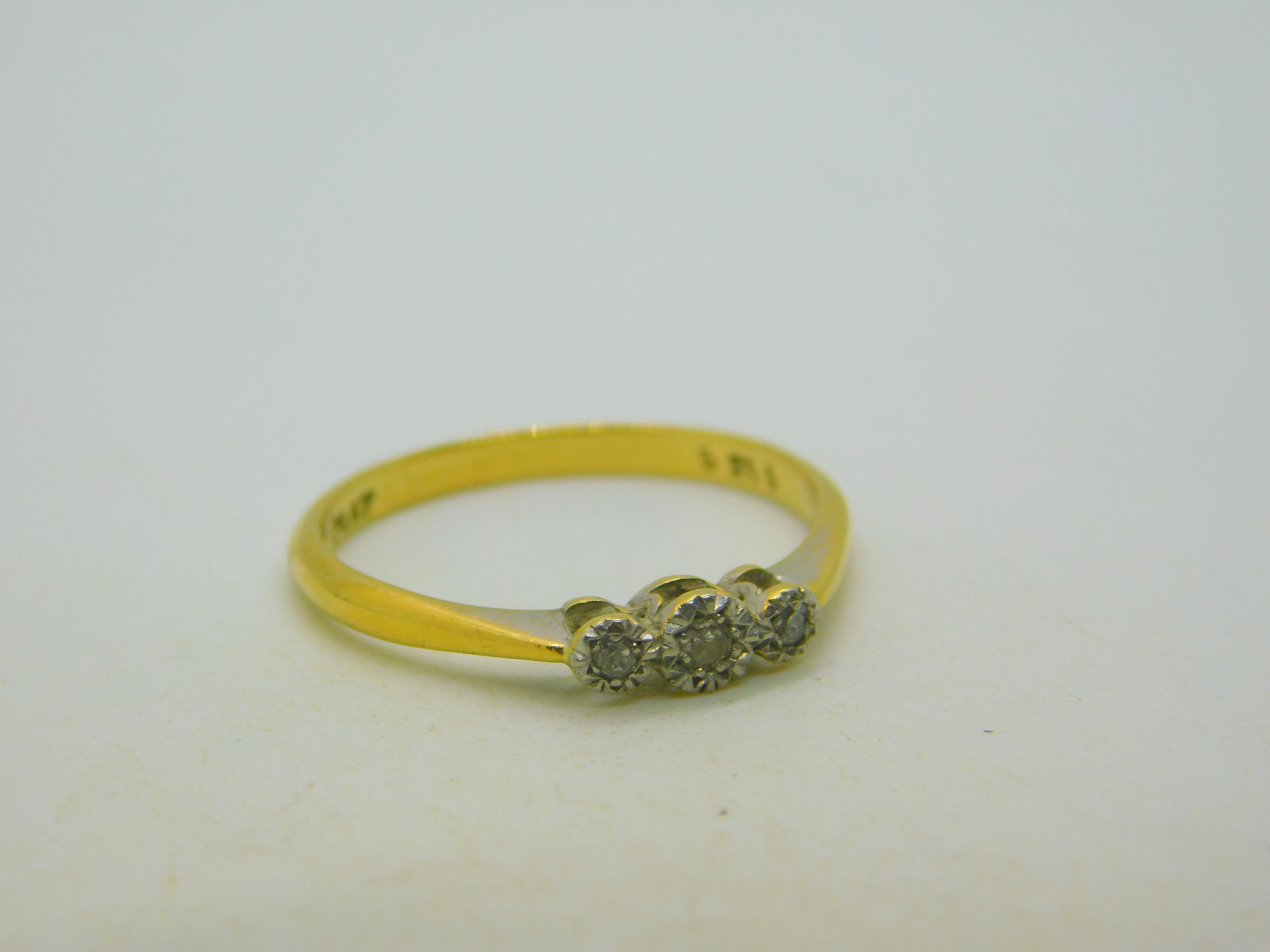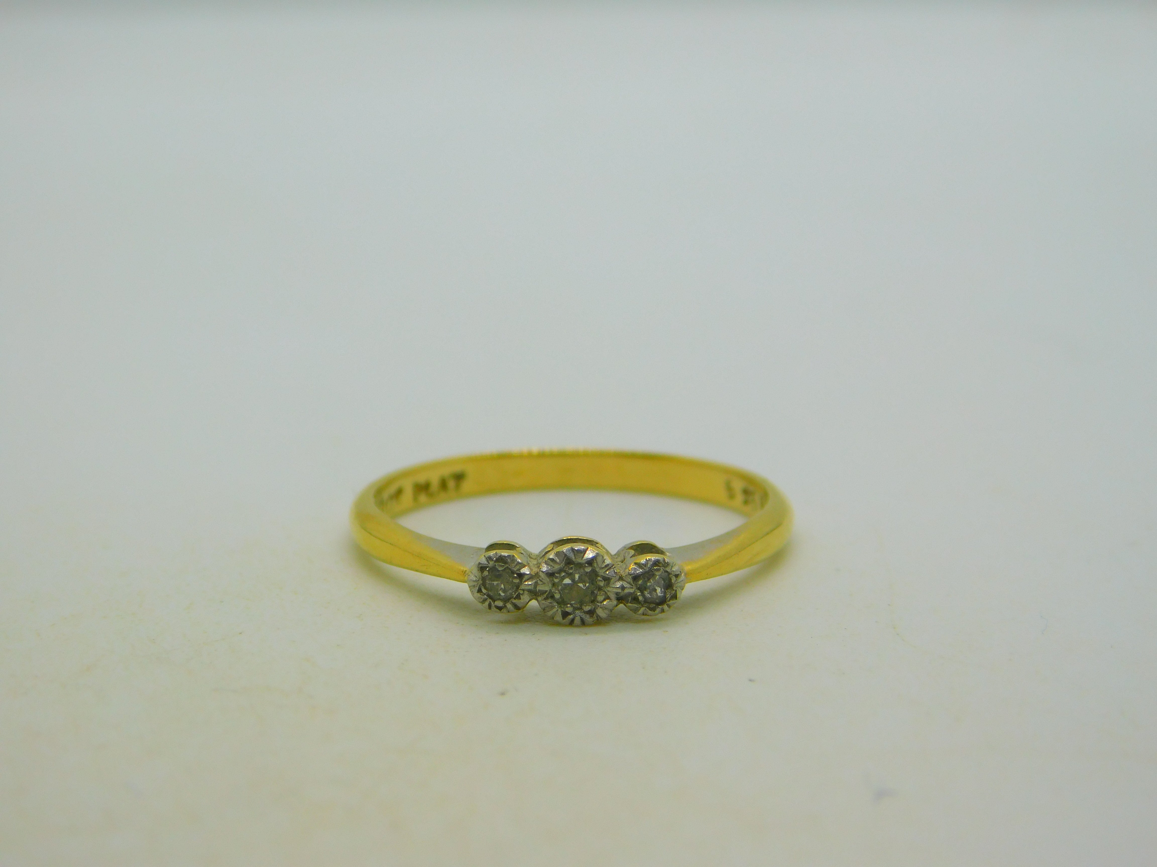 18ct Yellow Gold & Three-Stone Diamond Dress Ring Antique c1920 Art Deco