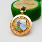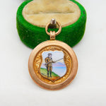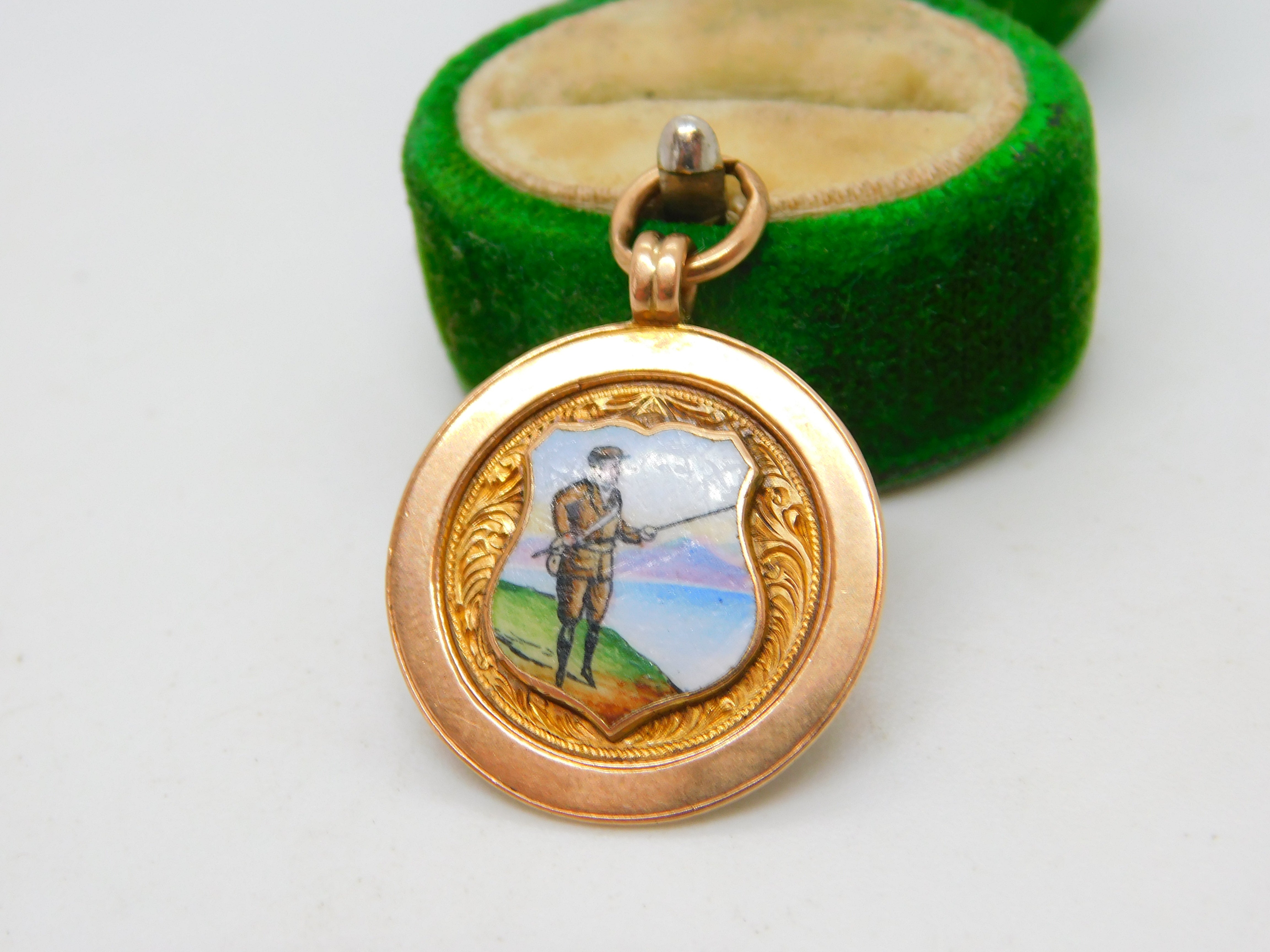 9ct Yellow Gold Enamel Angling Fishing Fob Antique 1921 Chester Art Deco
