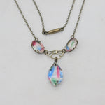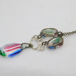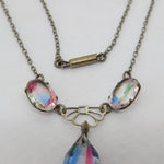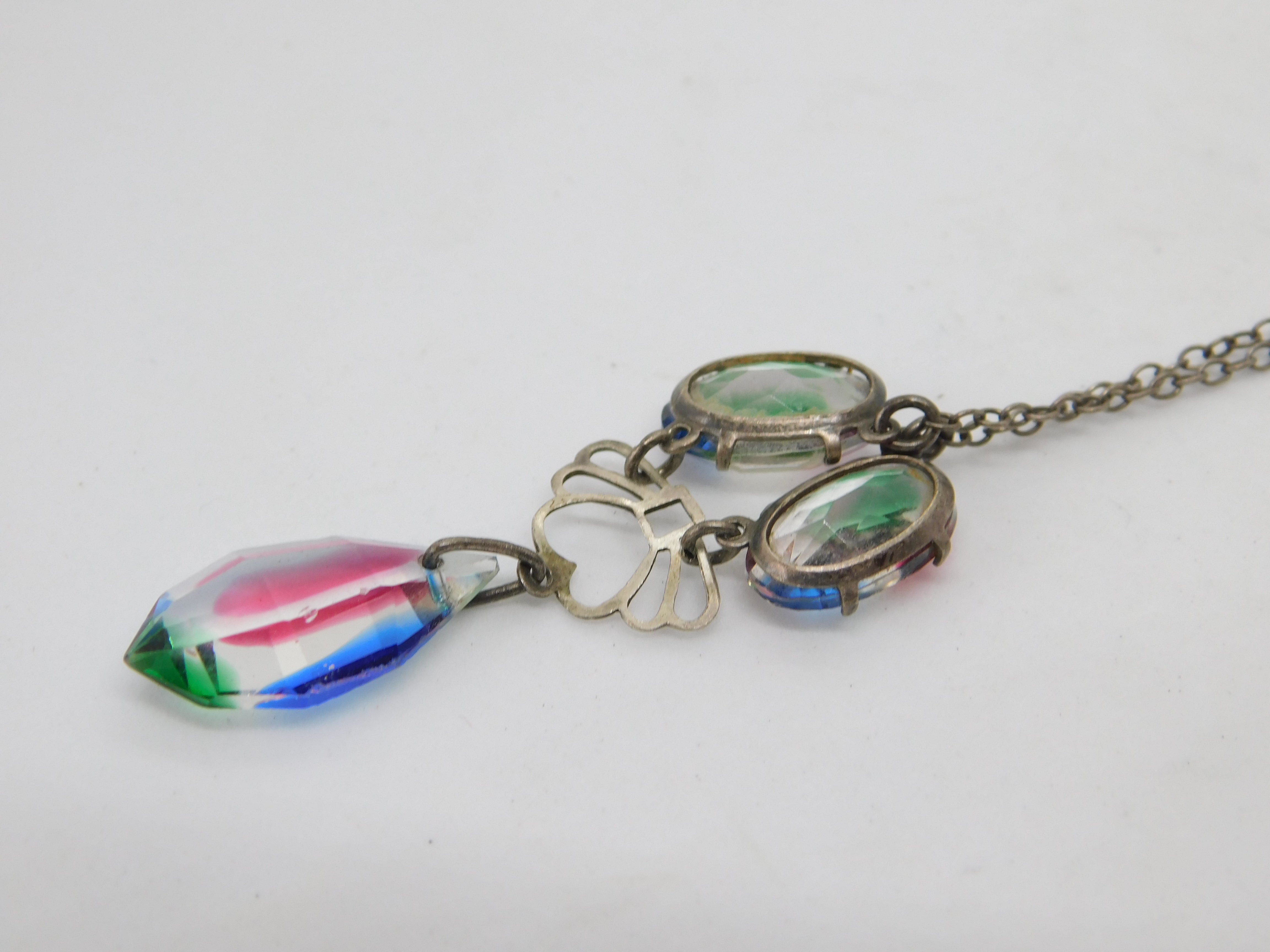 Art Deco Sterling Silver Faceted Iris Glass Floral Drop Necklace c1920 Antique