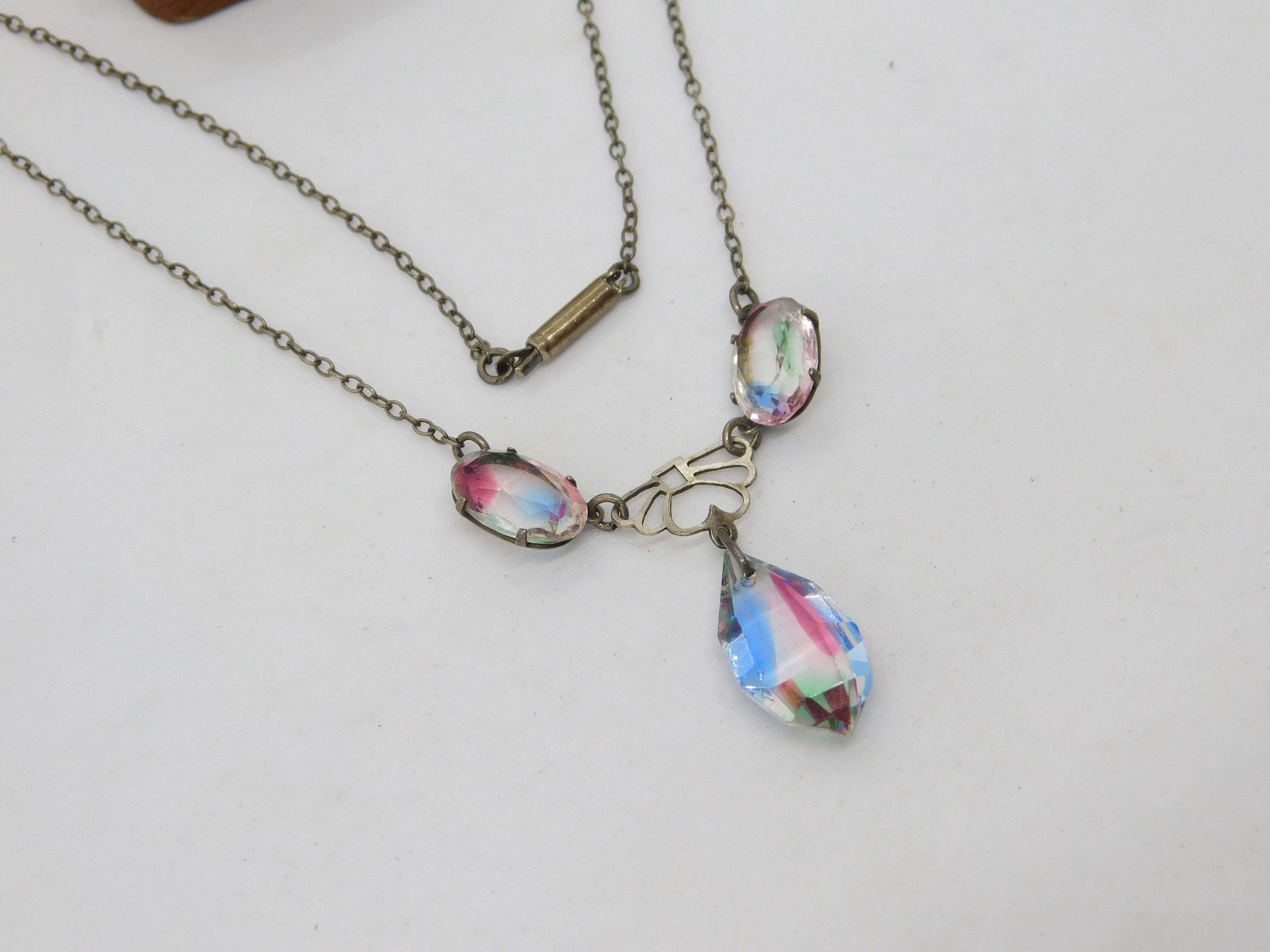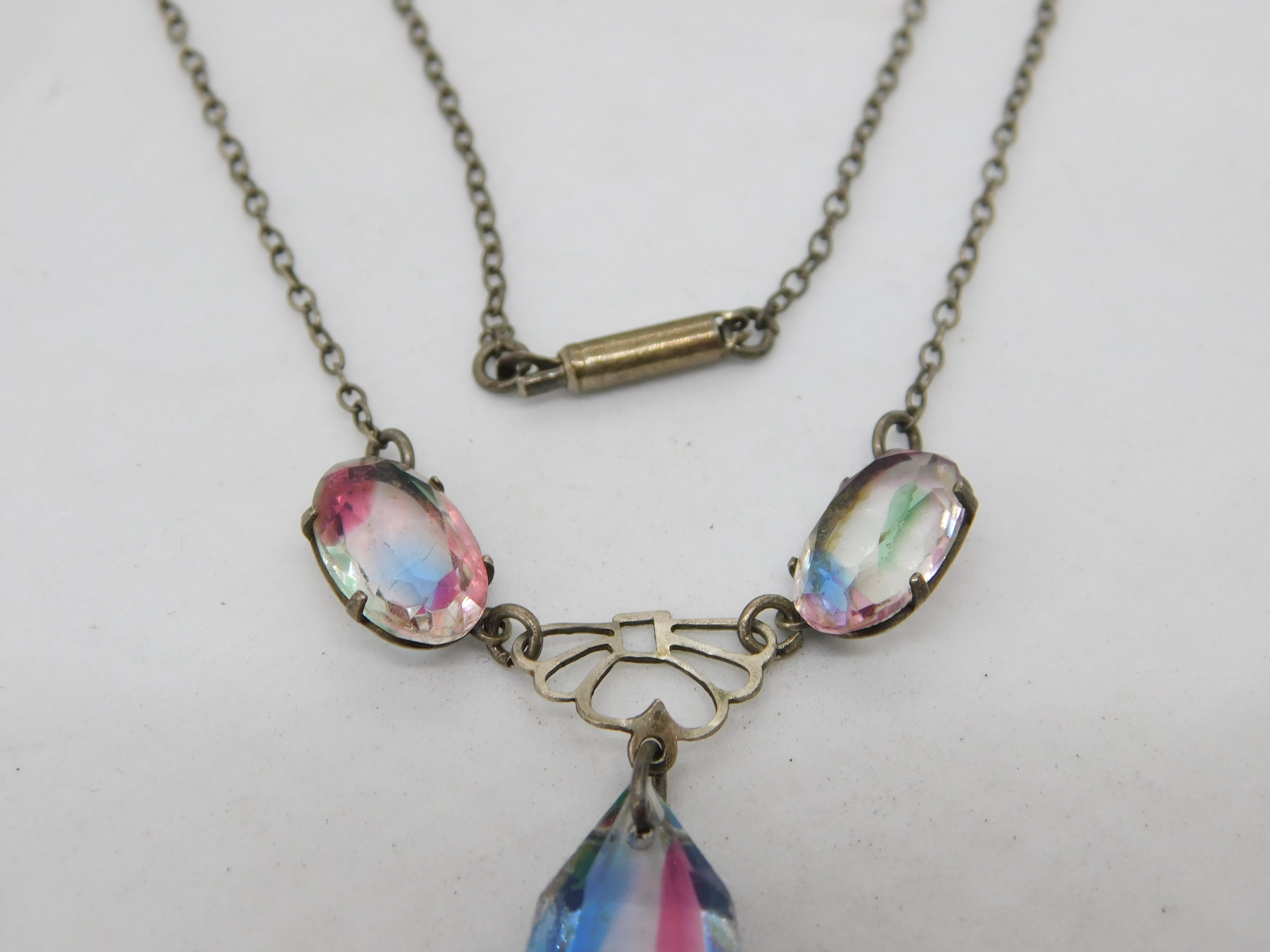 Details: A fantastic and wonderfully designed antique art deco sterling silver & faceted iris glass drop necklace with lovely detailing c1920 This is a wonderful item that would make a perfect gift or addition to any collection. The BOX pictured is for PRESENTATION ONLY and is NOT included in the listings but used to frame the pictures unless specifically stated otherwise.