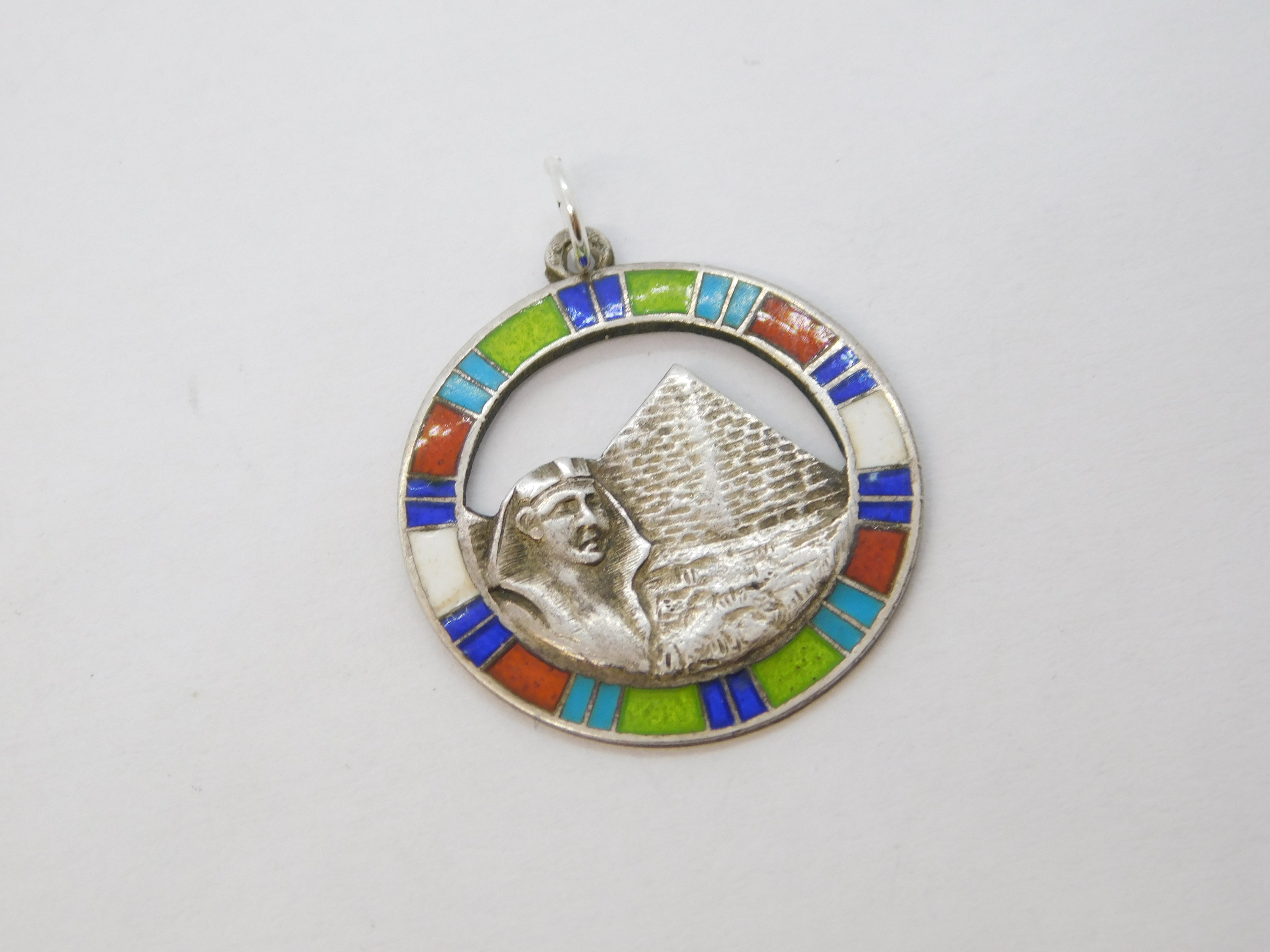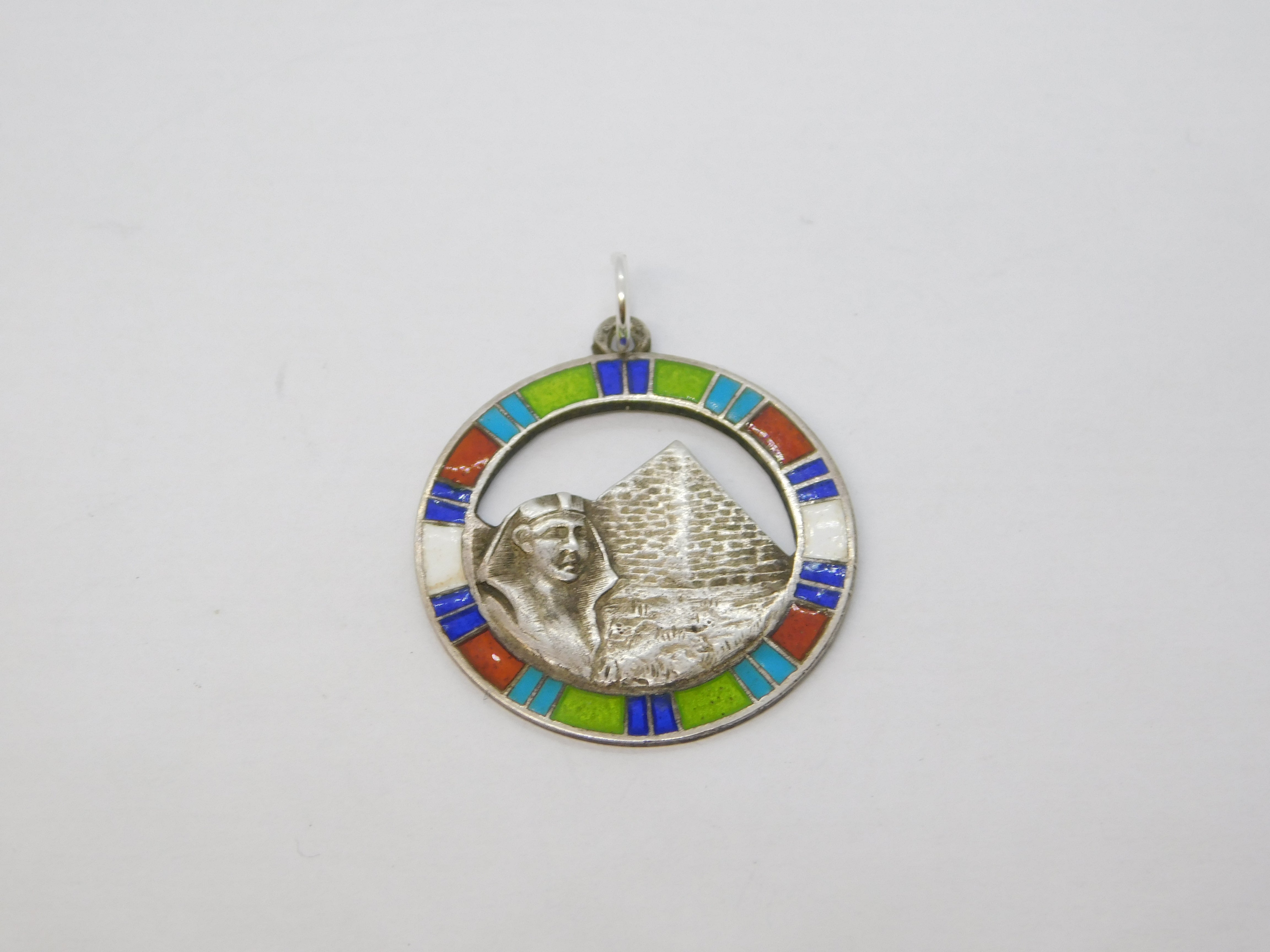 Egyptian .800 Silver & Enamel Pharaoh Souvenir Pendant Antique c1920 Art Deco