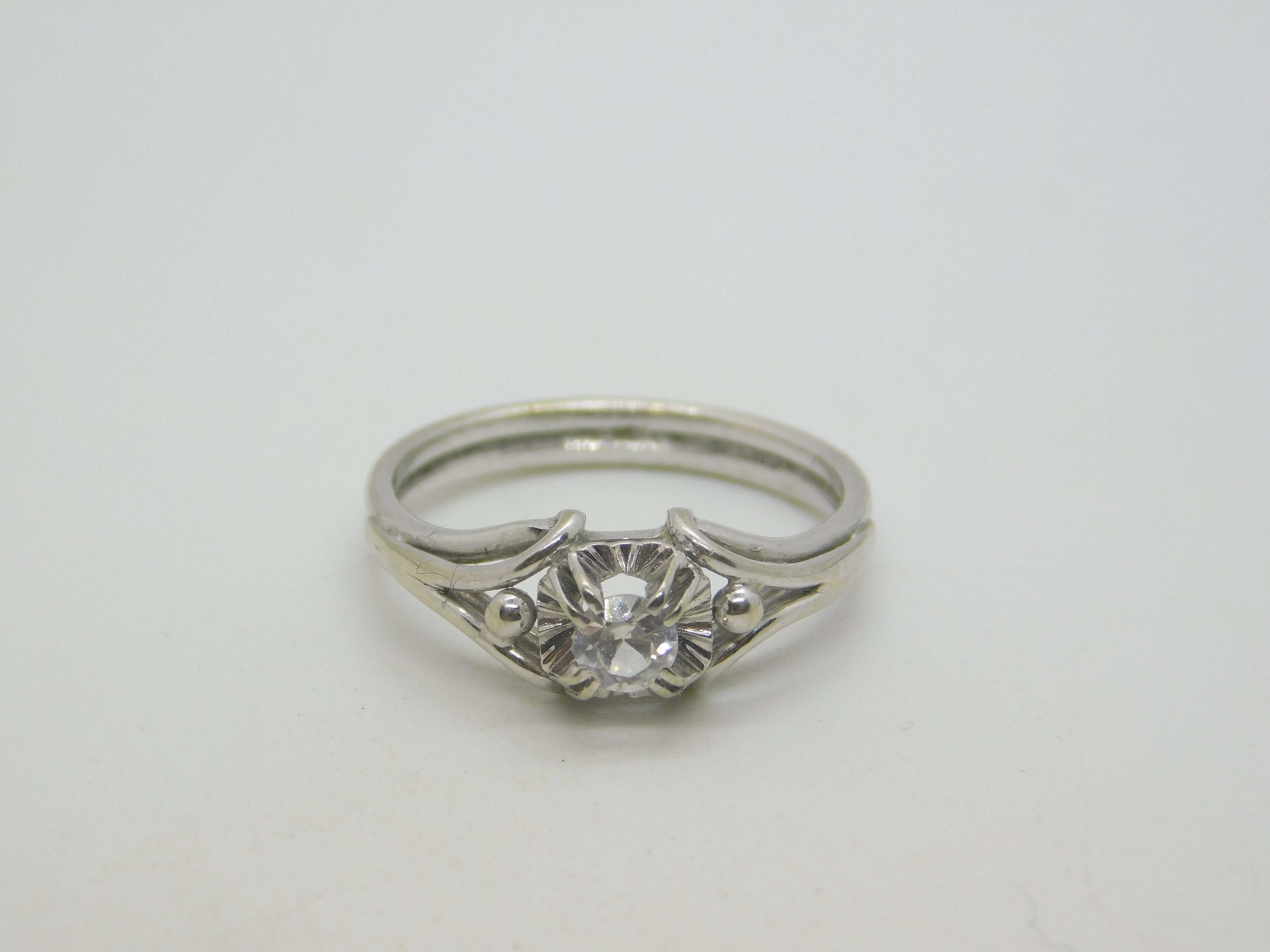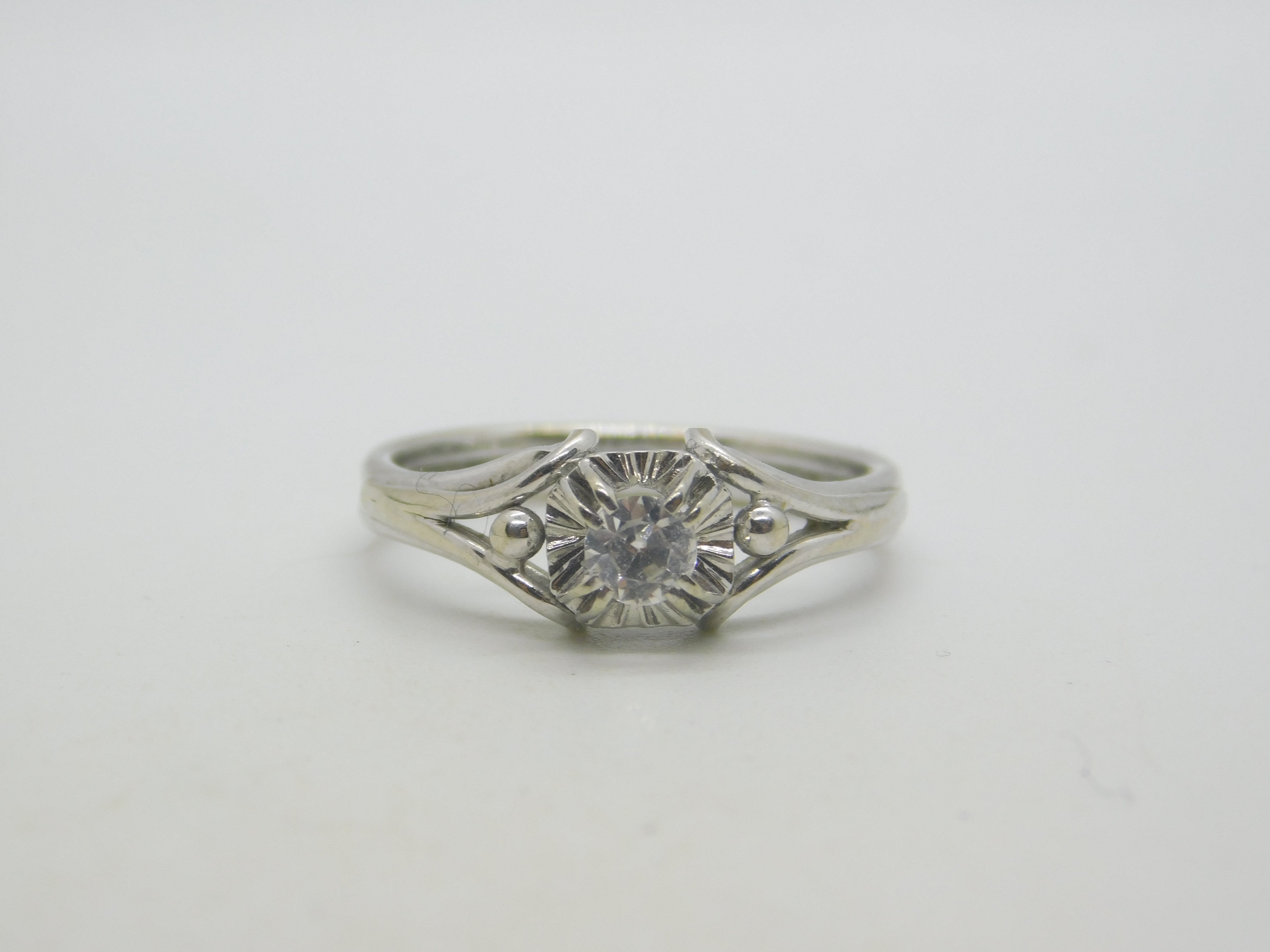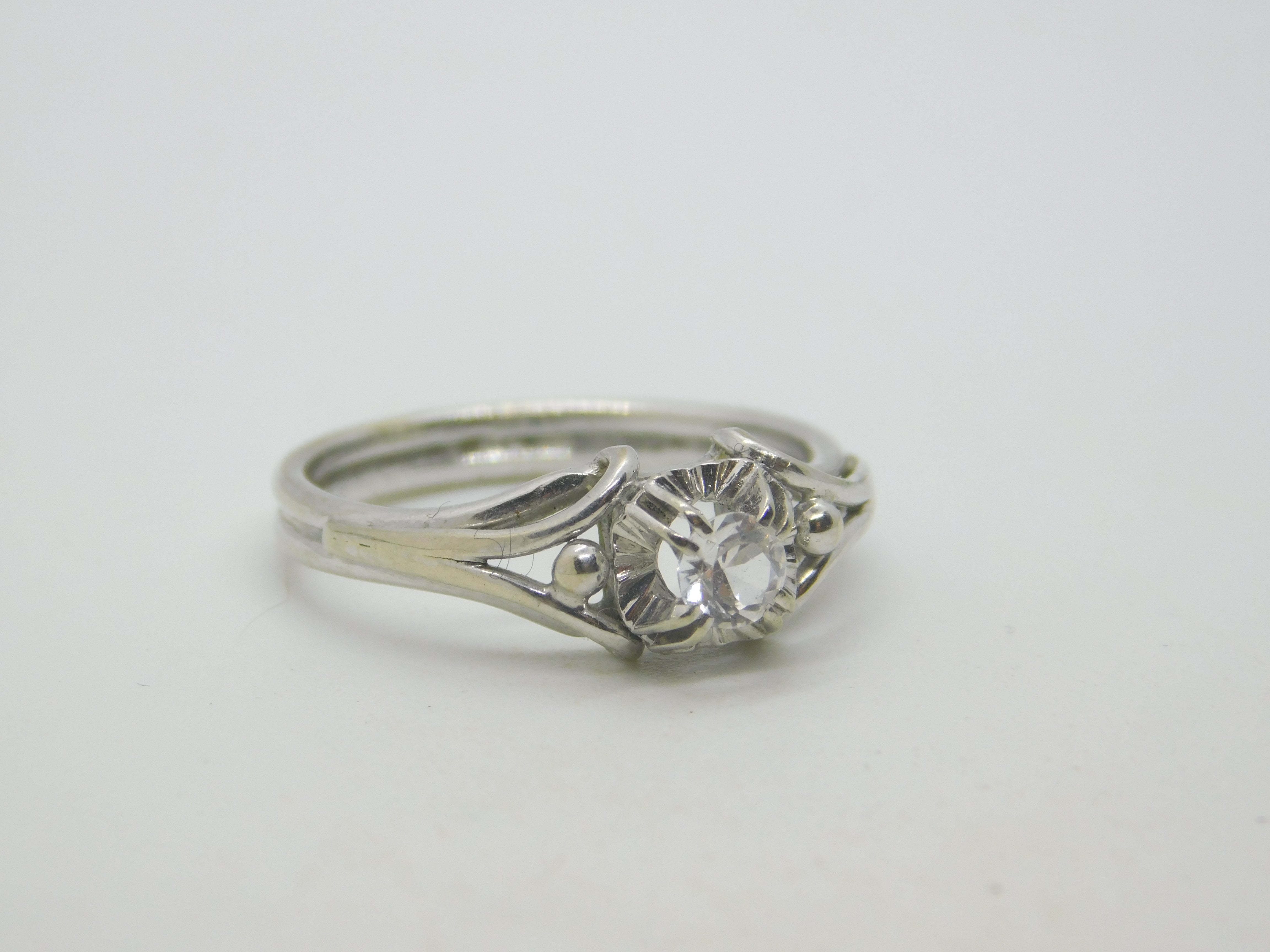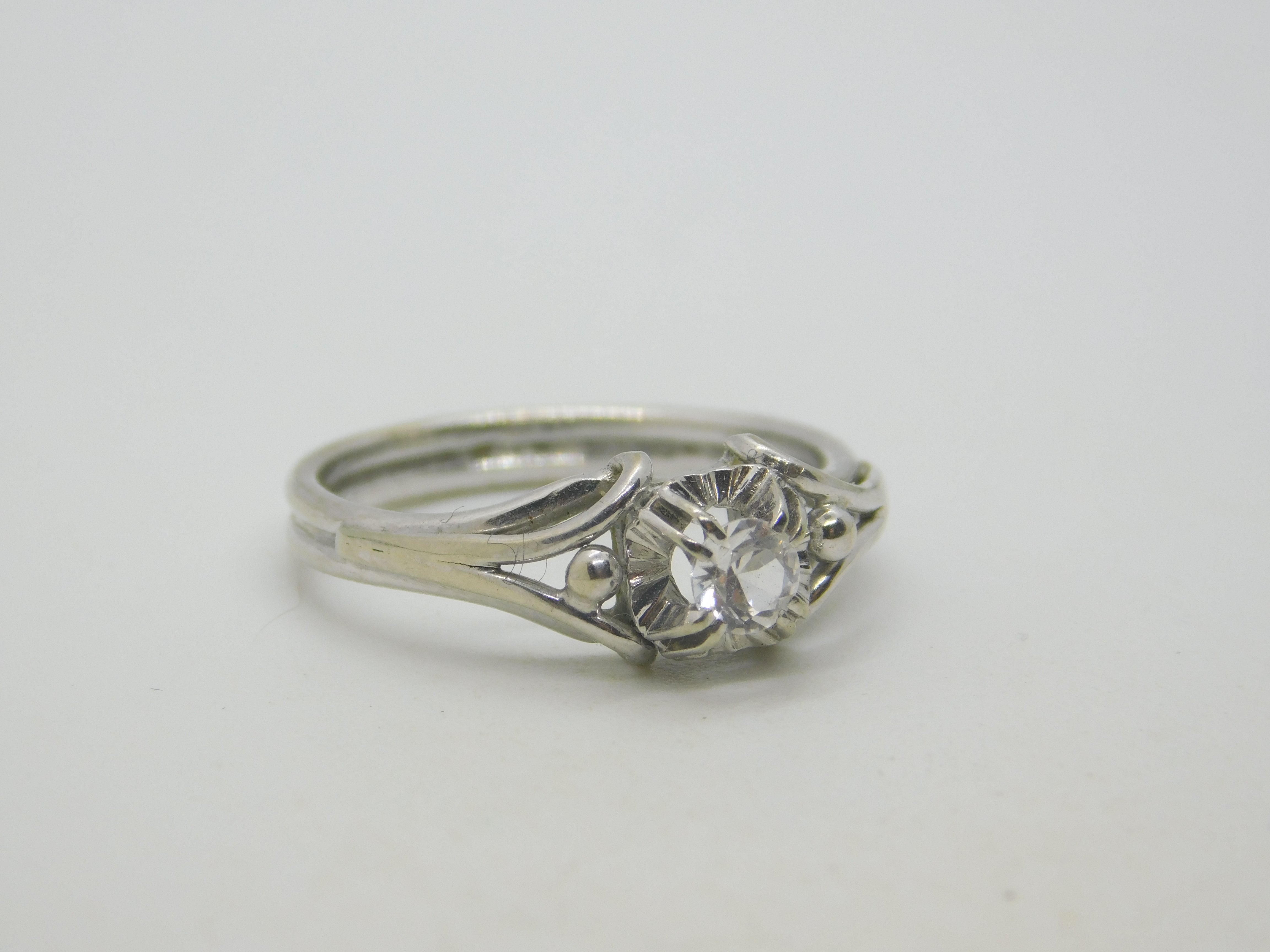 French 18ct White Gold & 0.2ct Diamond Solitaire Ring Antique c1920 Art Deco