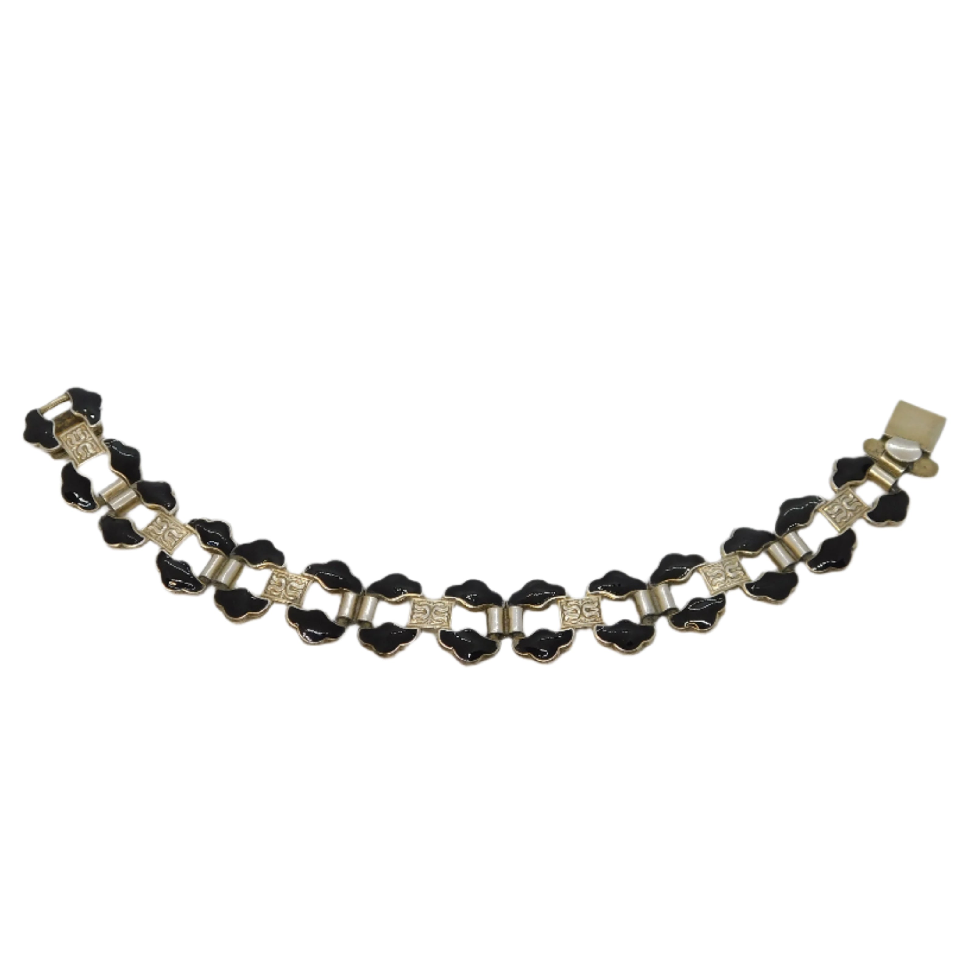 Norwegian Sterling Silver Black Enamel Panel Bracelet Antique c1930 Art Deco