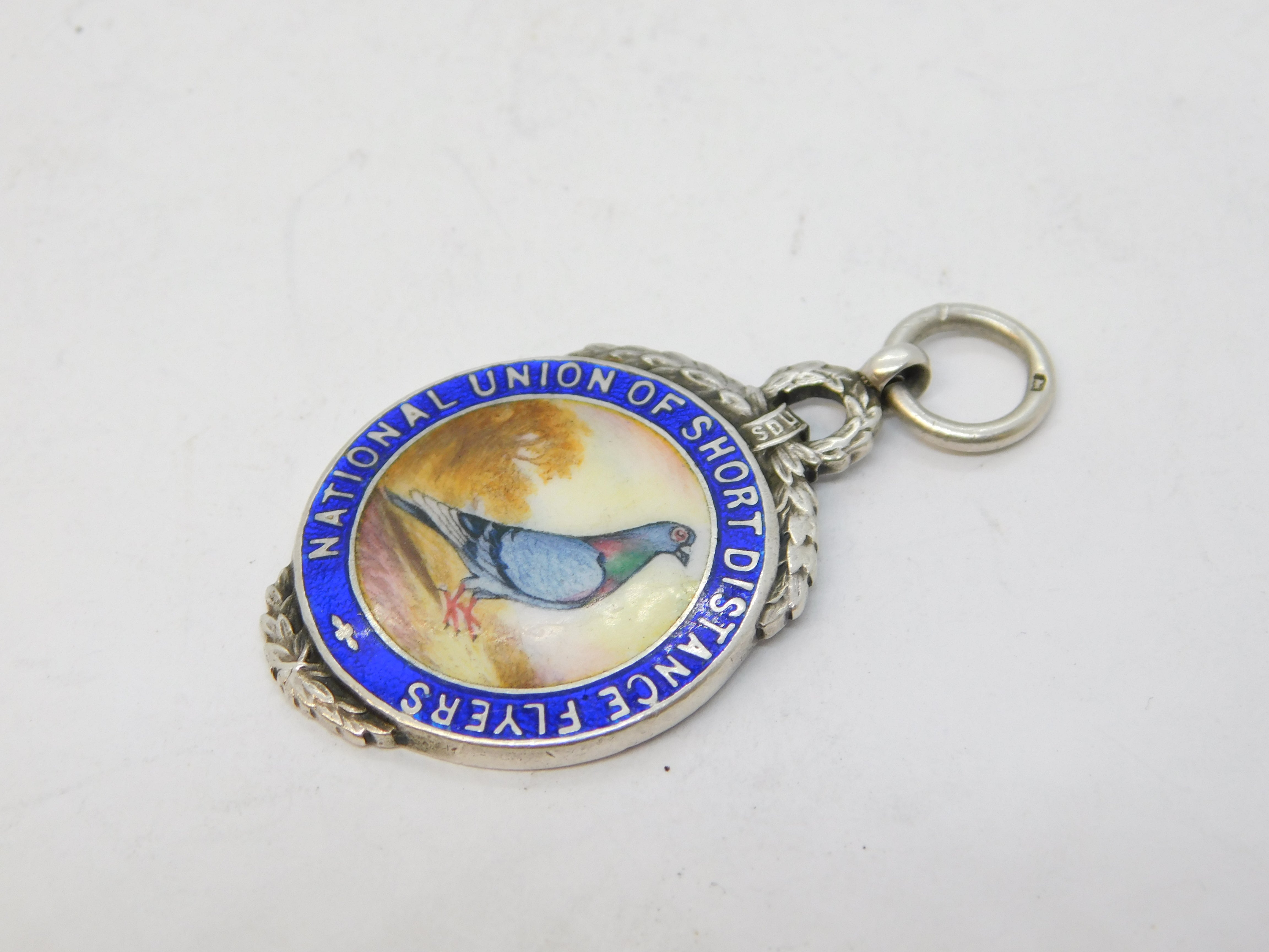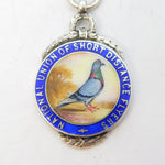 Sterling Silver & Enamel Racing Pigeon Sporting Fob Medal Antique 1926 Art Deco