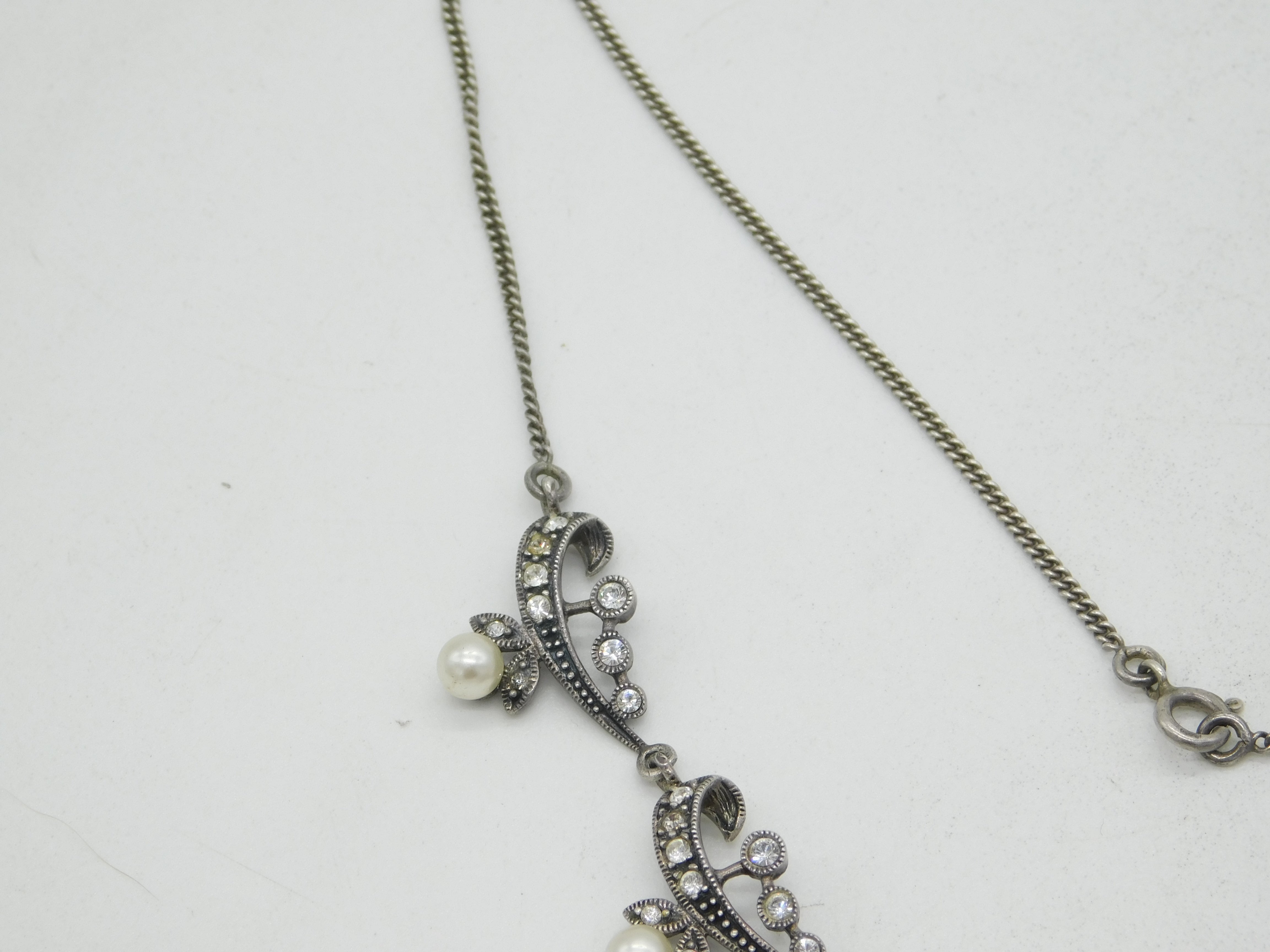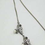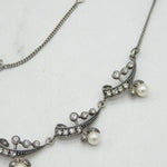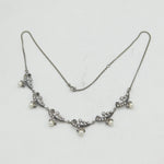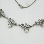 Sterling Silver, Paste & Pearl Set Floral Spray Necklace Antique c1930 Art Deco
