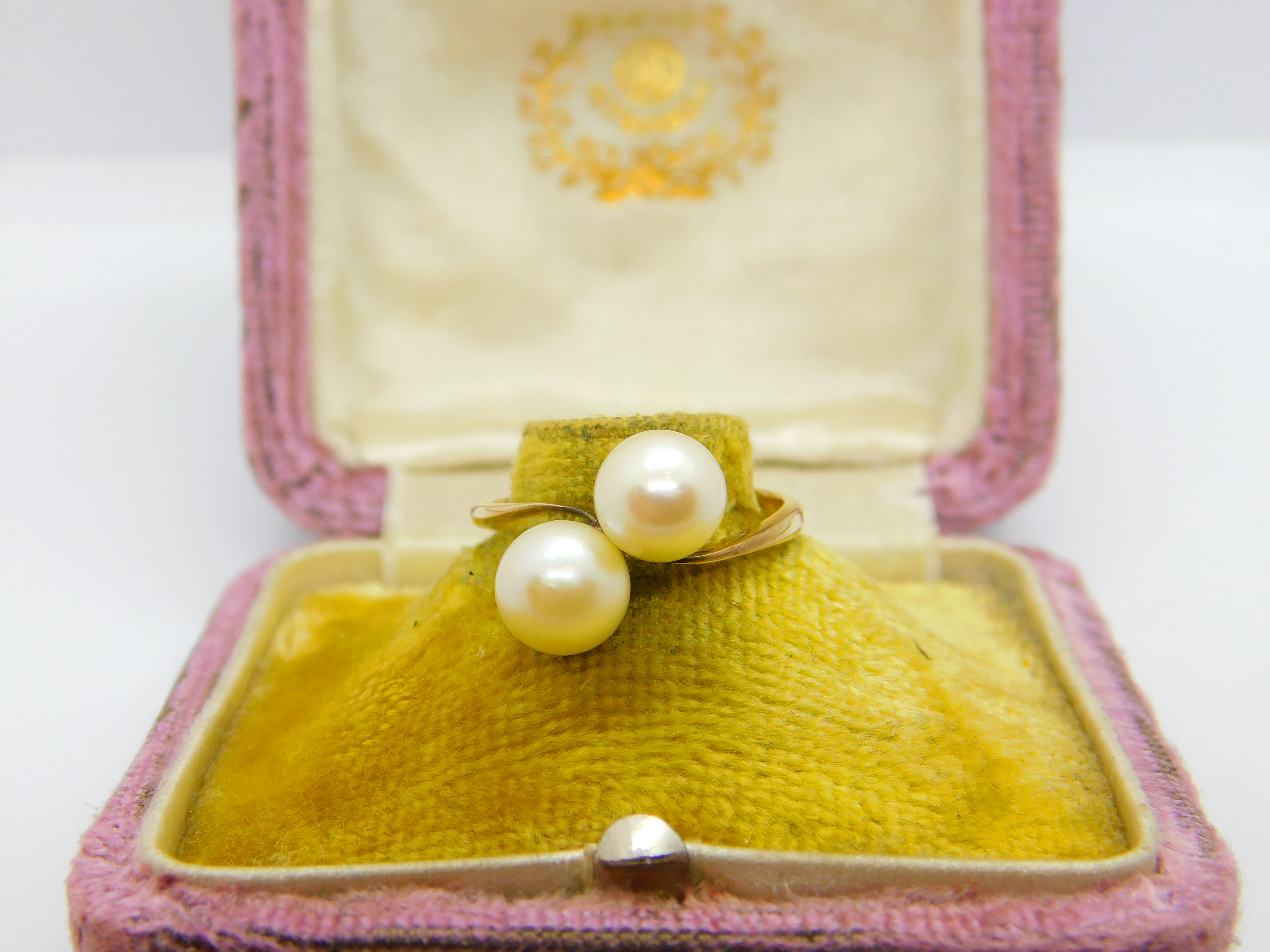 Austrian 14ct Yellow Gold & Pearl Set Crossover Ring Antique c1920 Art Deco