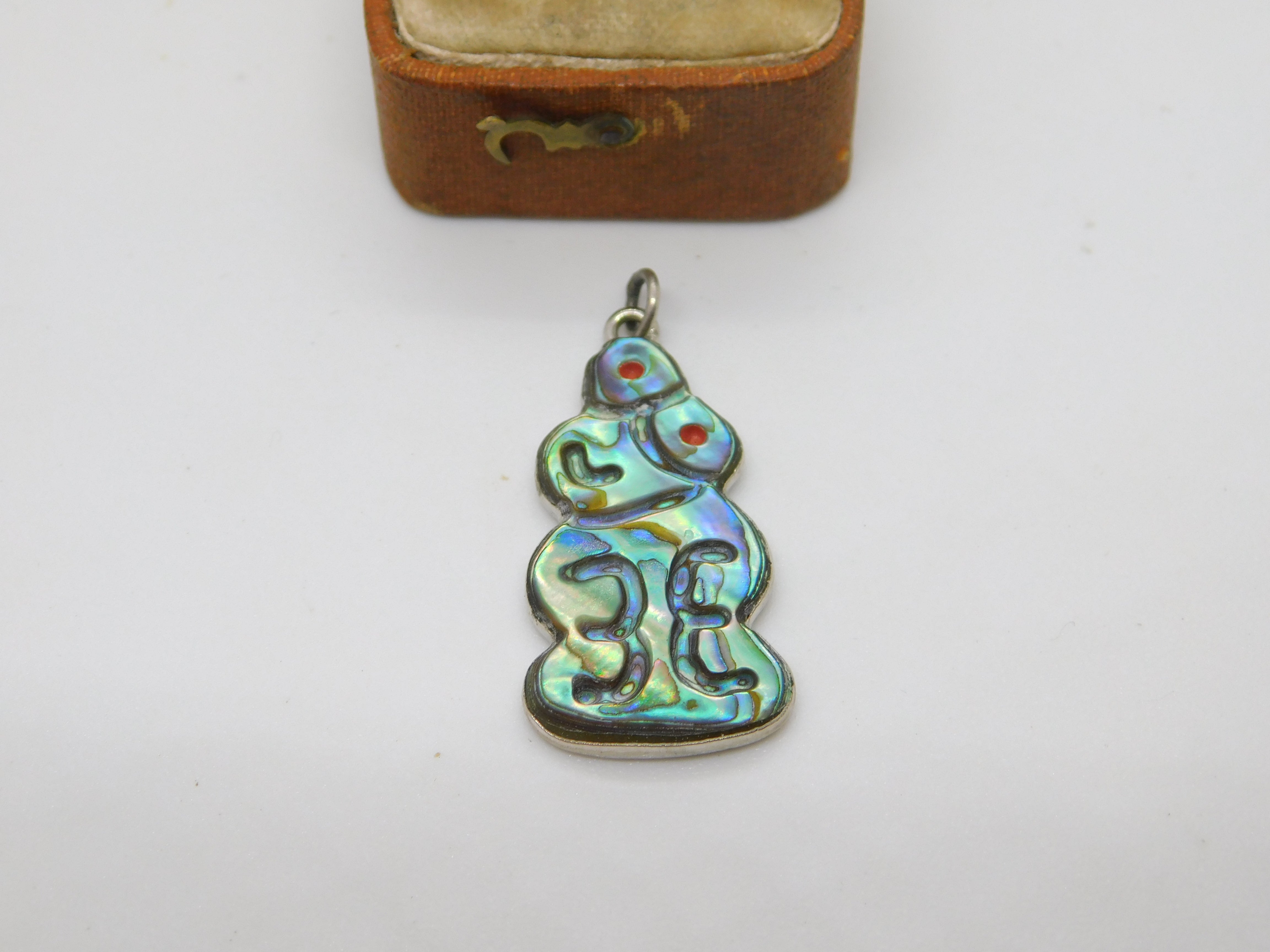 Australian Sterling Silver & Abalone Tiki Charm Pendant Antique c1930 Art Deco