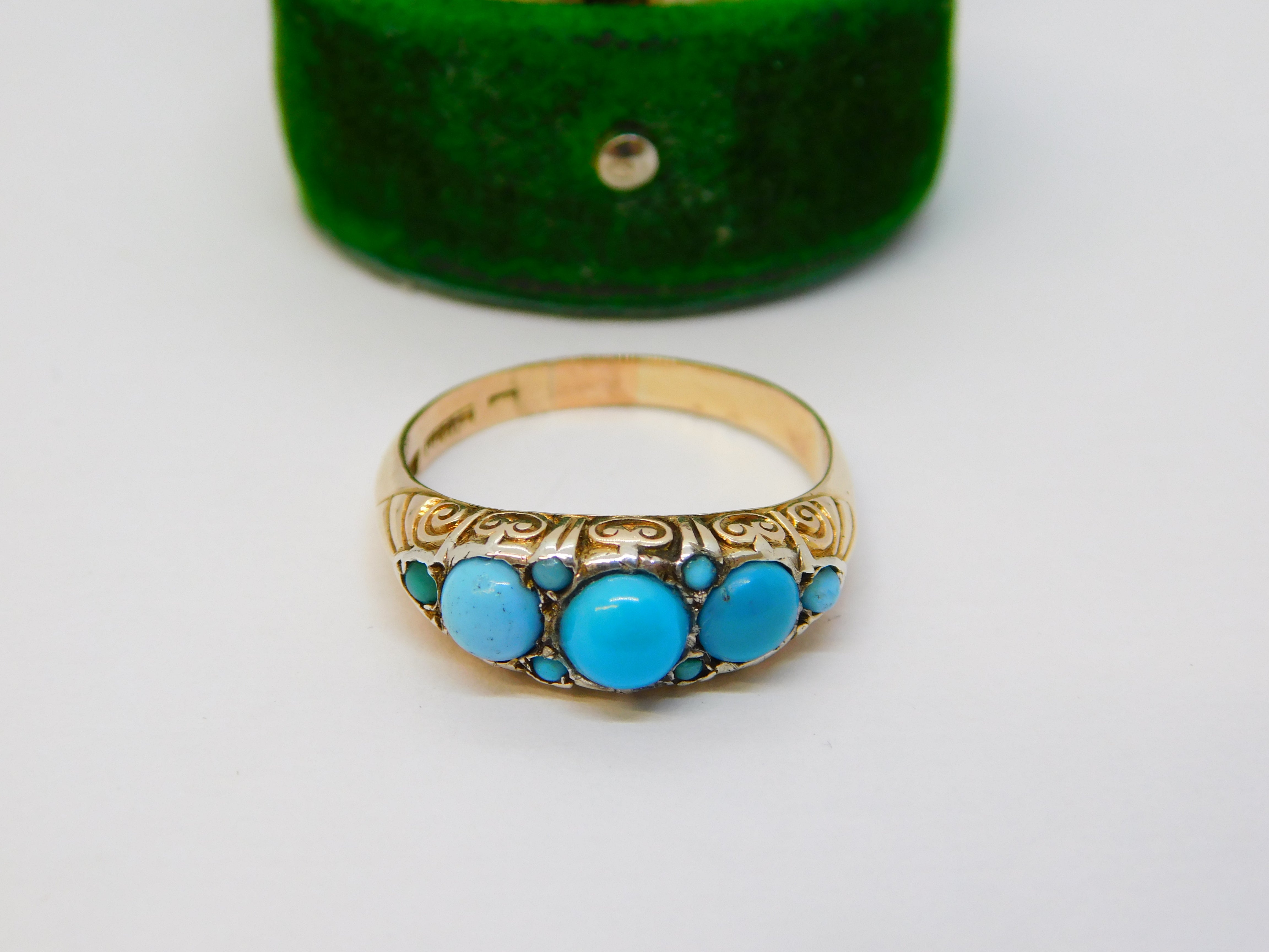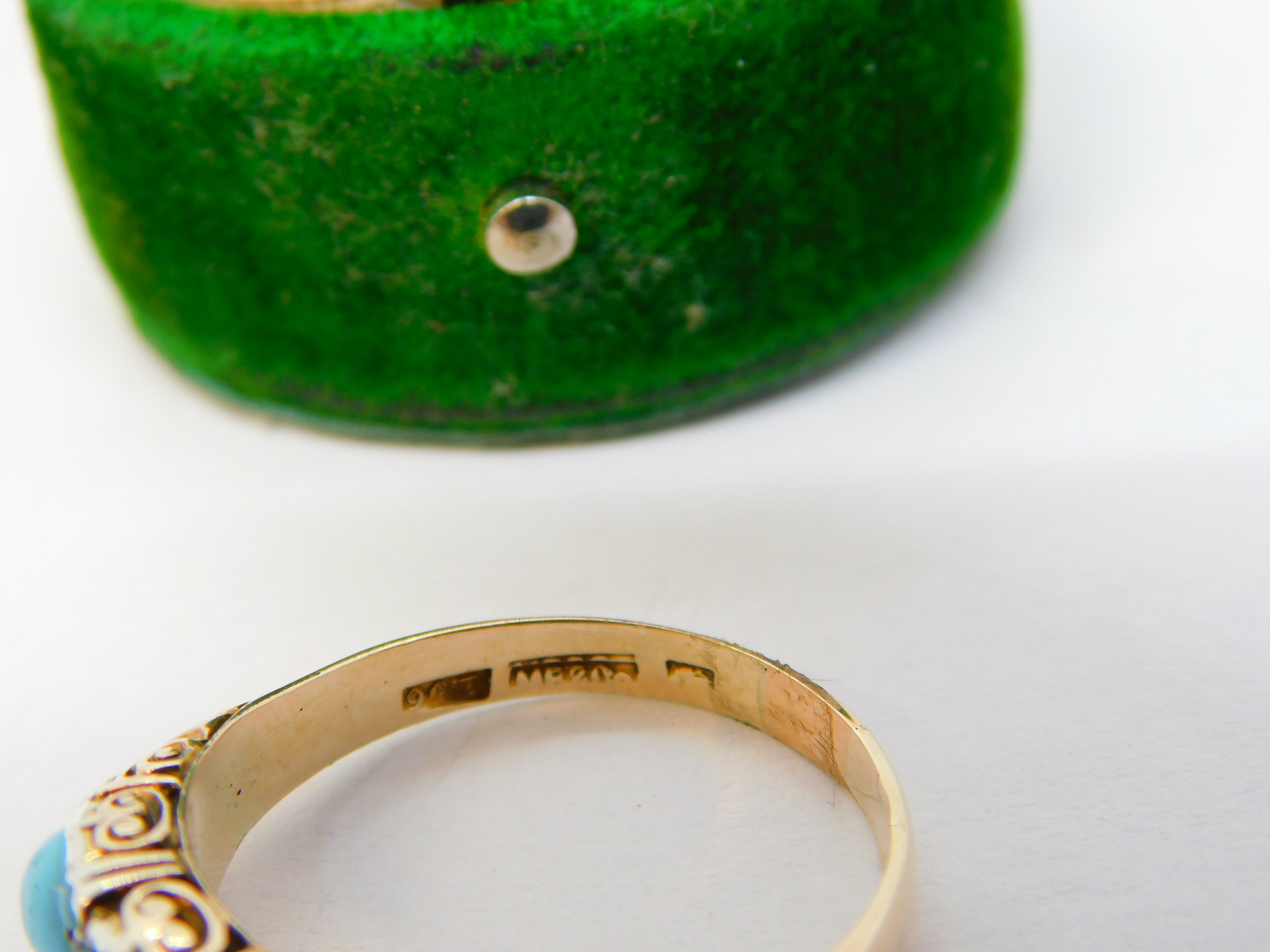 Art Nouveau Murrle Bennett & Co. 9ct Yellow Gold & Turquoise Ring Antique c1910
