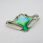 Art Nouveau Sterling Silver Guilloche Enamel Floral Brooch Antique c1910