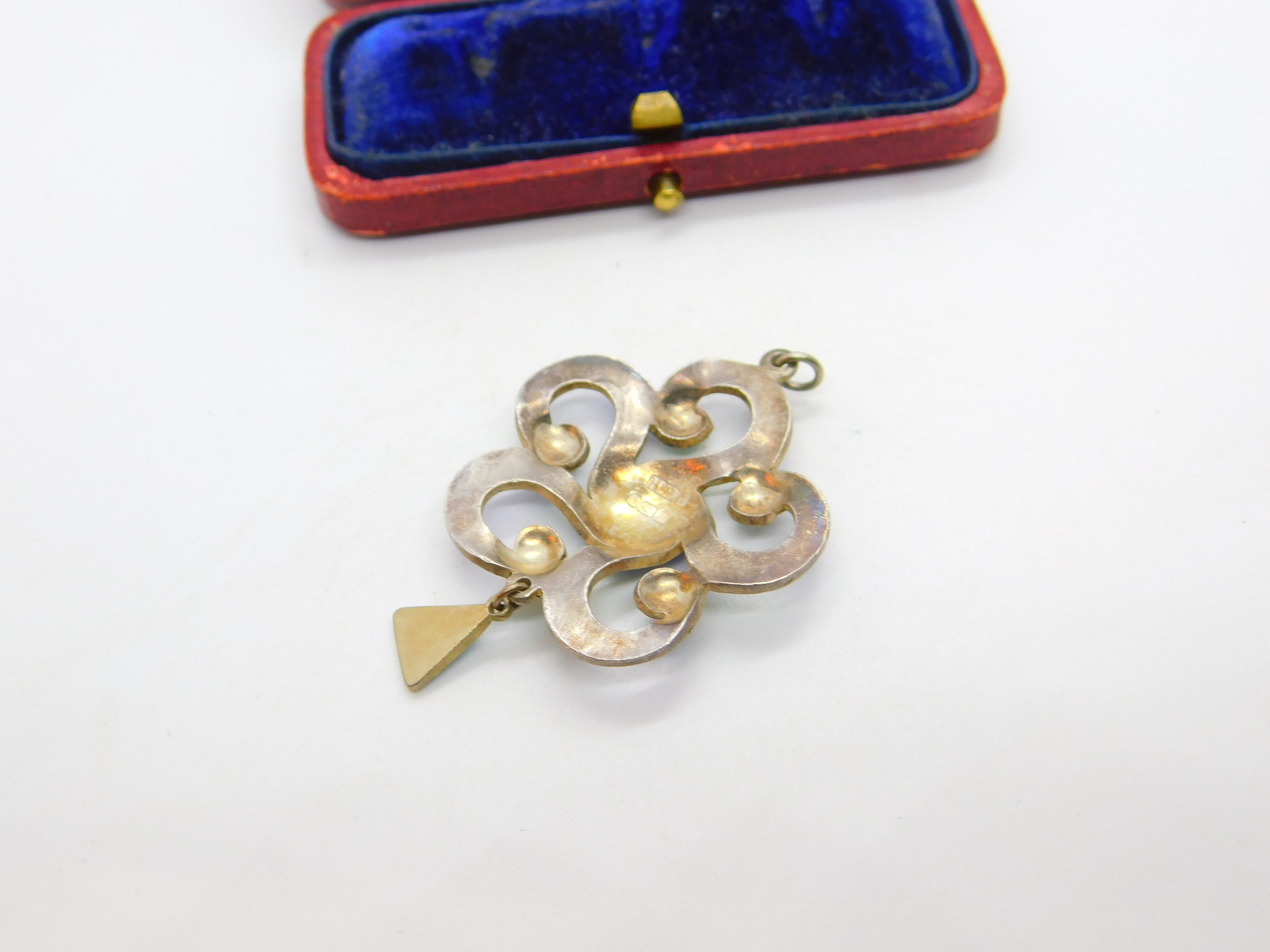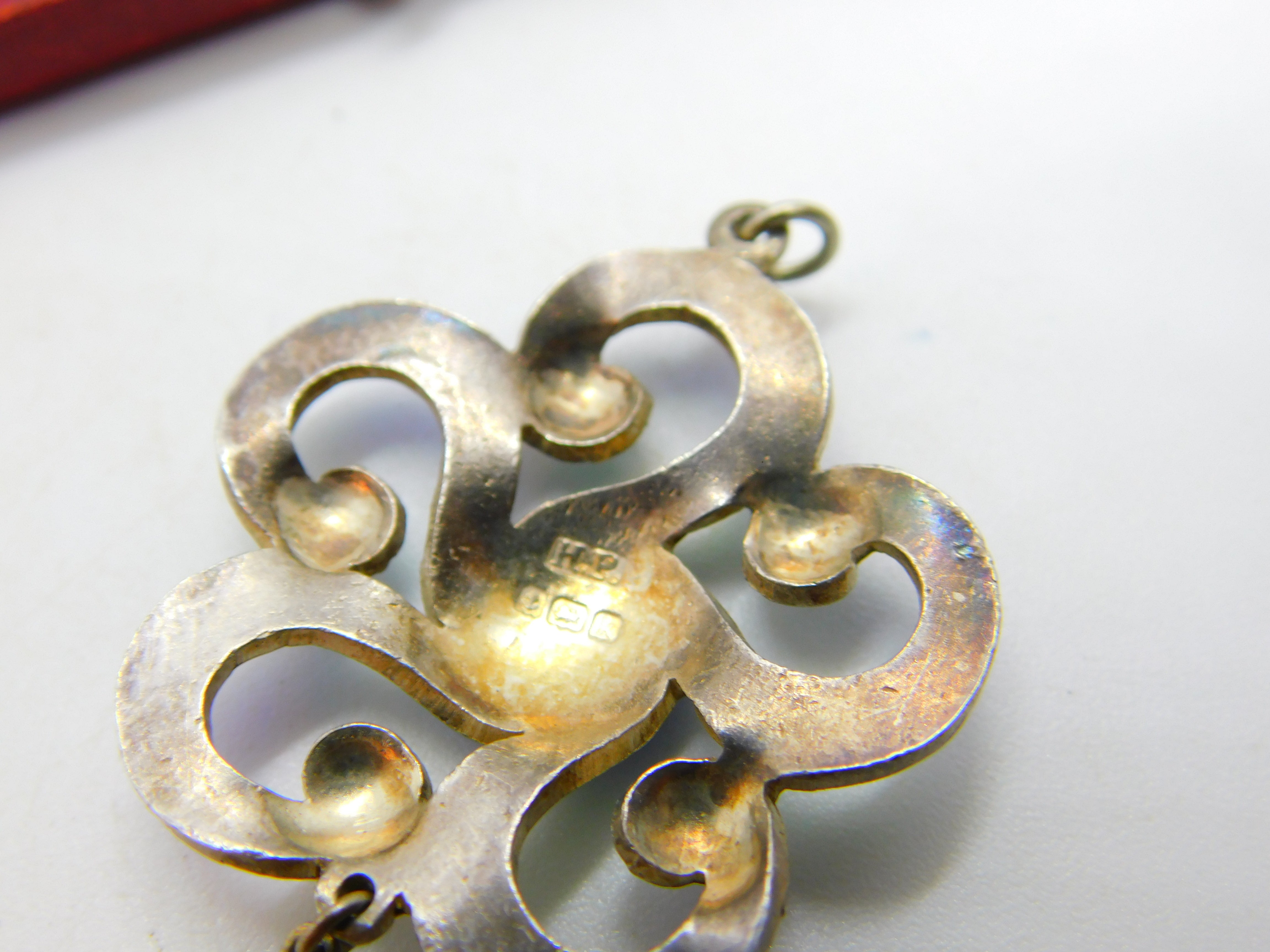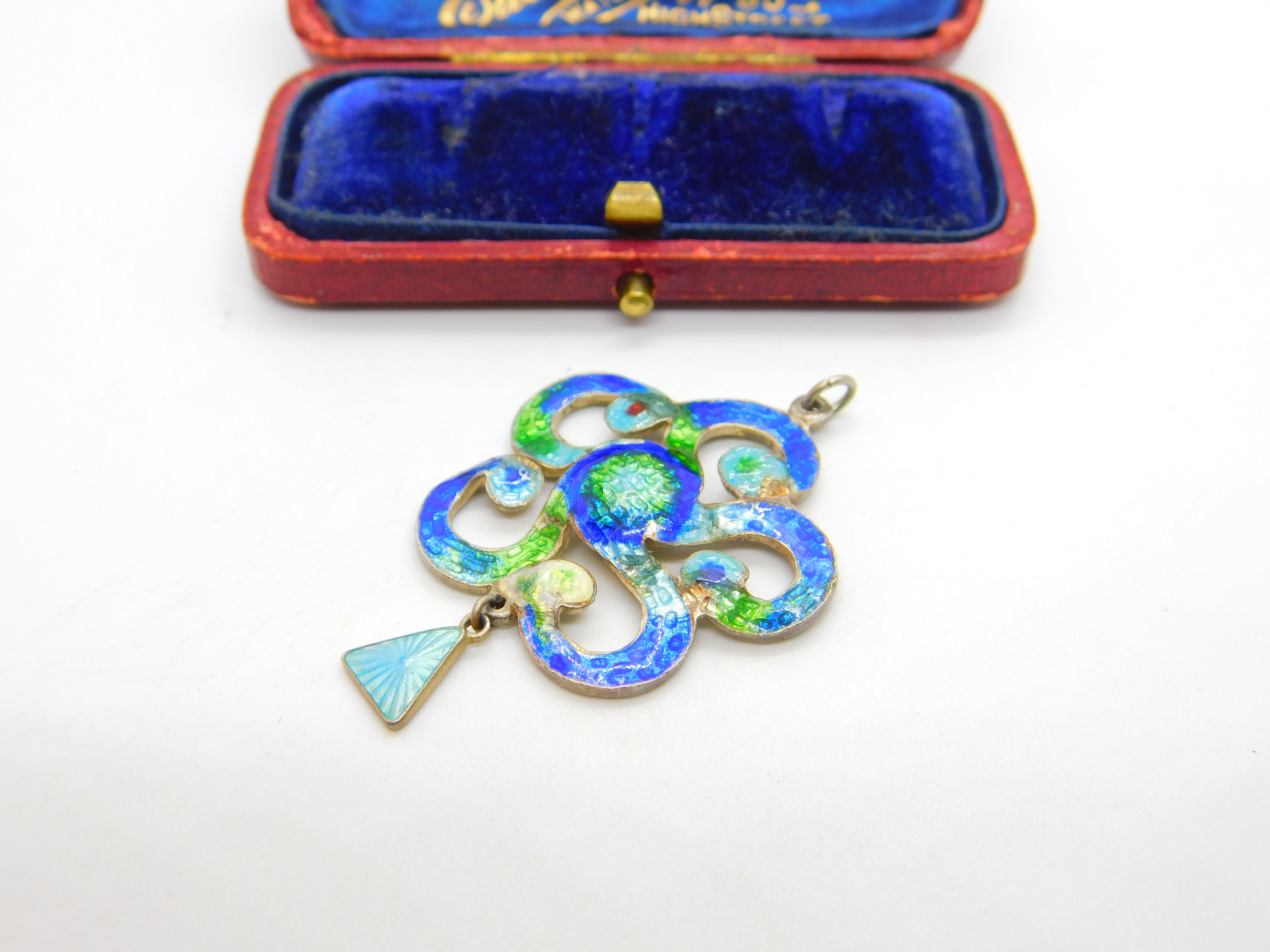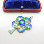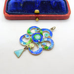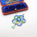 Art Nouveau Sterling Silver Guilloche Enamel Floral Pendant 1909 Birmingham