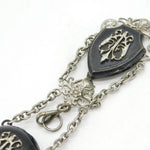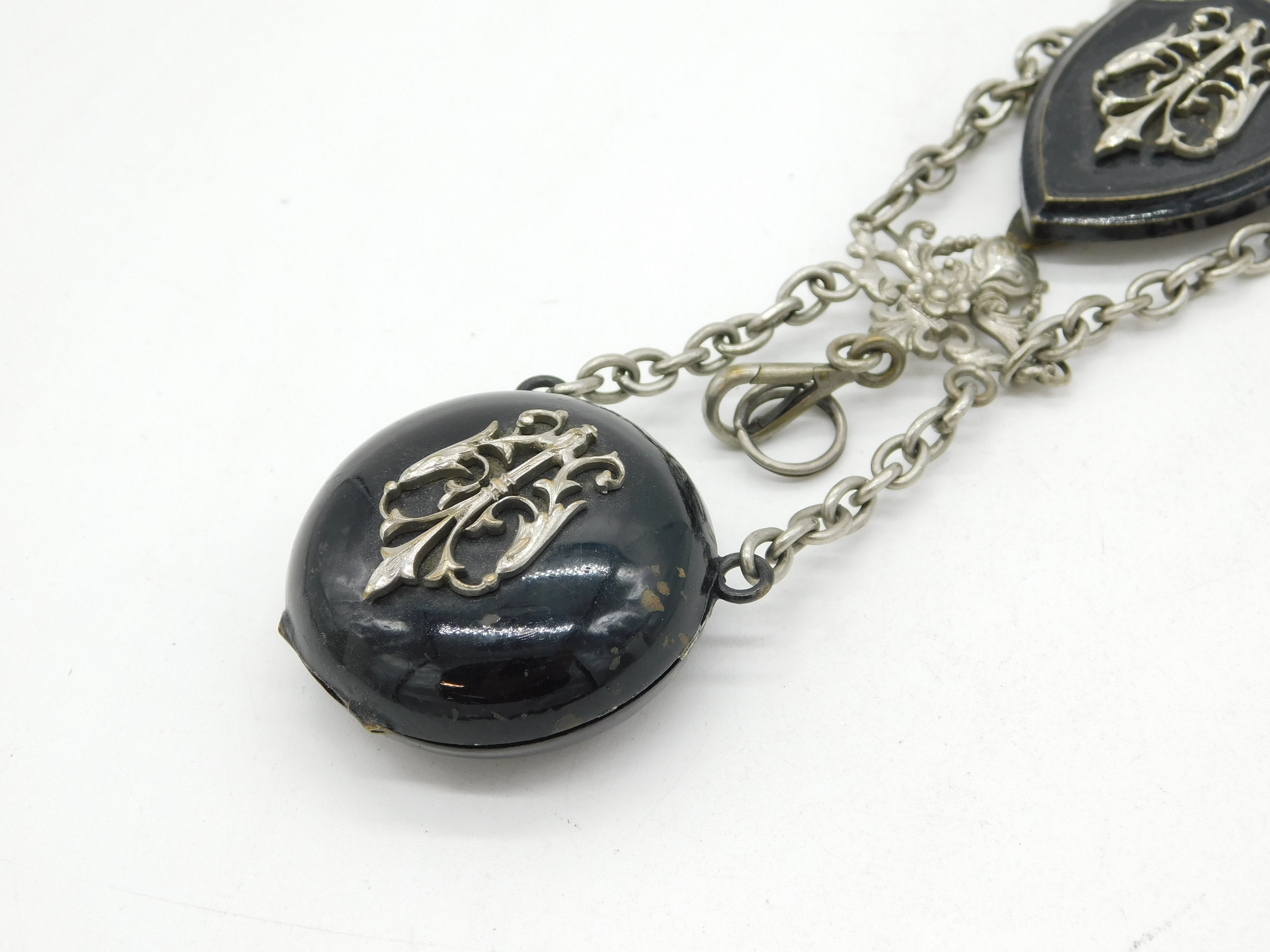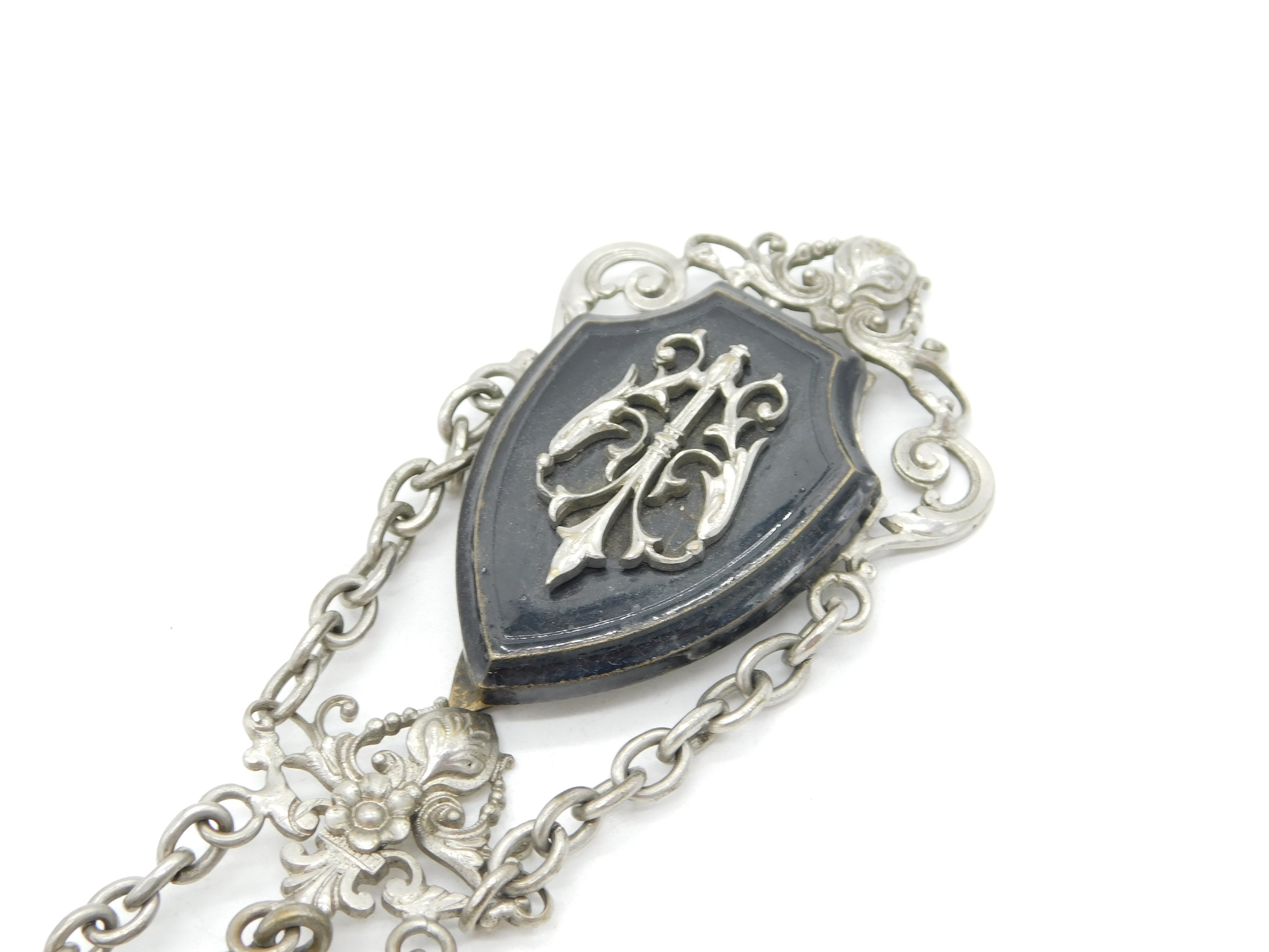 Art Nouveau Victorian Silver Plated Black Enamel Chatelaine Watch Fob Antique c1860