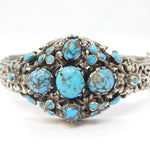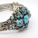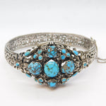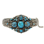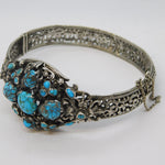 19th Century Austro-Hungarian .800 Silver, Turquoise Floral Bangle Antique c1880