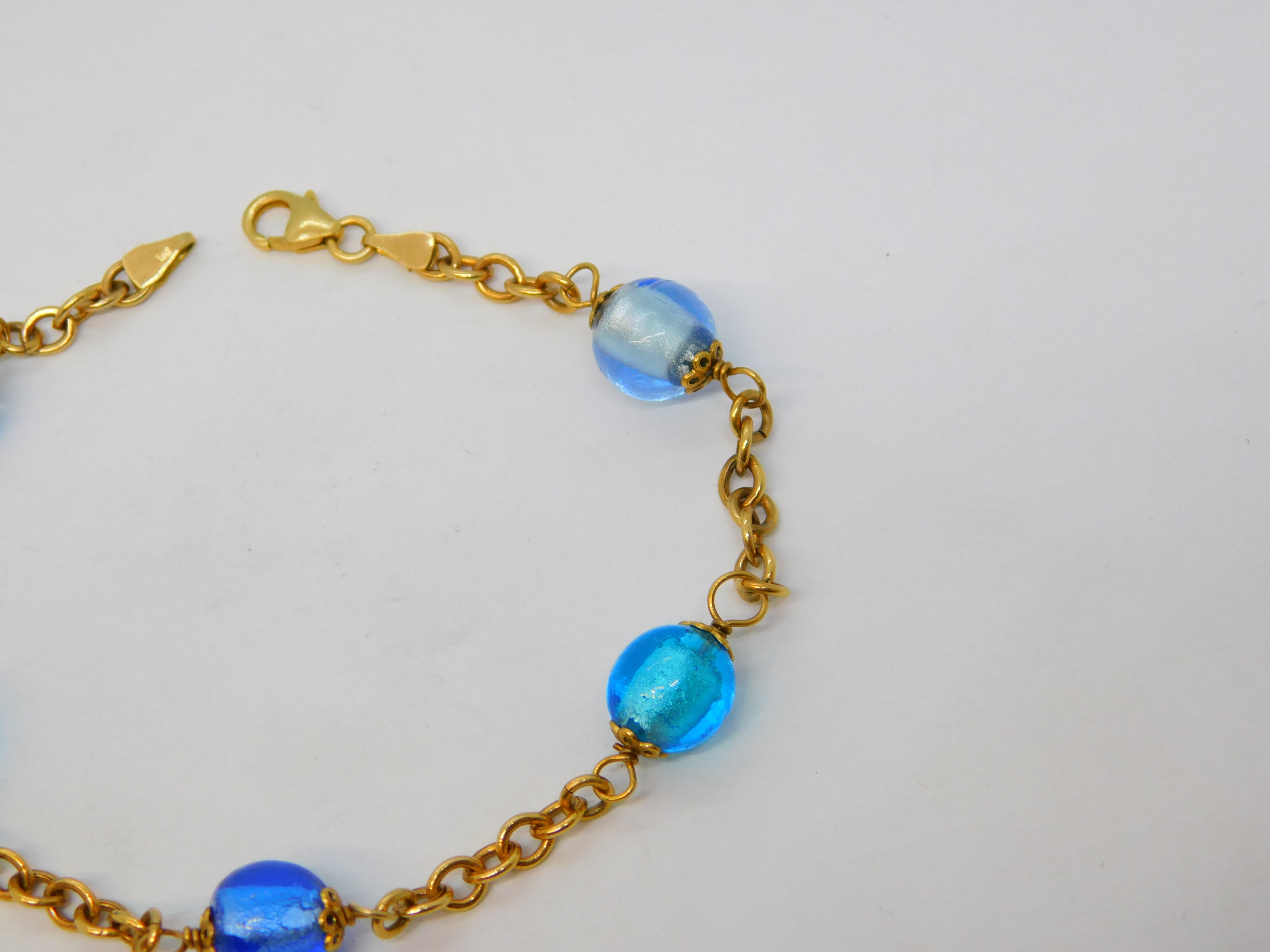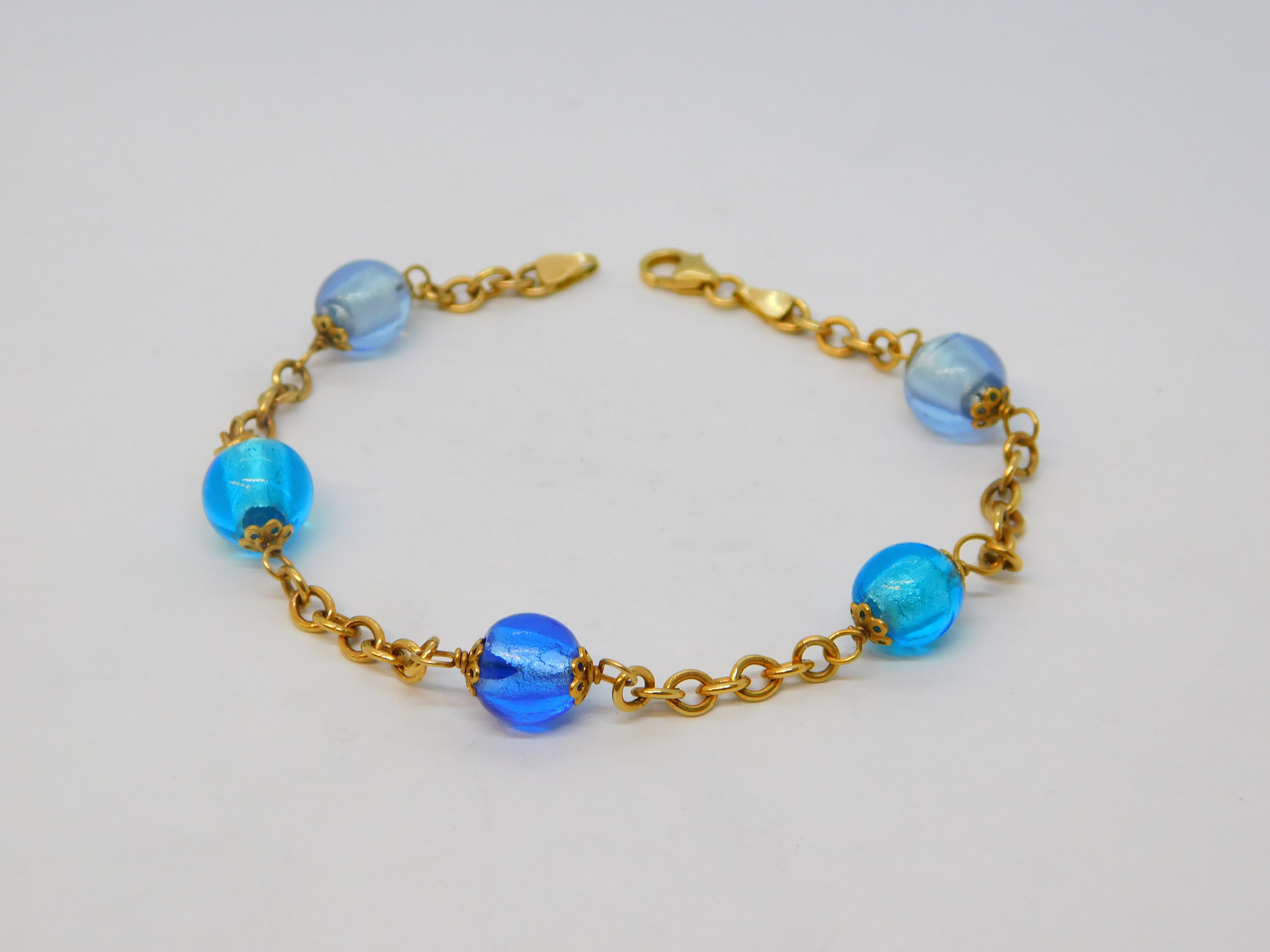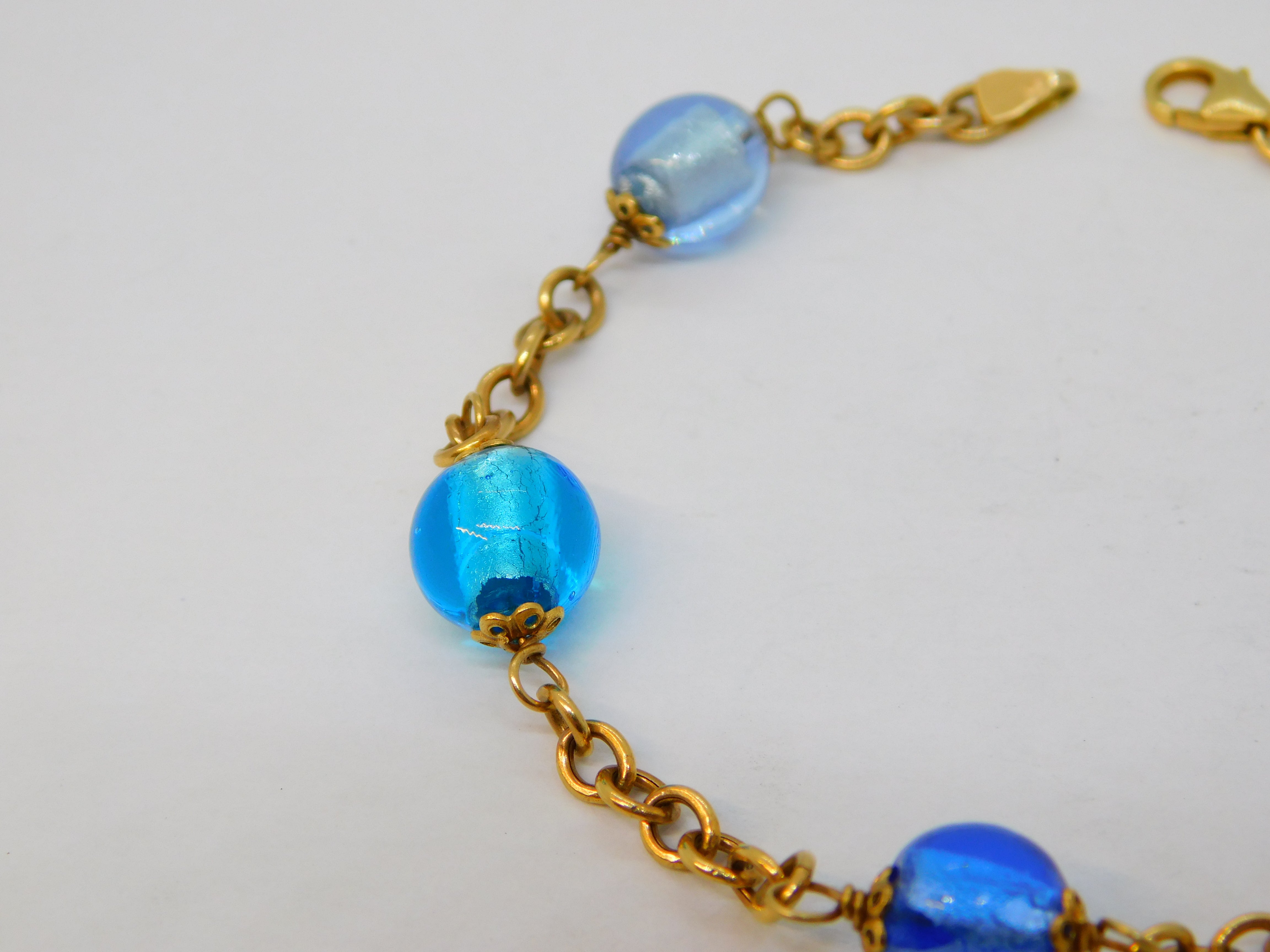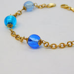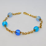 9ct Yellow Gold Five-Bead Blue Murano Glass Cable Bracelet Vintage c1980