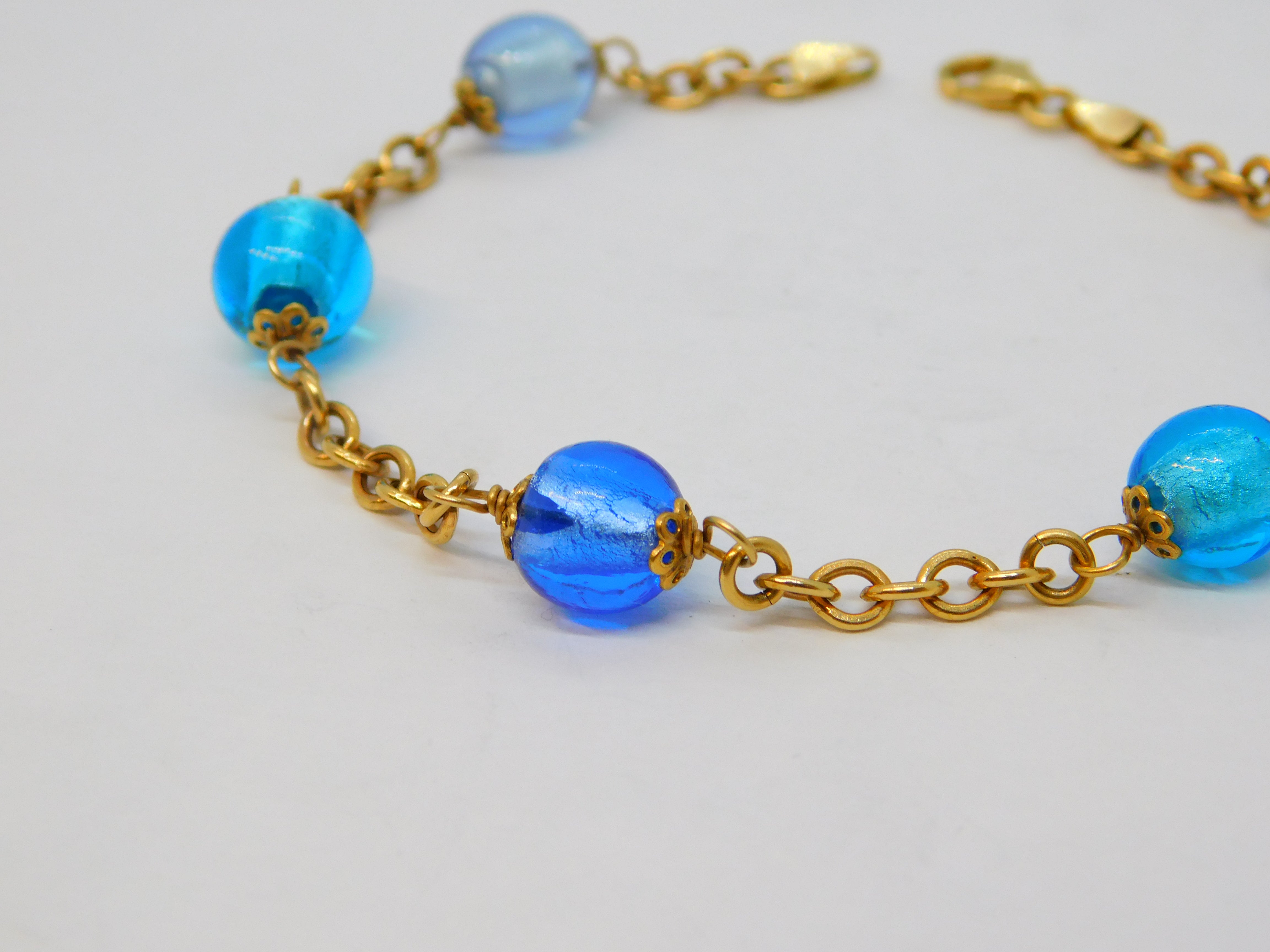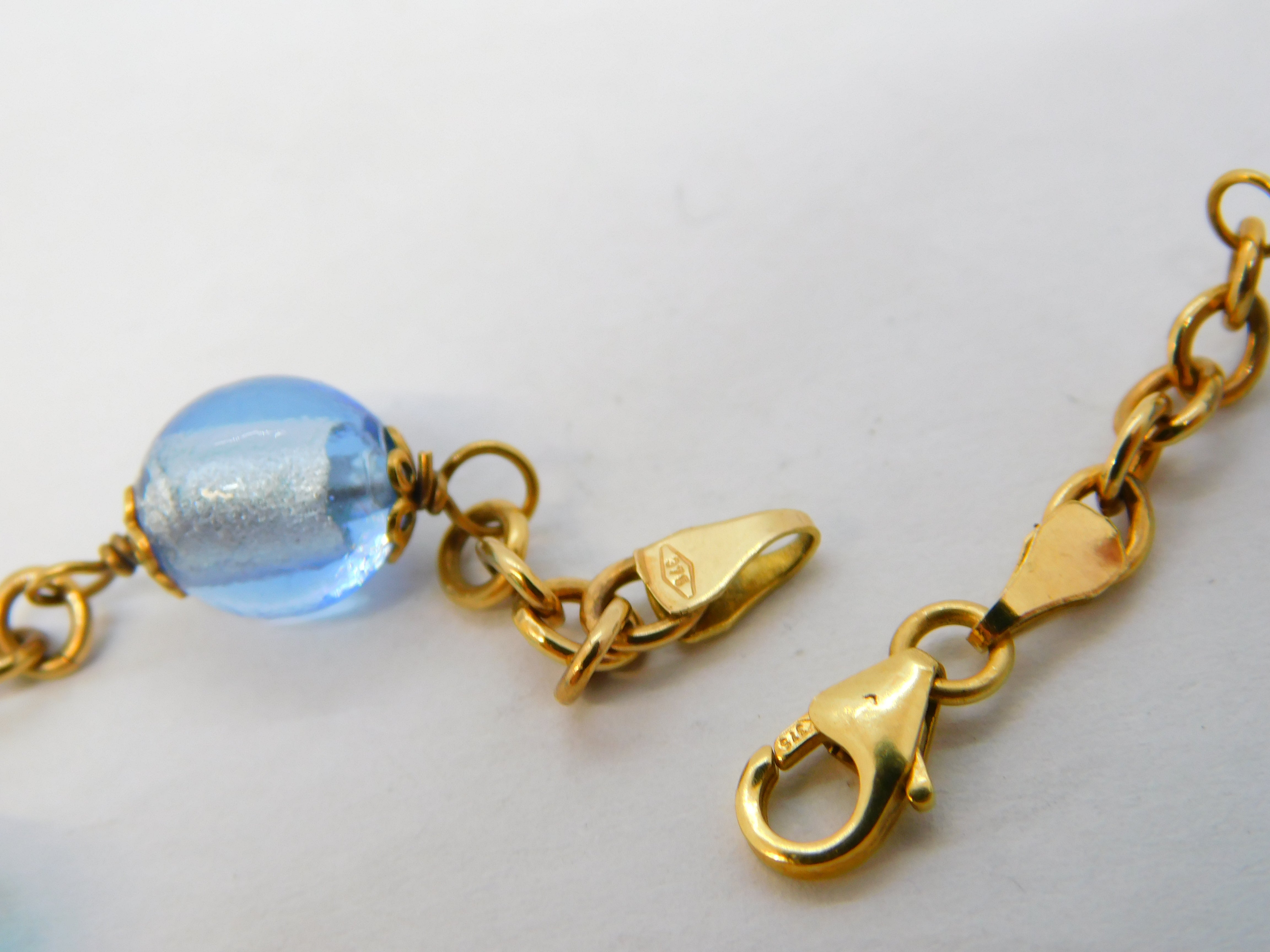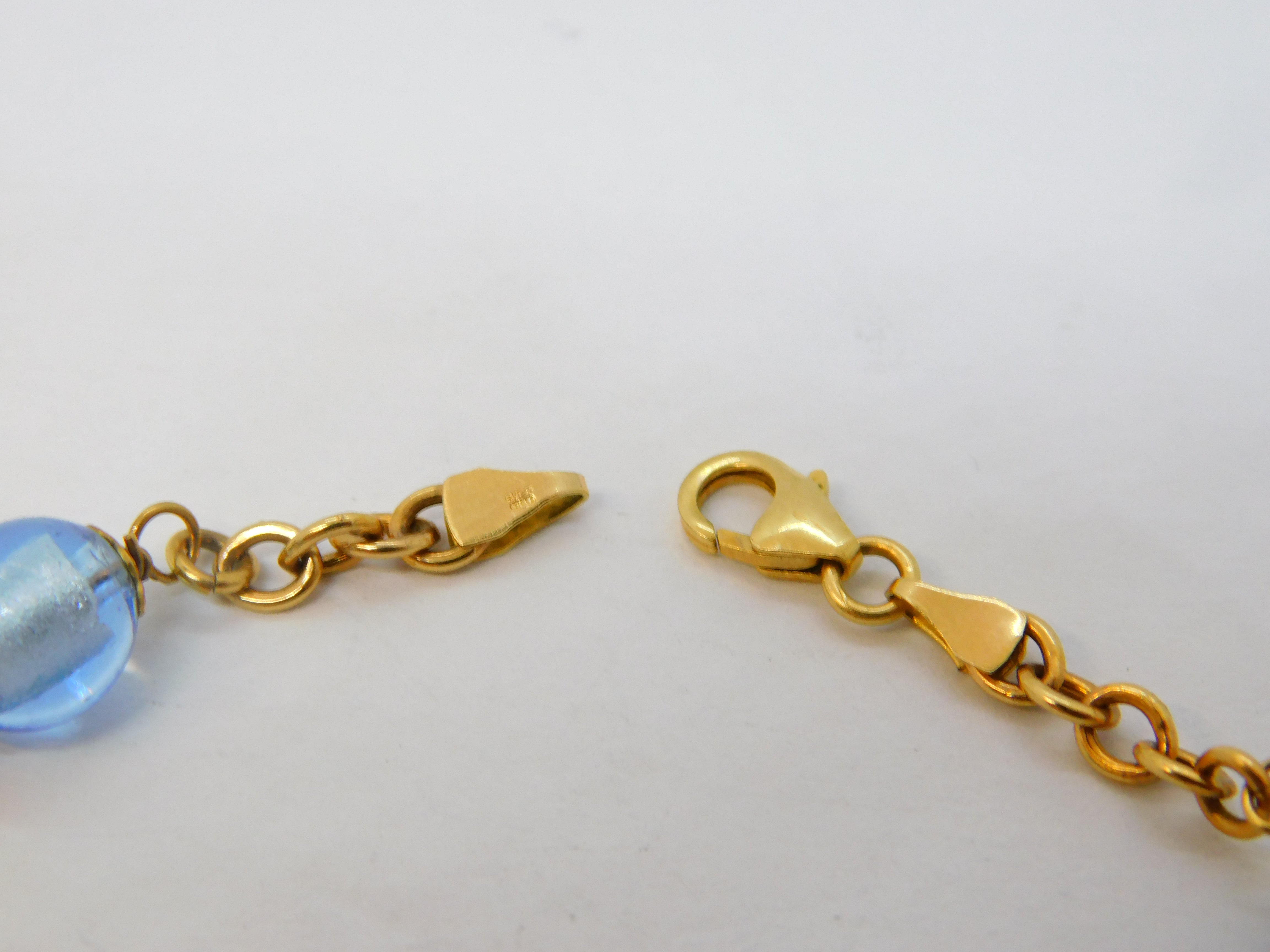 9ct Yellow Gold Five-Bead Blue Murano Glass Cable Bracelet Vintage c1980