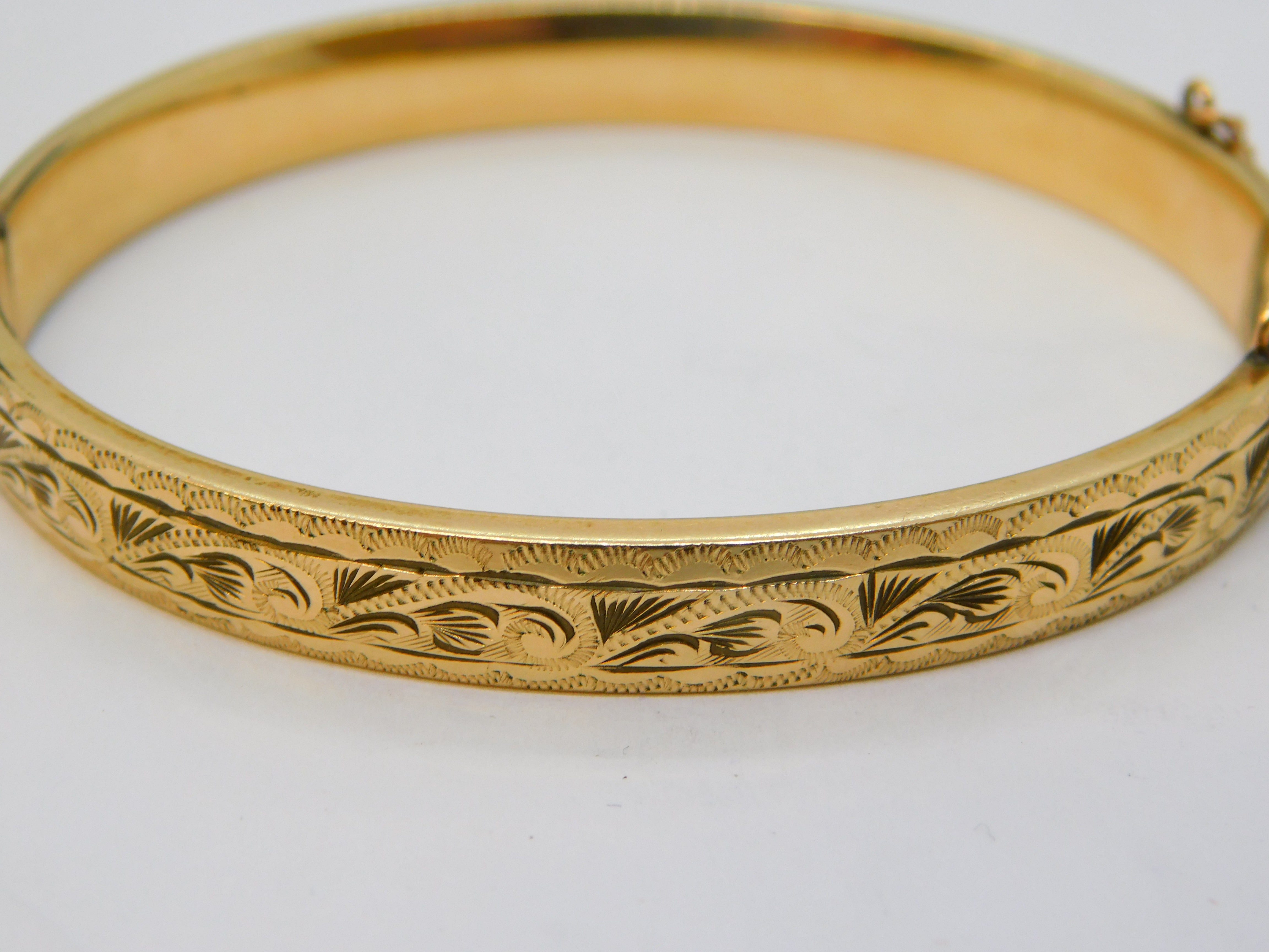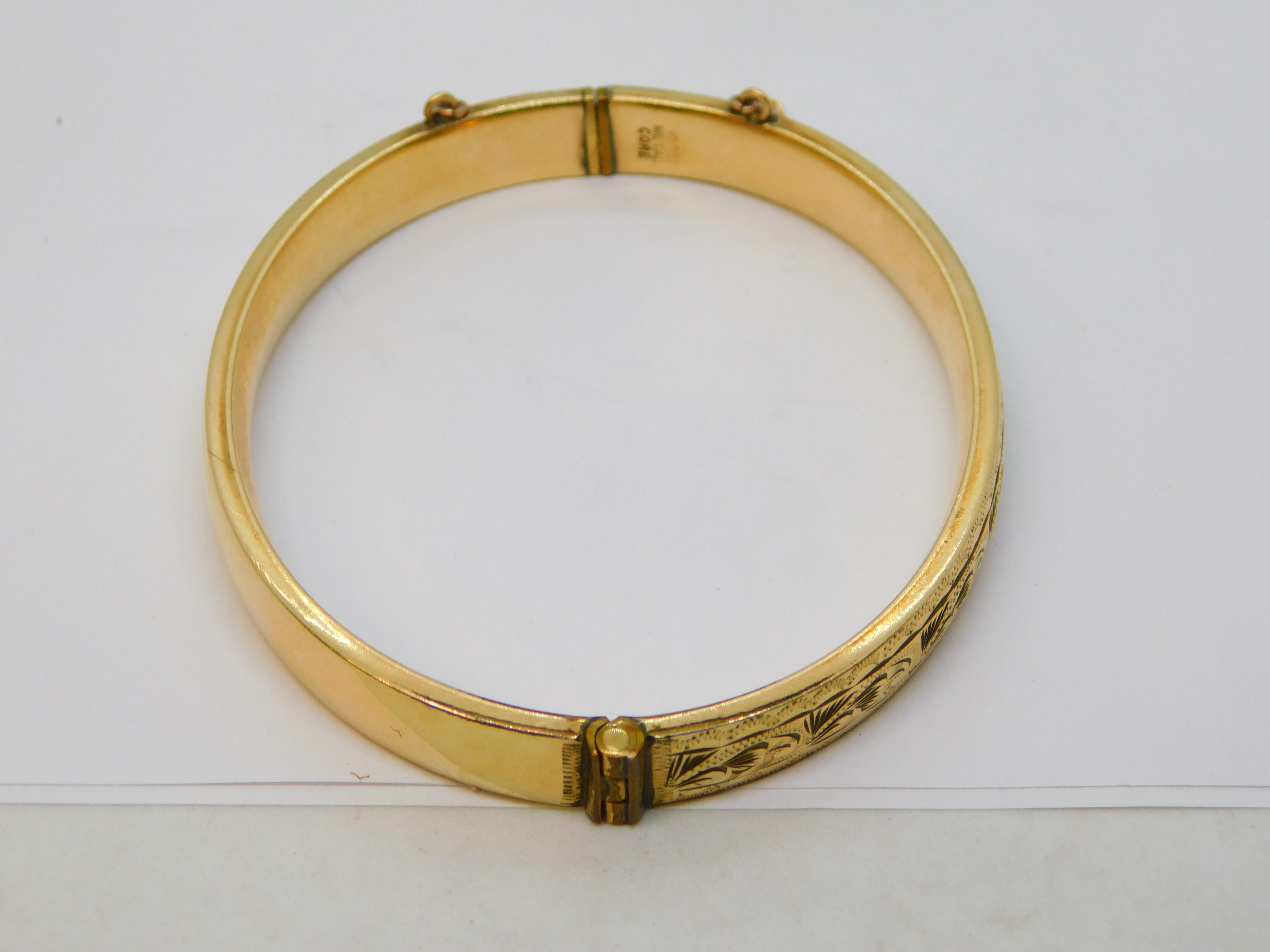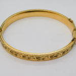 9ct Yellow Gold on Metal Core Floral Bangle Bracelet Antique c1930 Art Deco