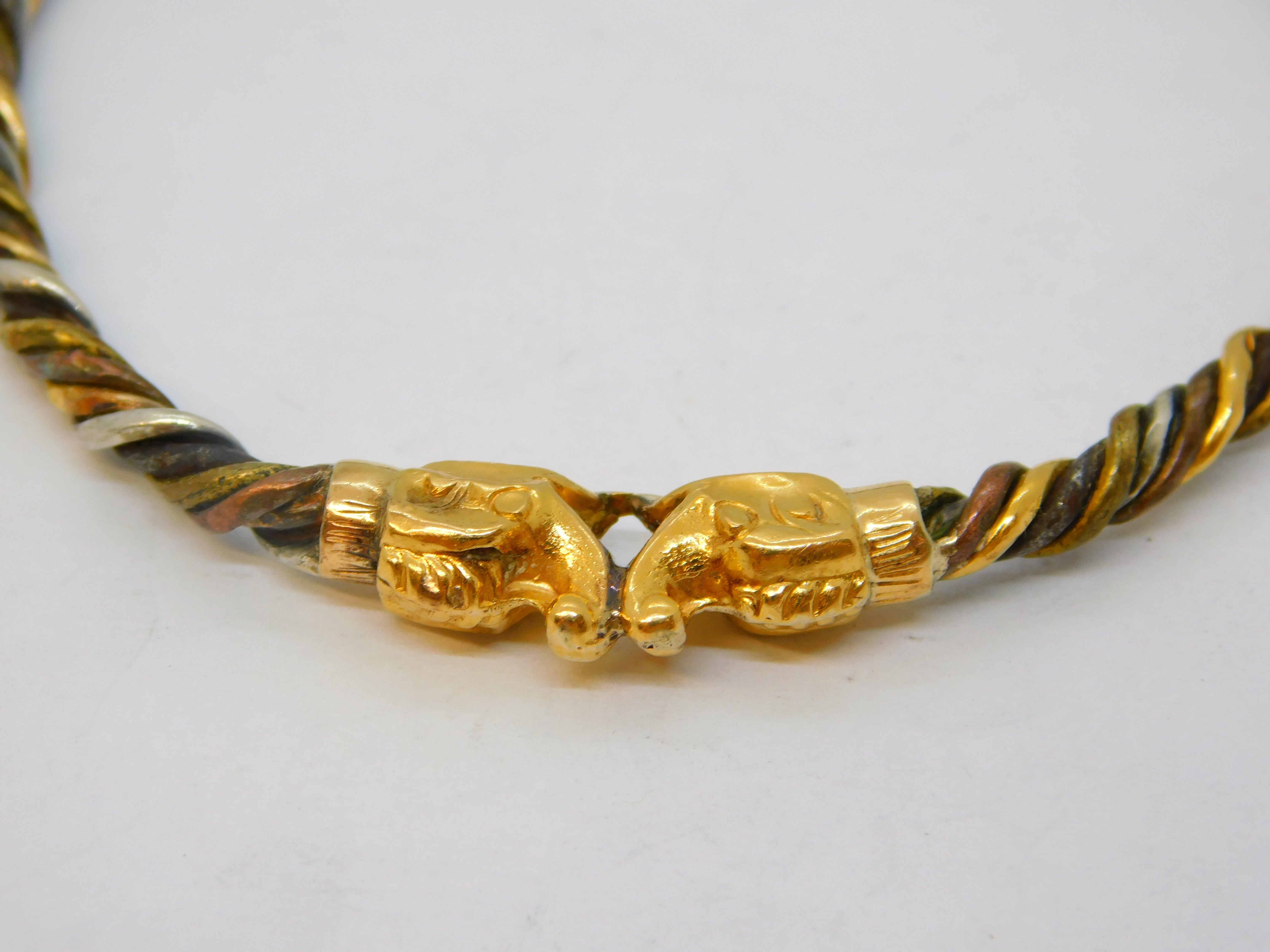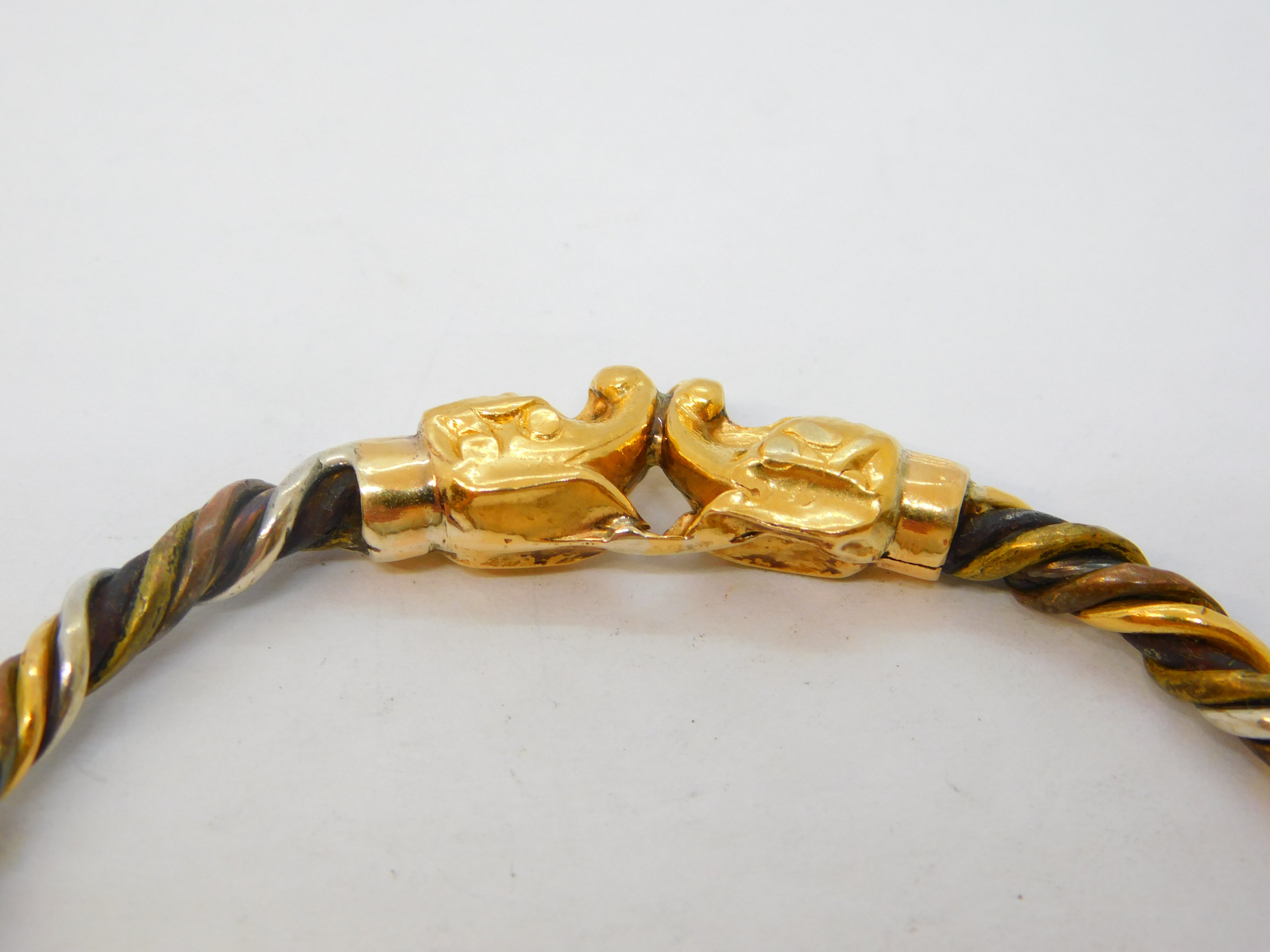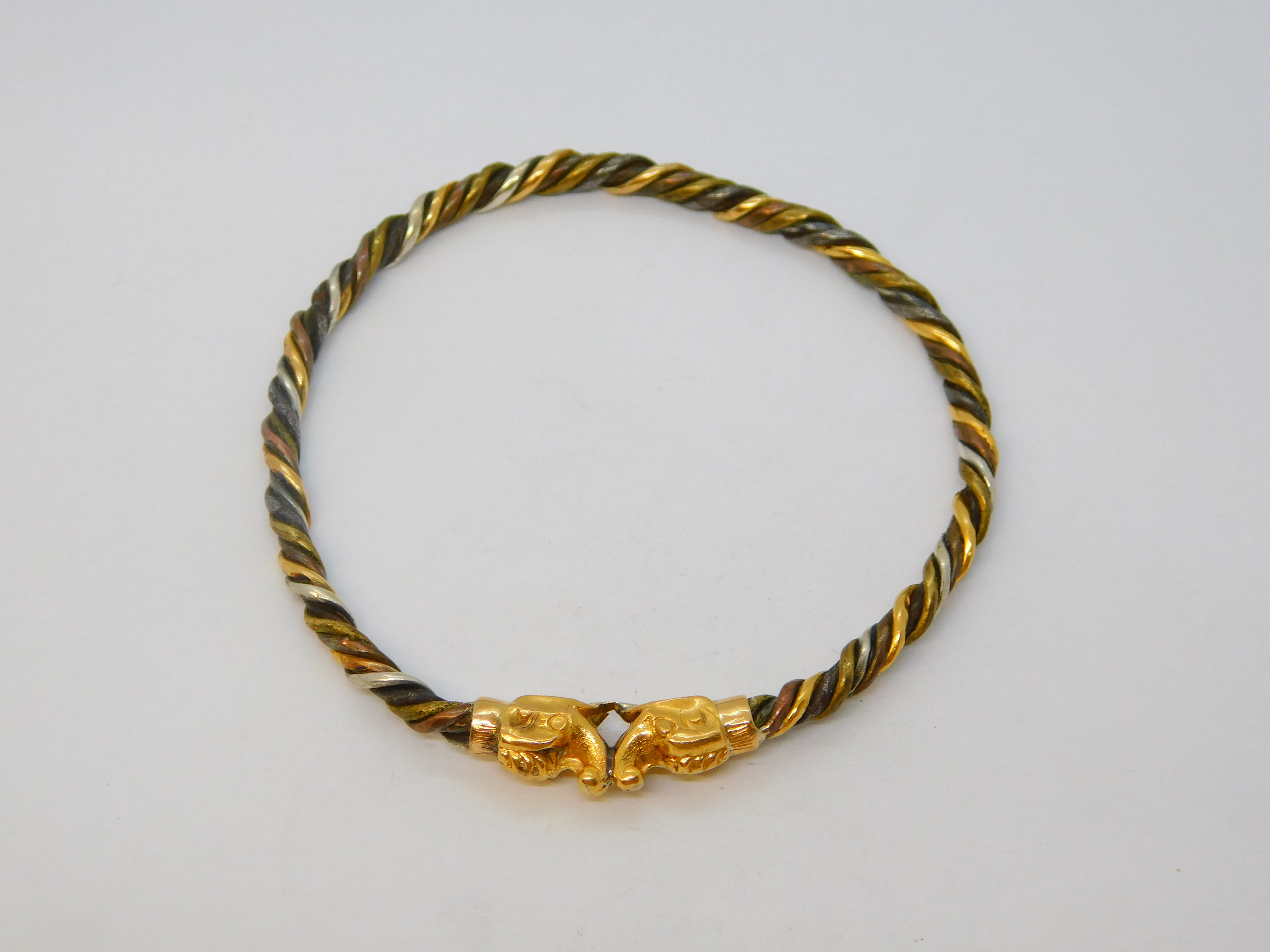 Ancient 18ct Gold Mixed Metal Mythic Beast Form Bangle Bracelet Byzantine