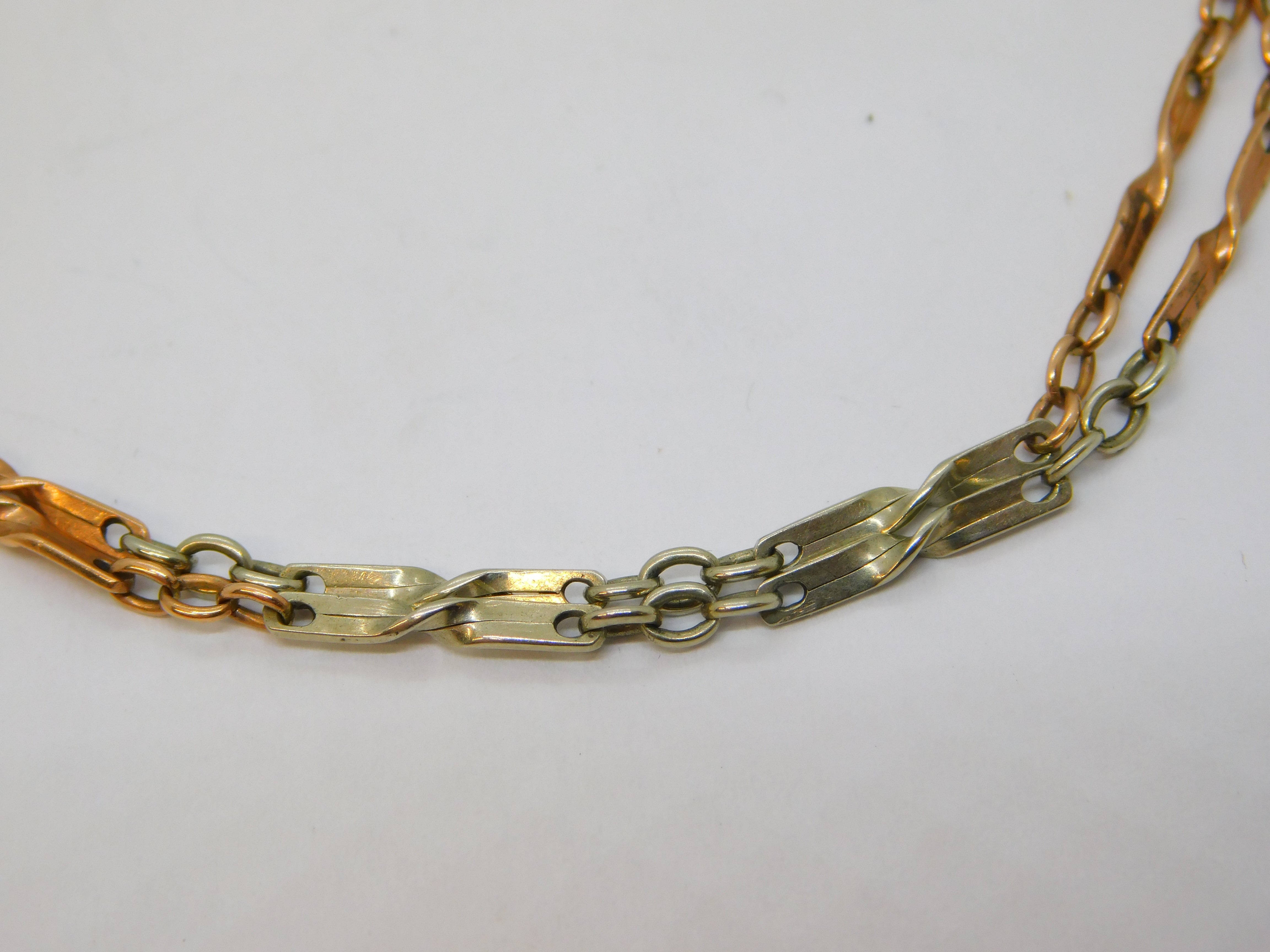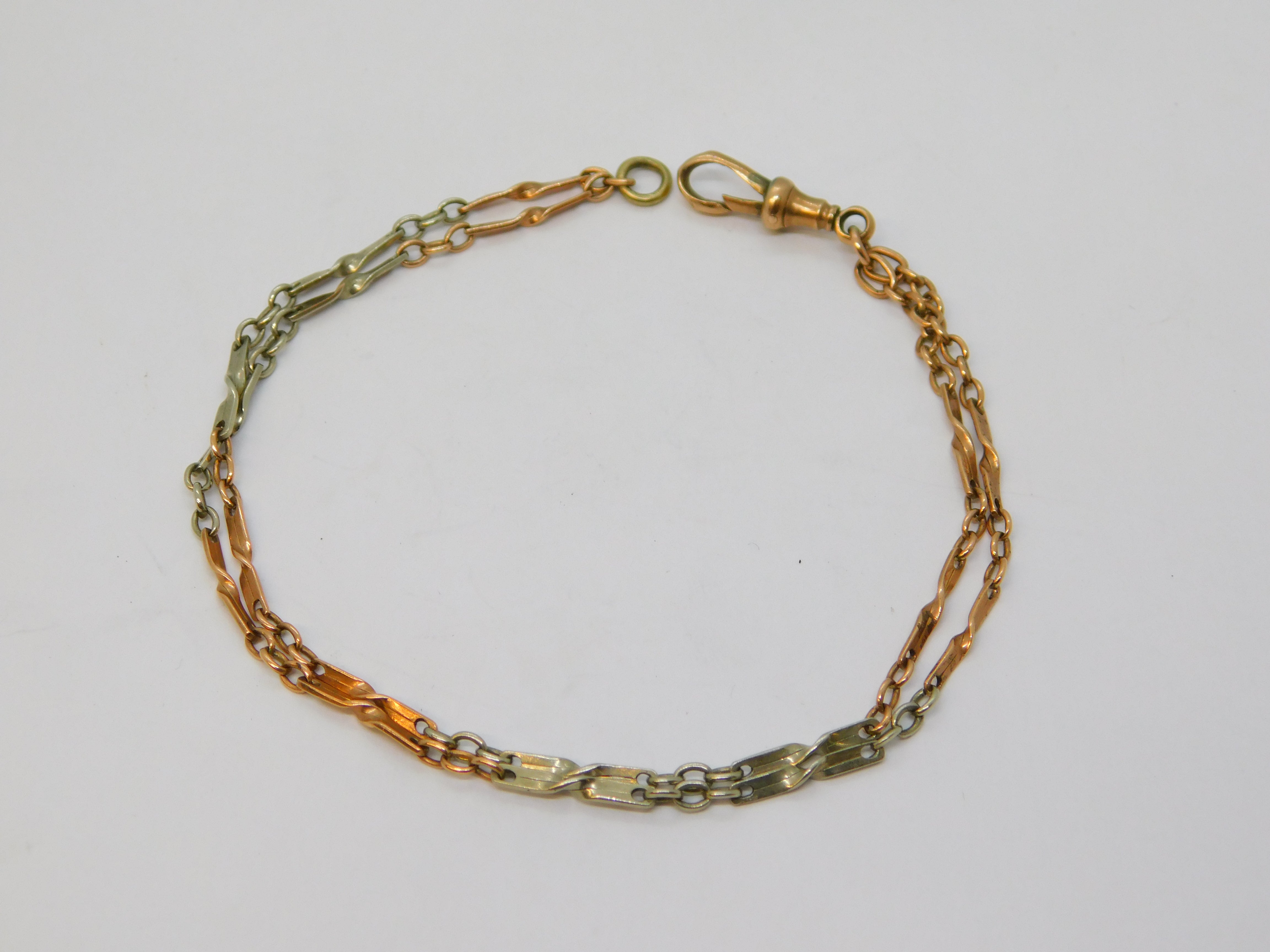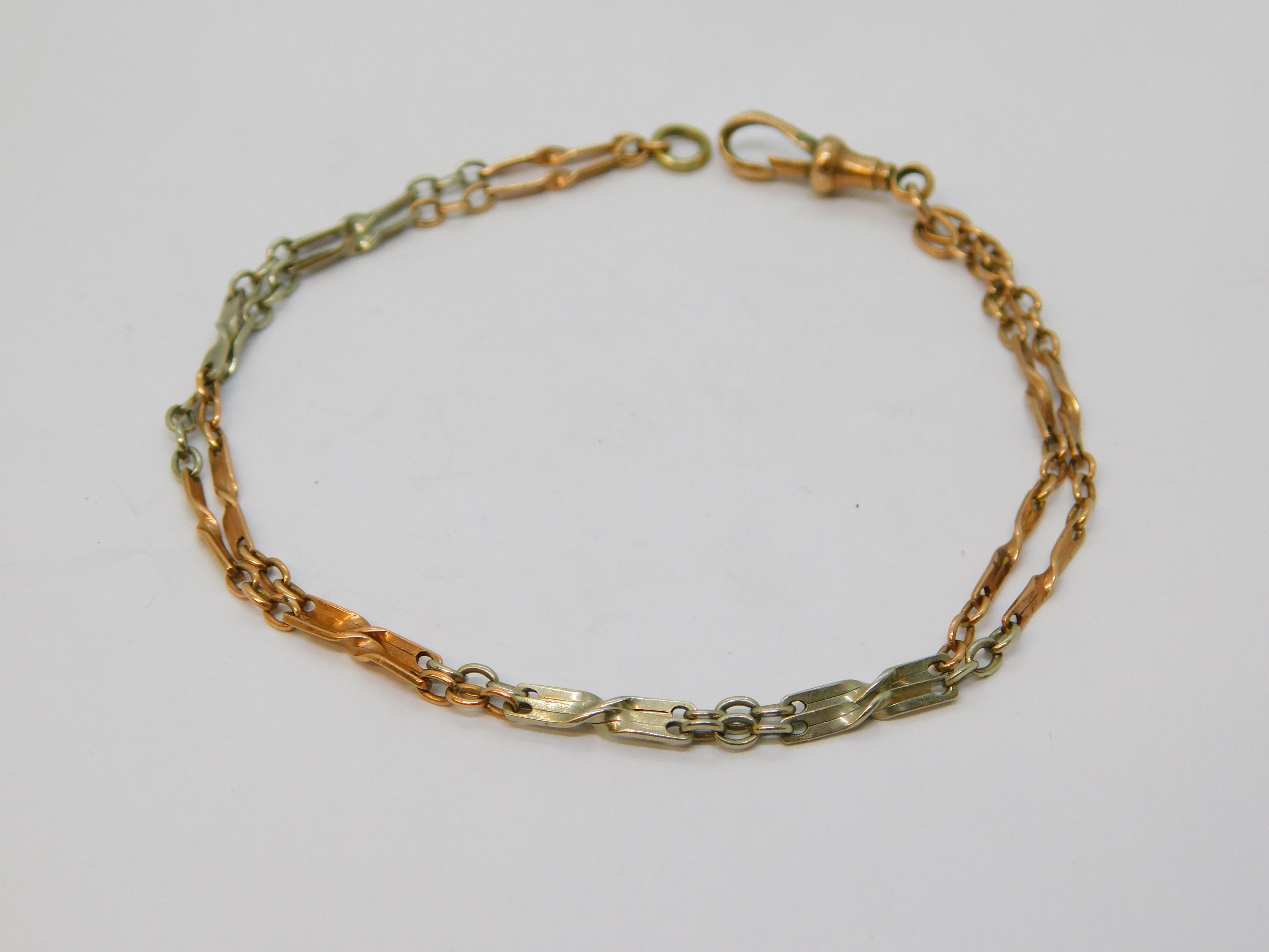 Edwardian 9ct Rose & White Gold Fancy Link Chain Bracelet Antique c1910
