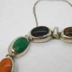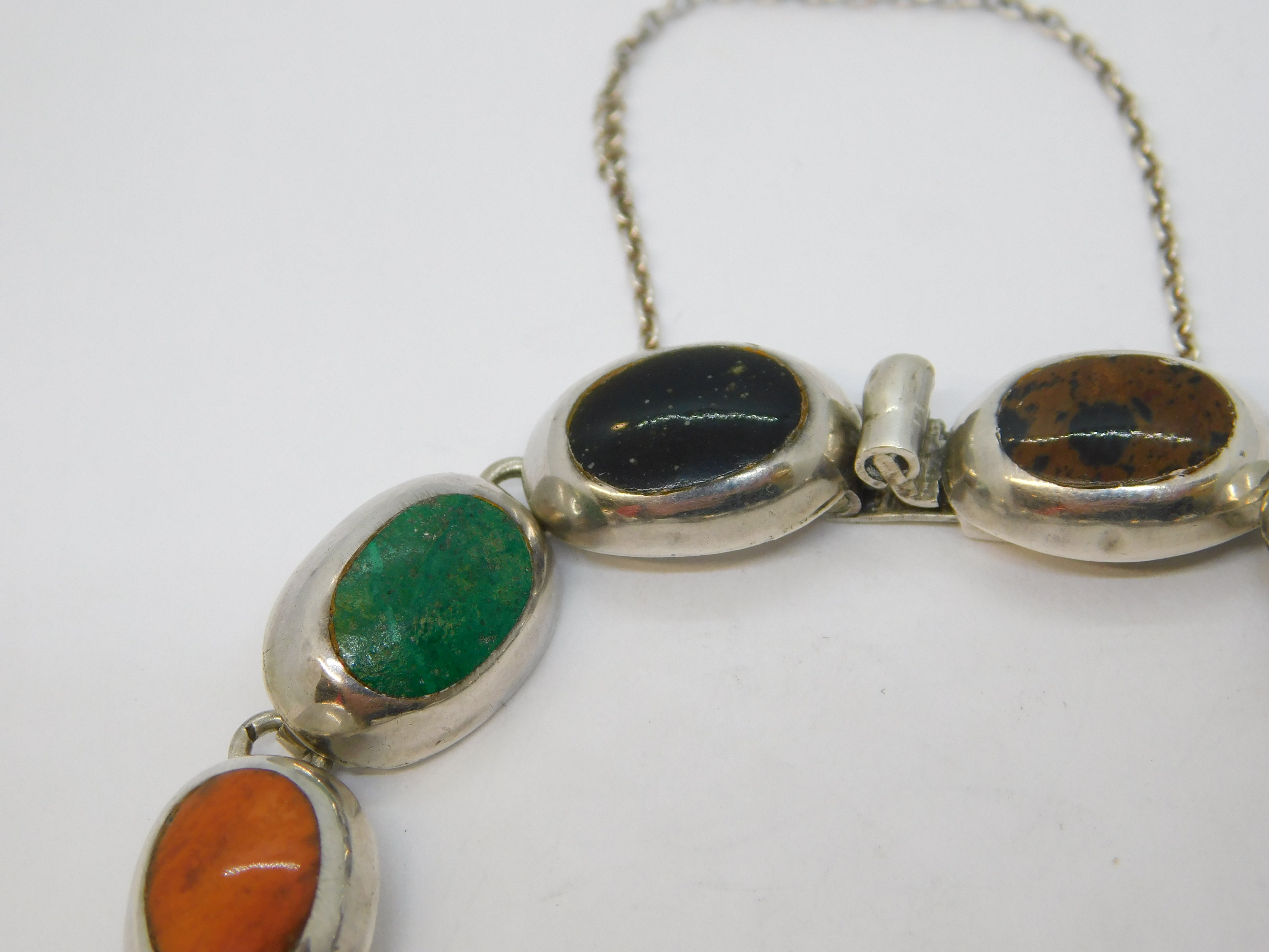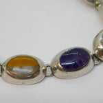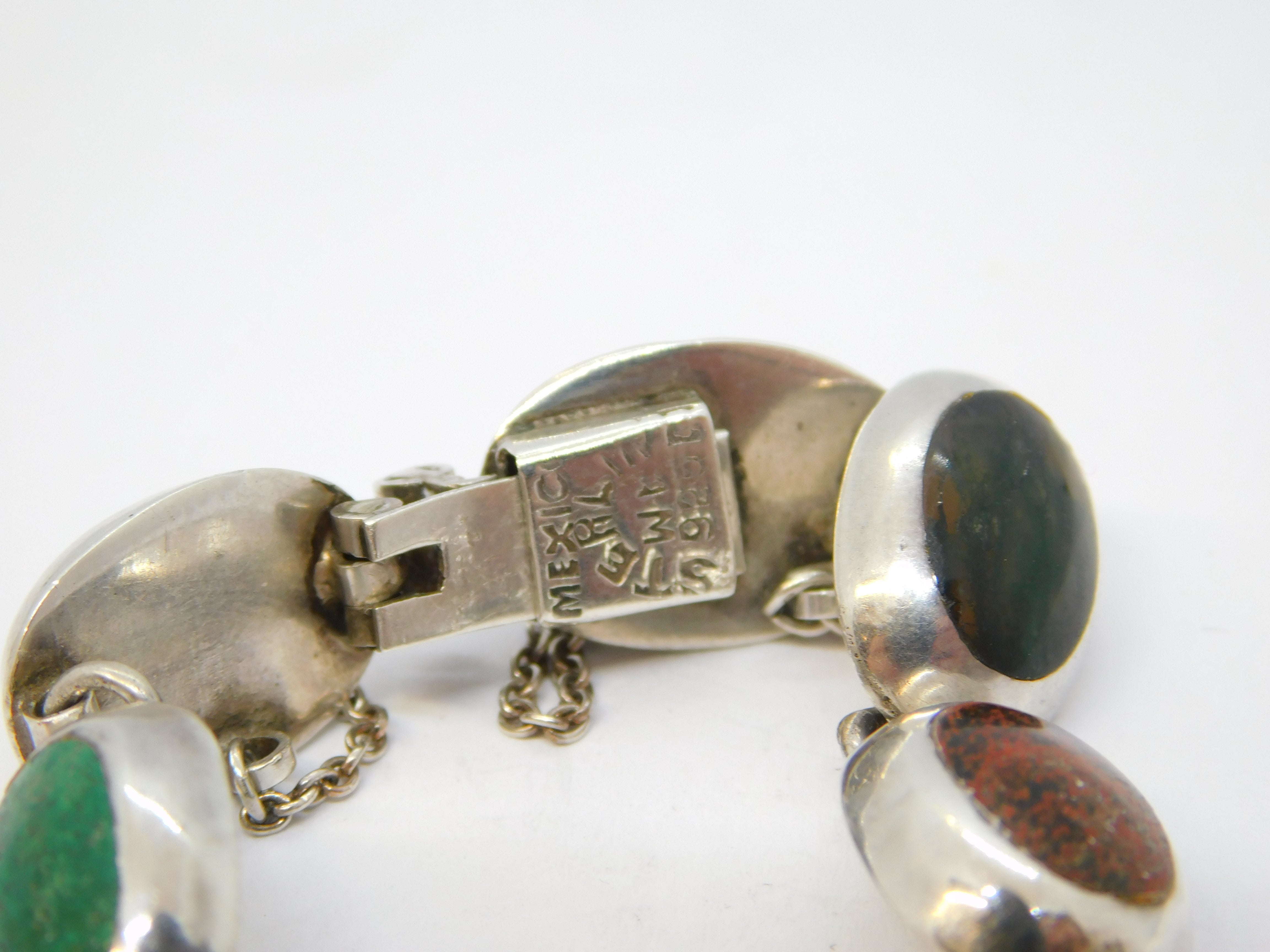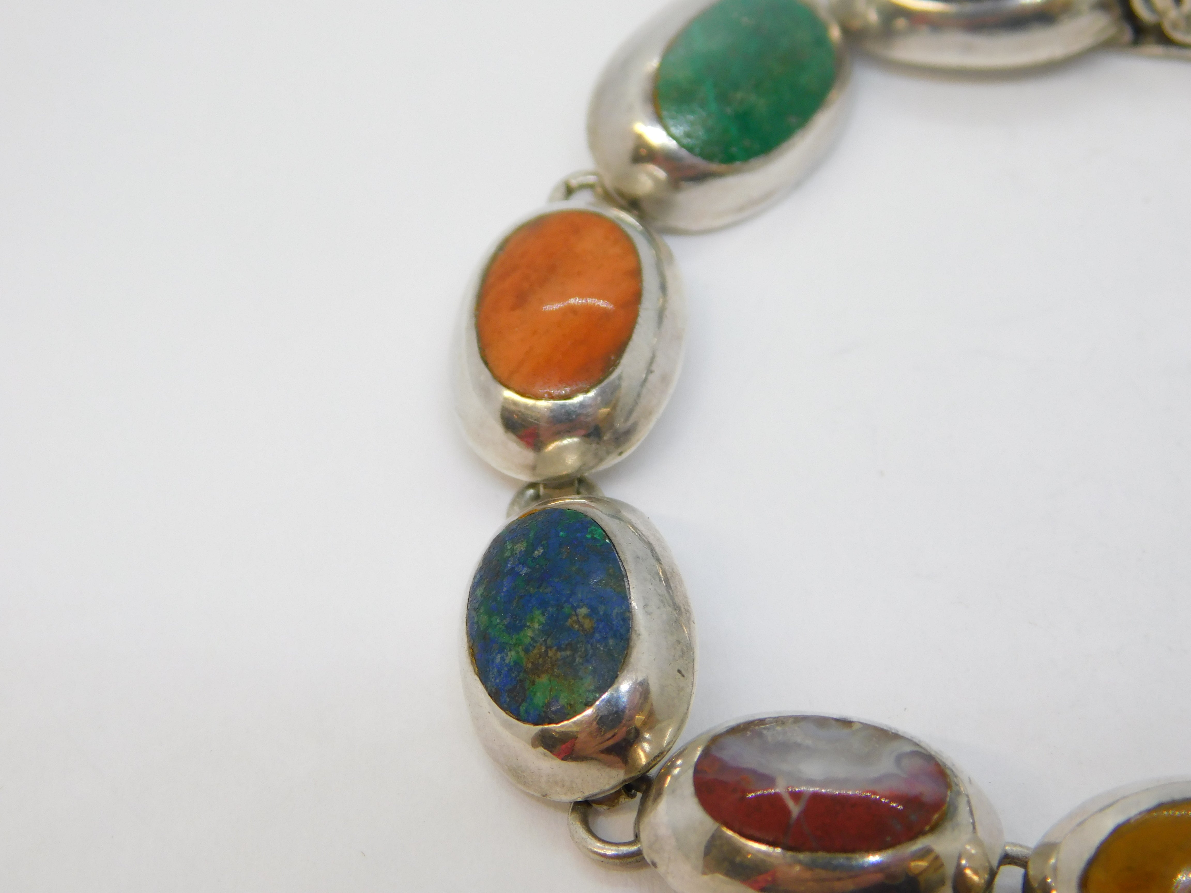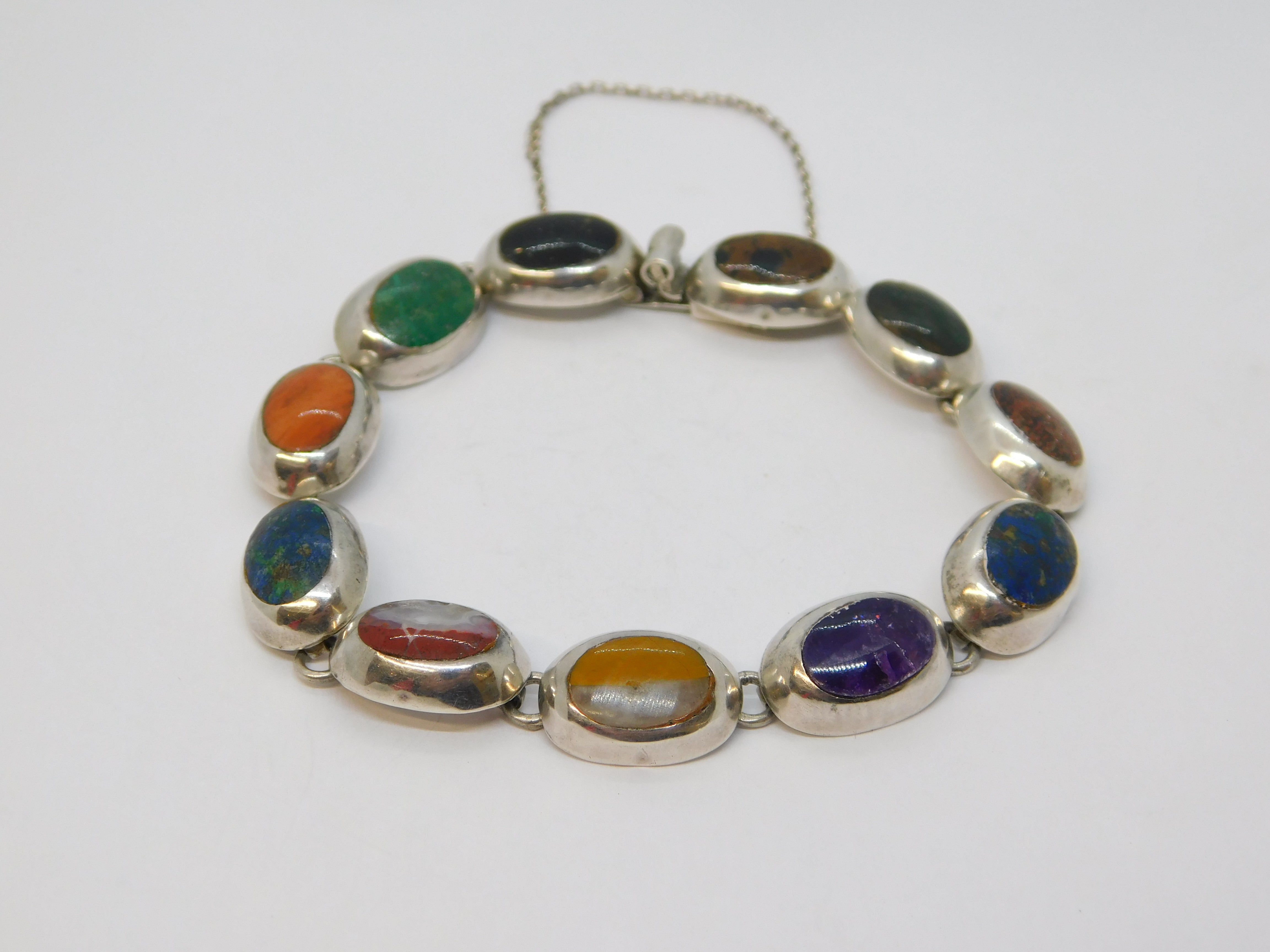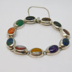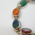 Mexican Sterling Silver Multi-Gem Set Panel Bracelet Vintage c1970
