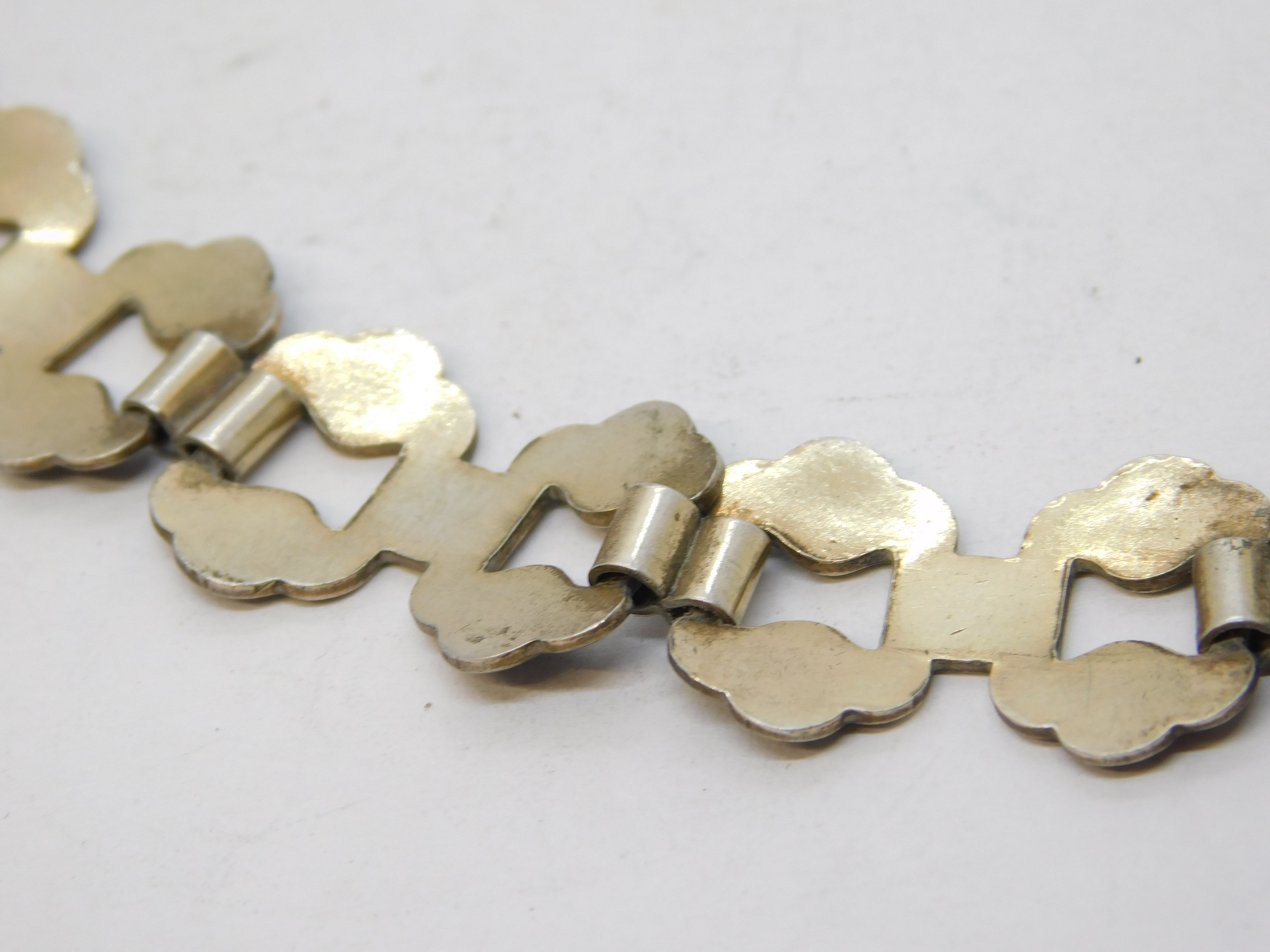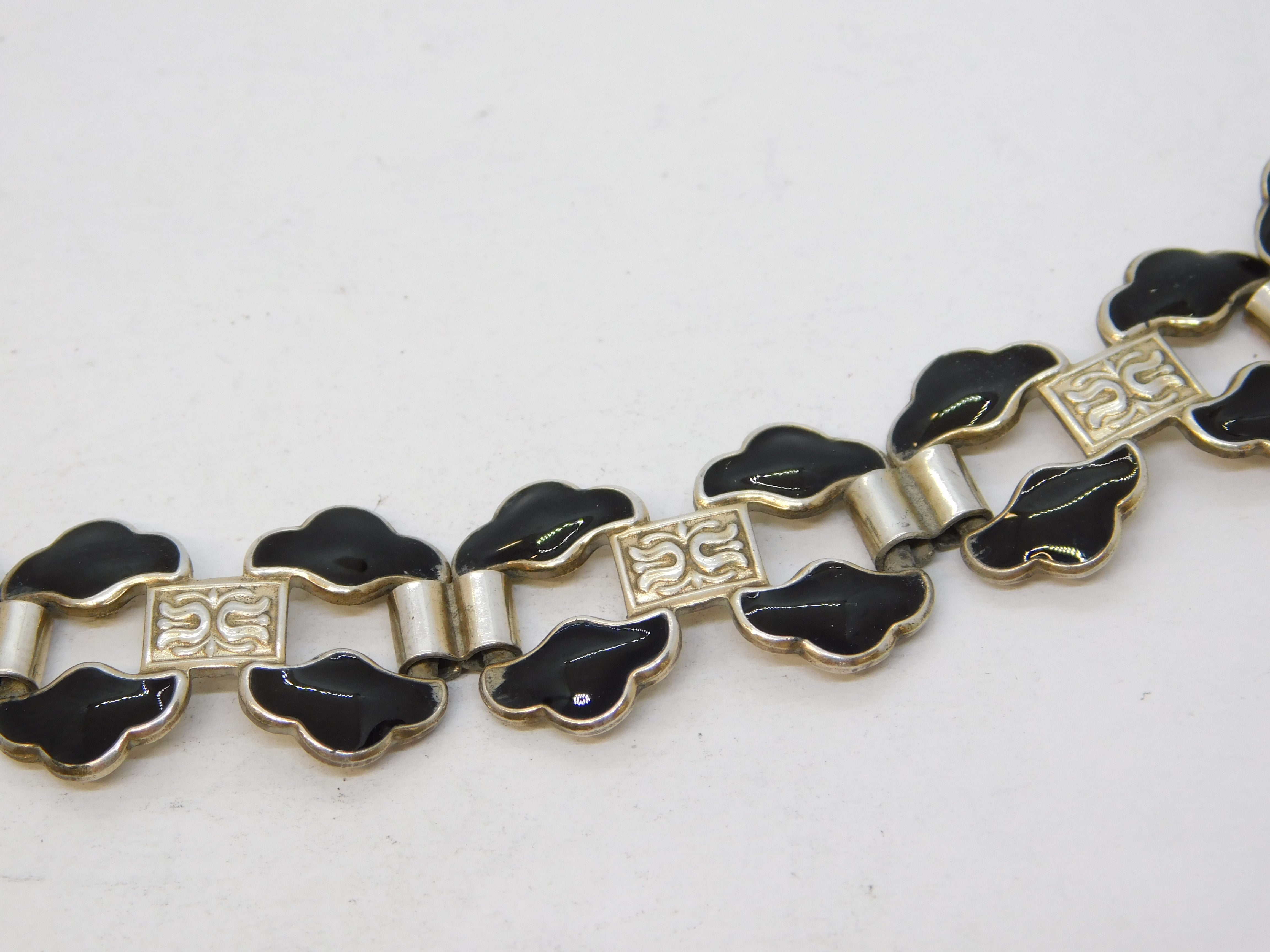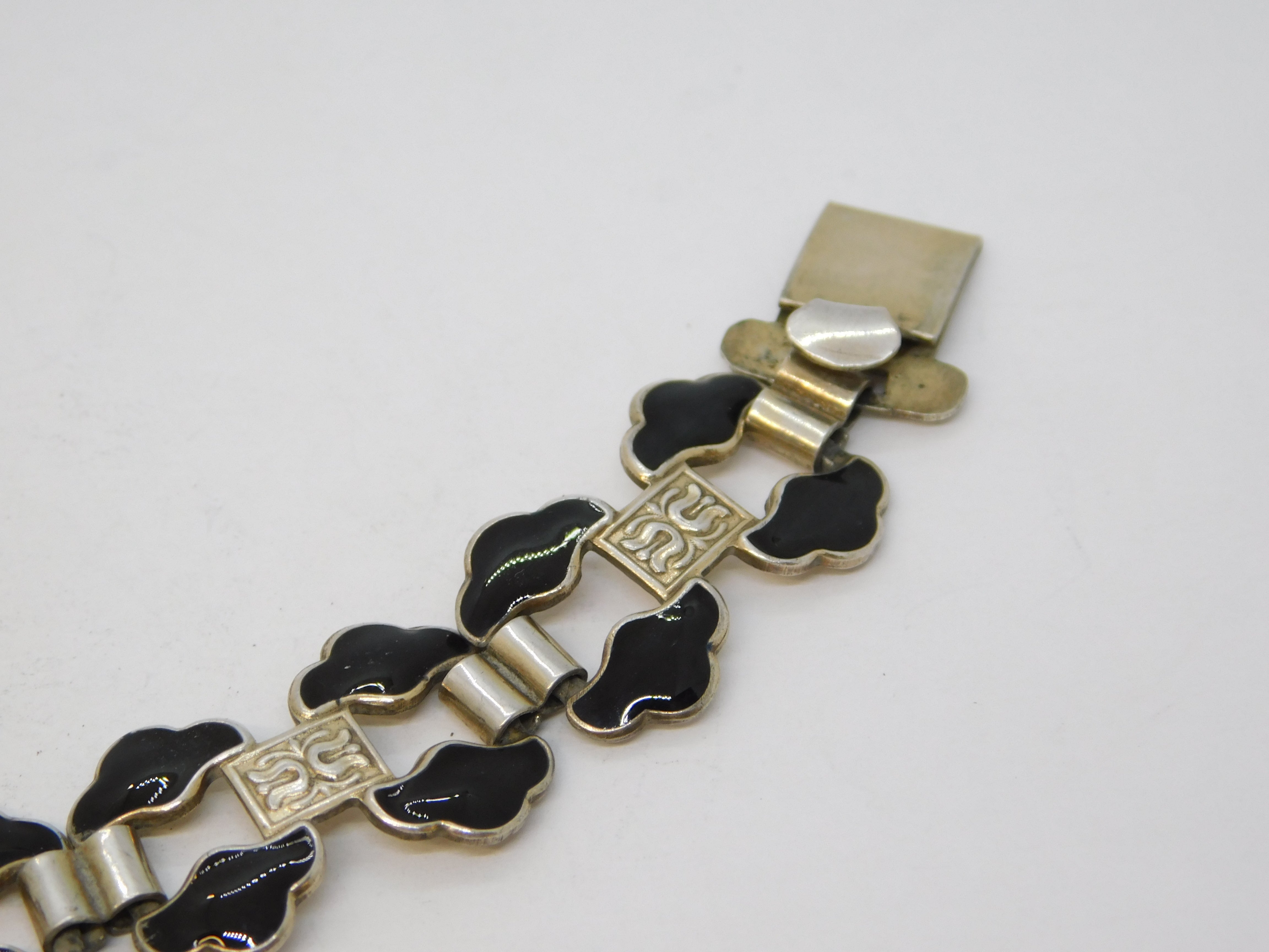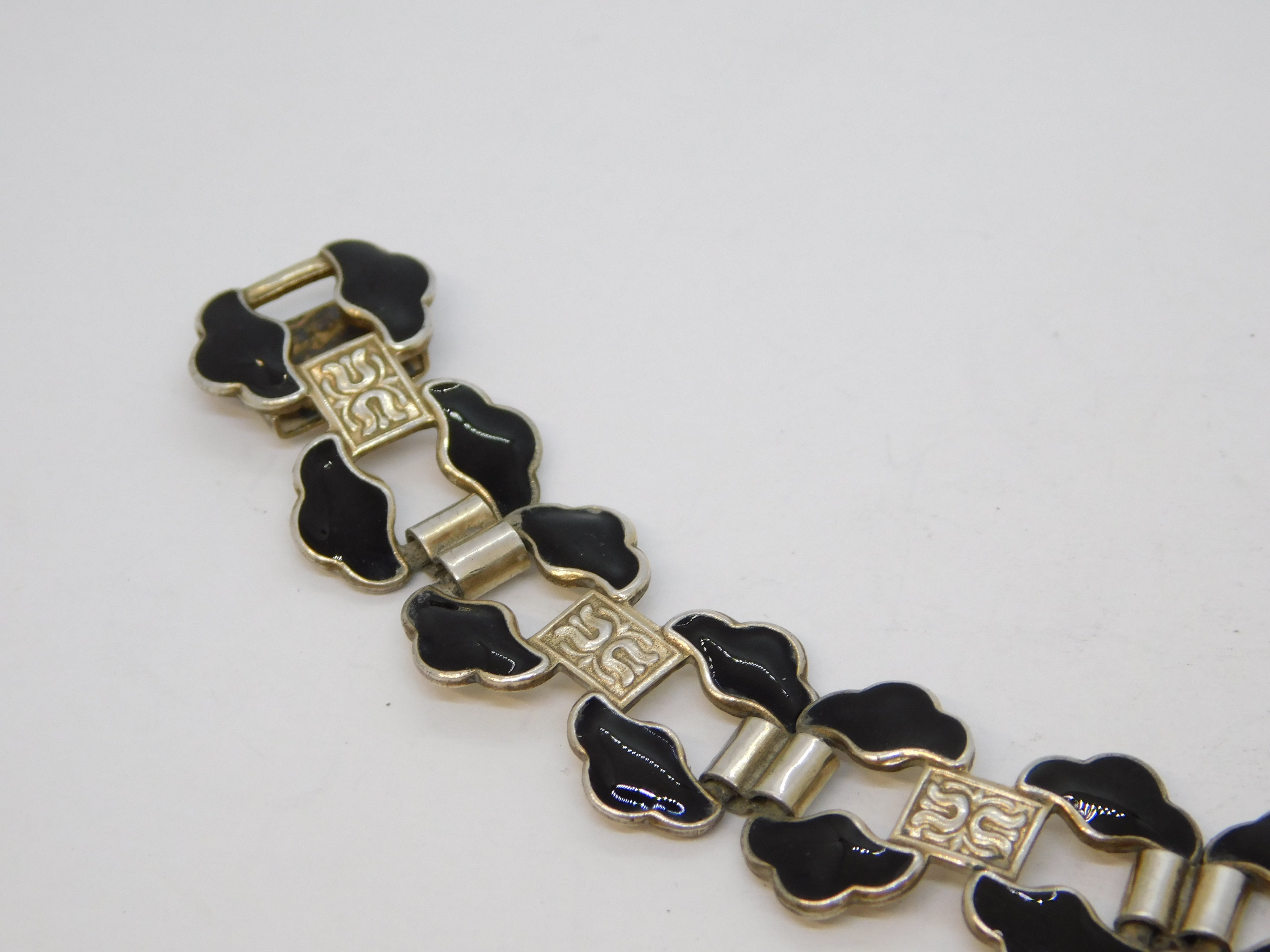 Norwegian Sterling Silver Black Enamel Panel Bracelet Antique c1930 Art Deco