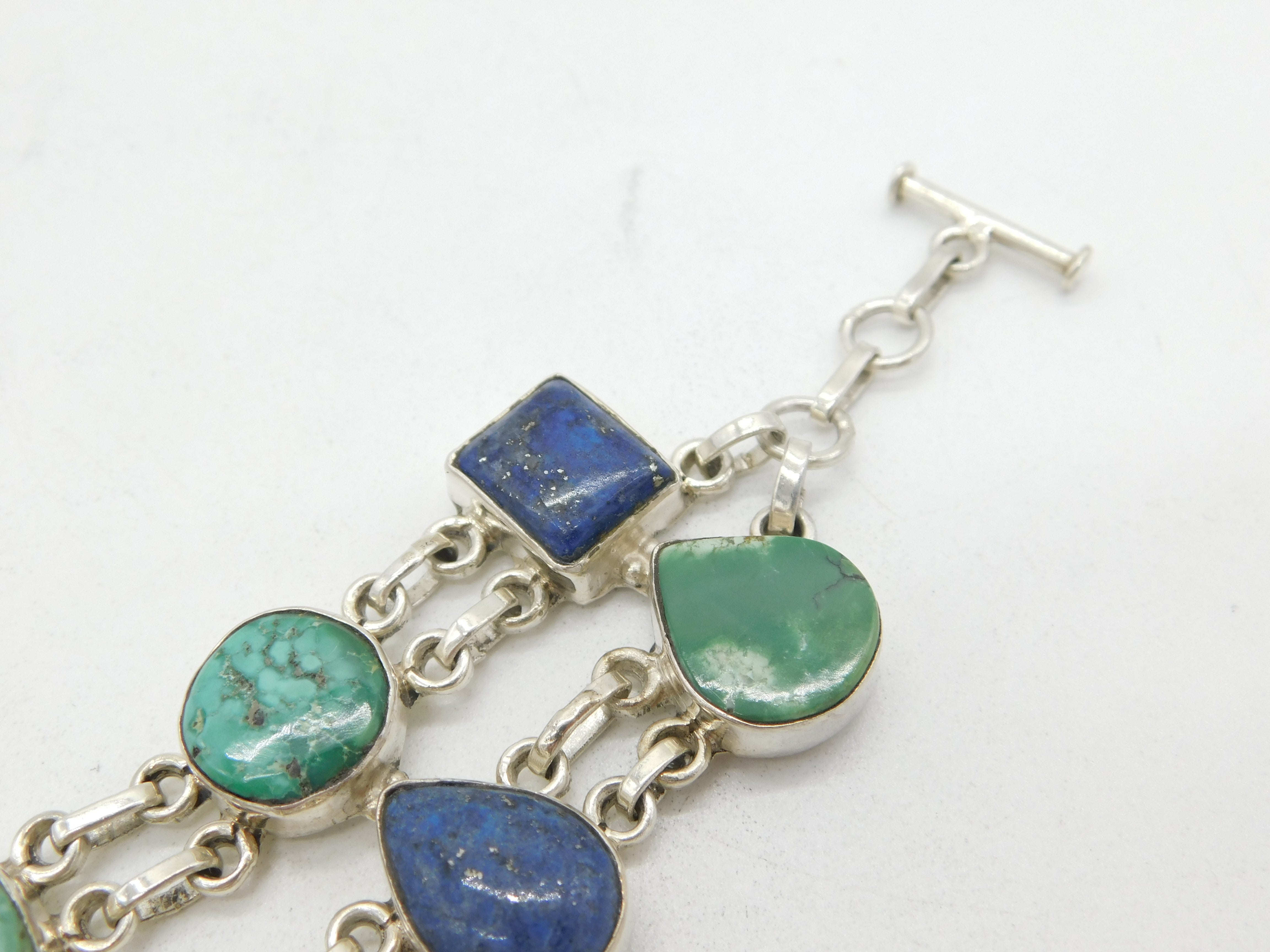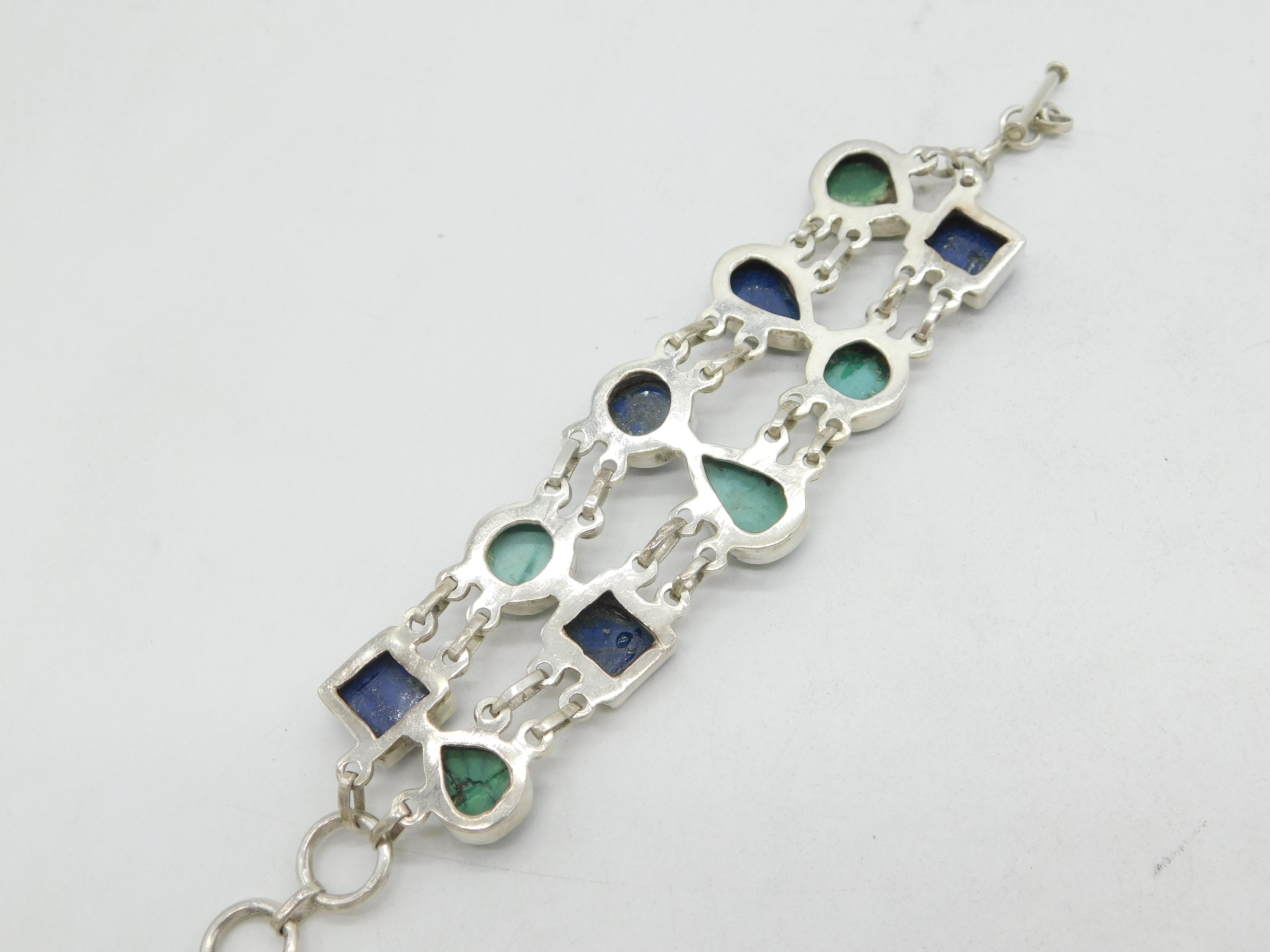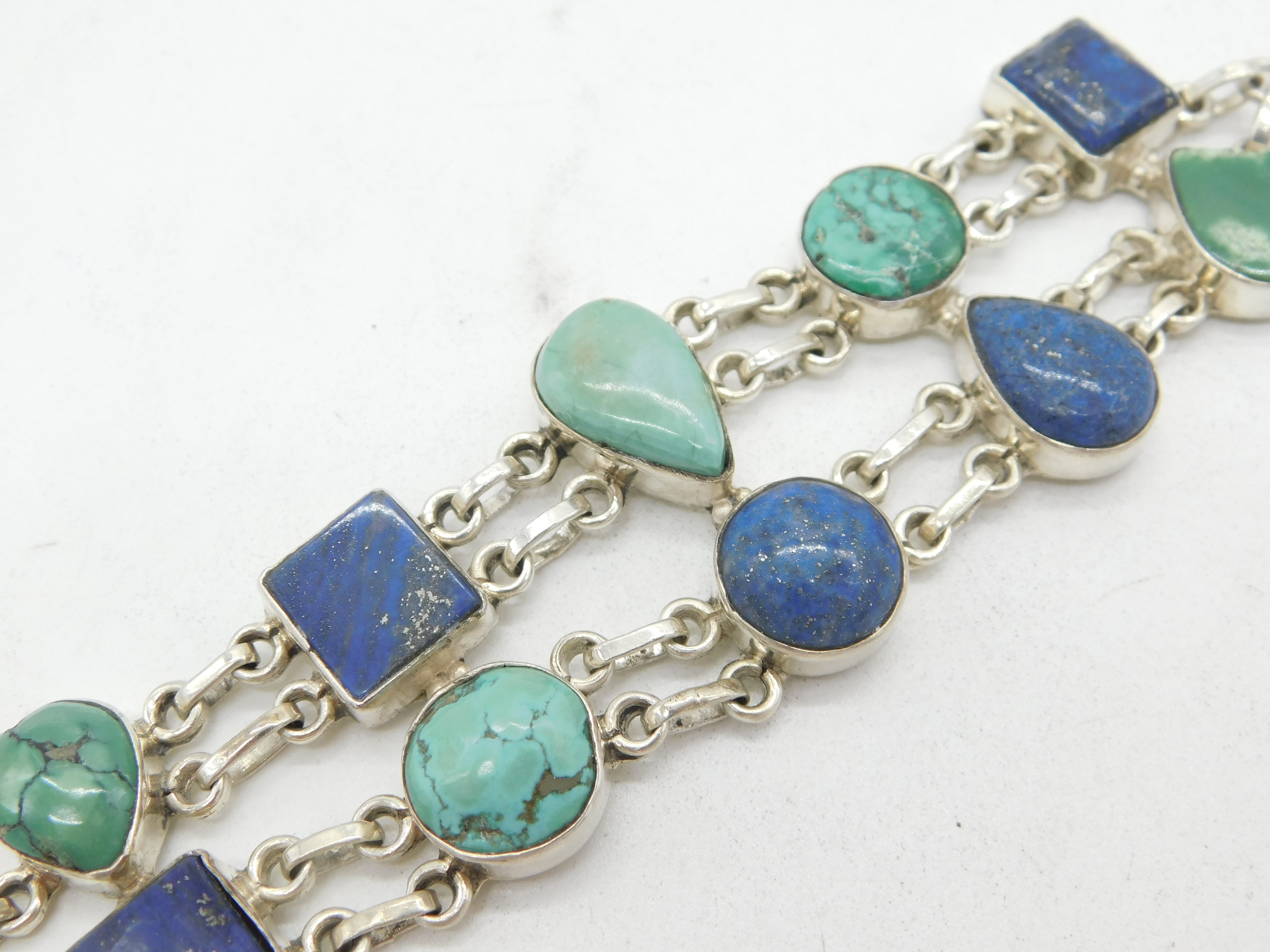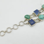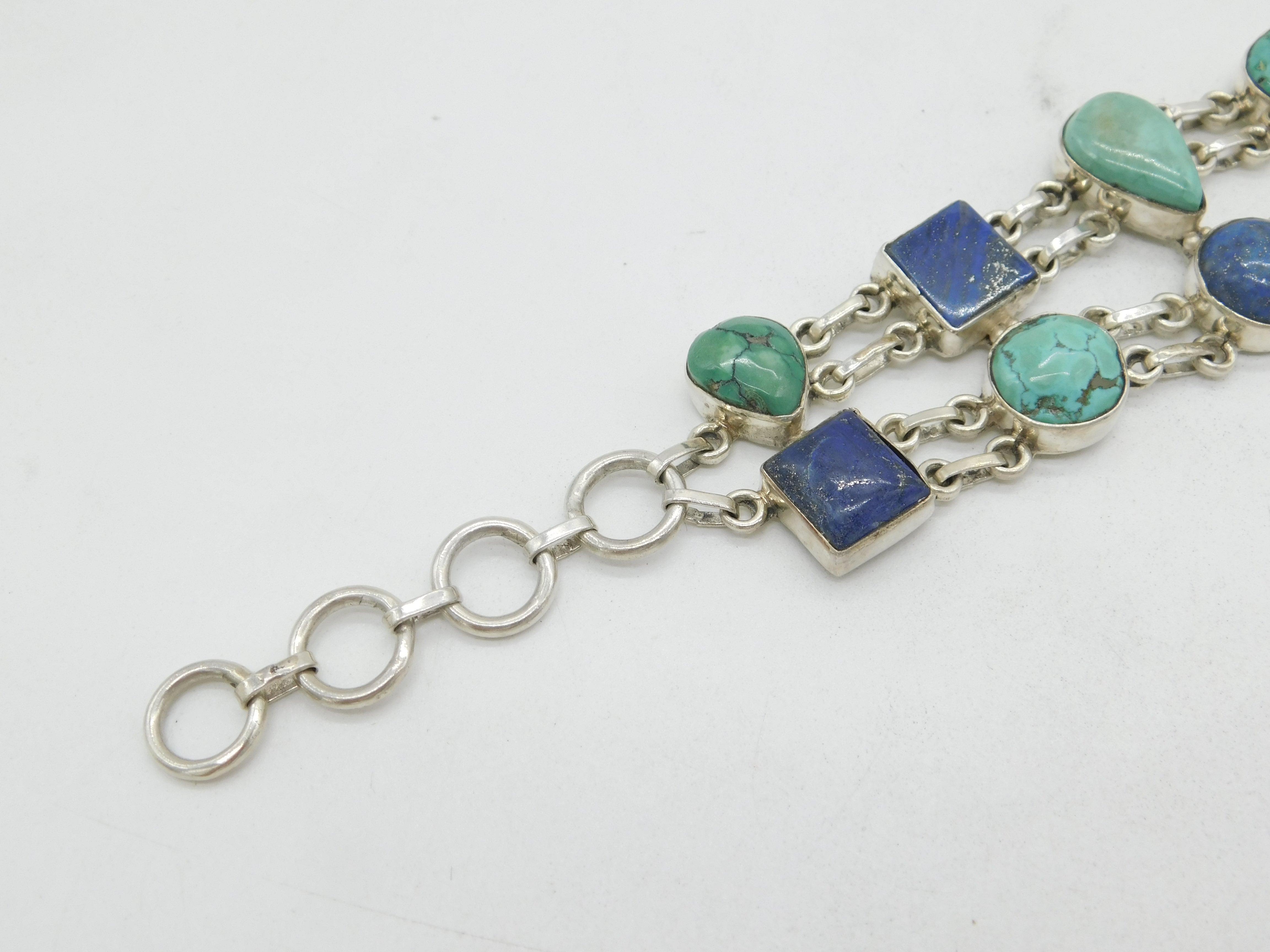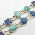 Sterling Silver Large Lapis Lazuli & Turquoise Dress Bracelet Vintage c1980