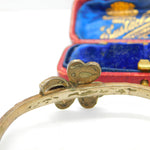 Details: A fantastic and wonderfully designed antique Victorian Austro-Hungarian 8ct yellow gold (garnet gold) bangle bracelet in the form of a good luck clover or shamrock set throughout with deep red Bohemian garnet stones c1860. The gold has been XRF tested. Minor dent to the back edge, slightly misshapen but generally a great example. This is a wonderful item that would make a perfect gift or addition to any collection. The BOX pictured is for PRESENTATION ONLY and is NOT included in the listings but used to frame the pictures unless specifically stated otherwise.