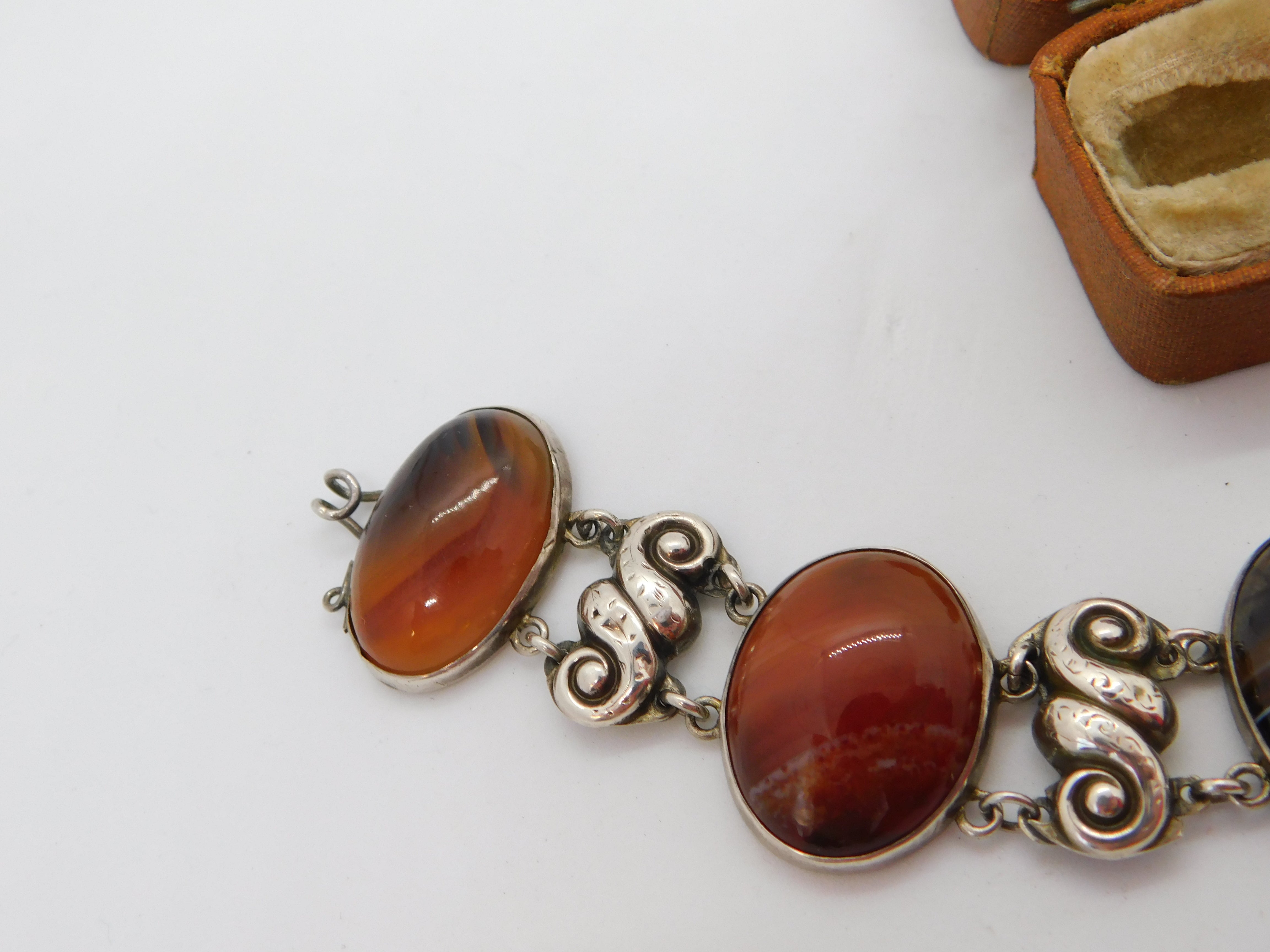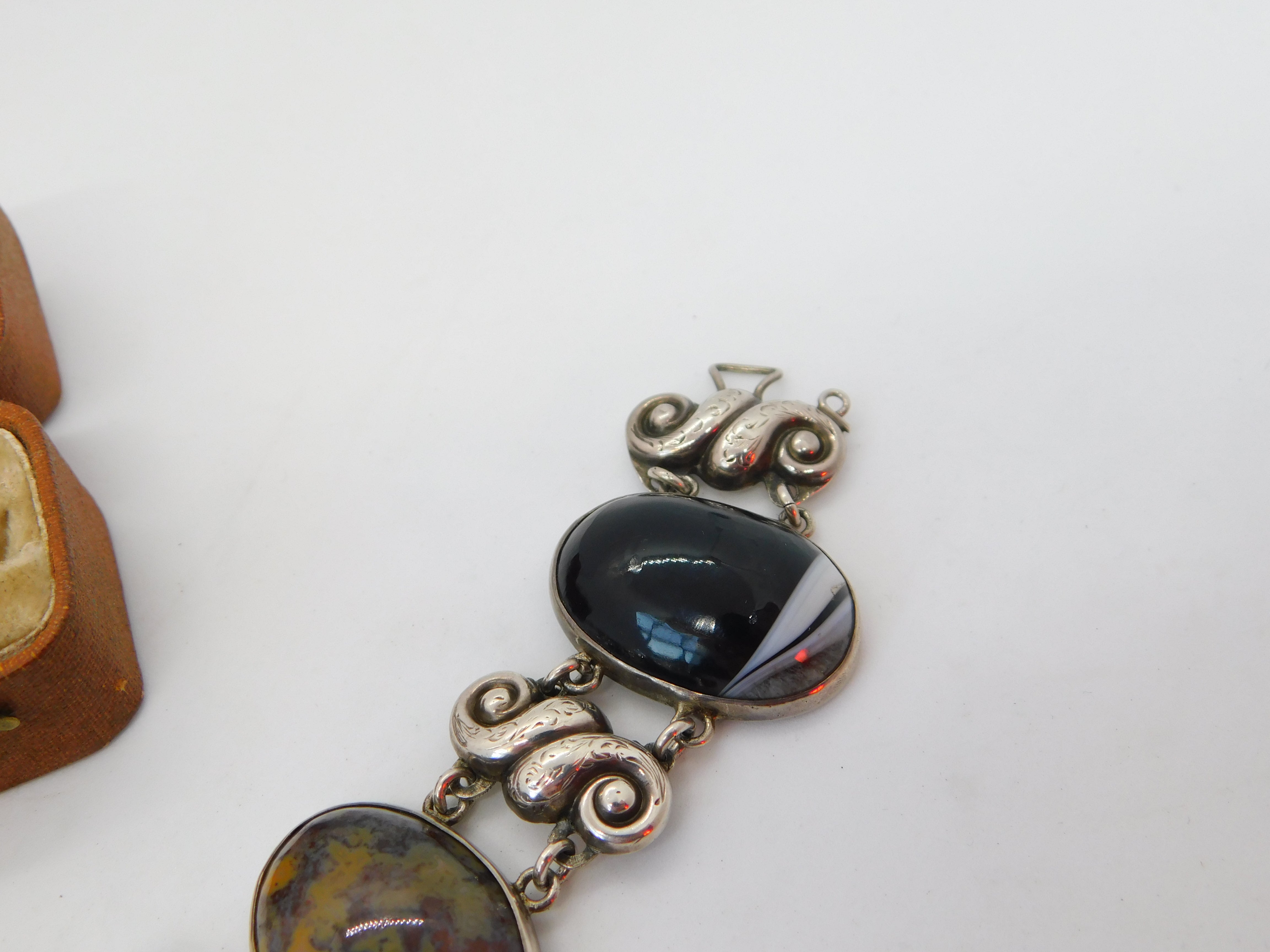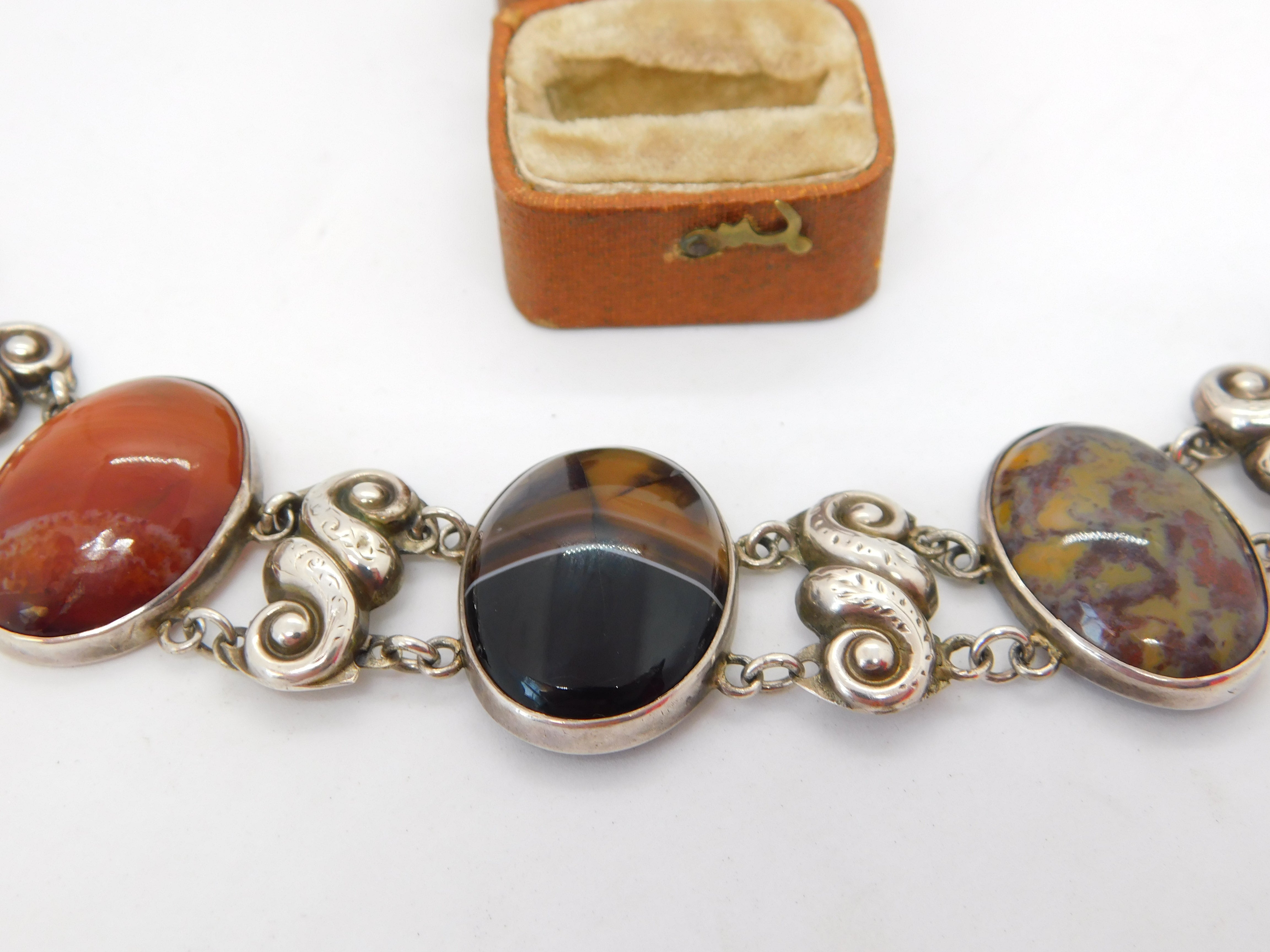 Victorian Scottish Sterling Silver Cabochon Agate Panel Bracelet c1860 Antique