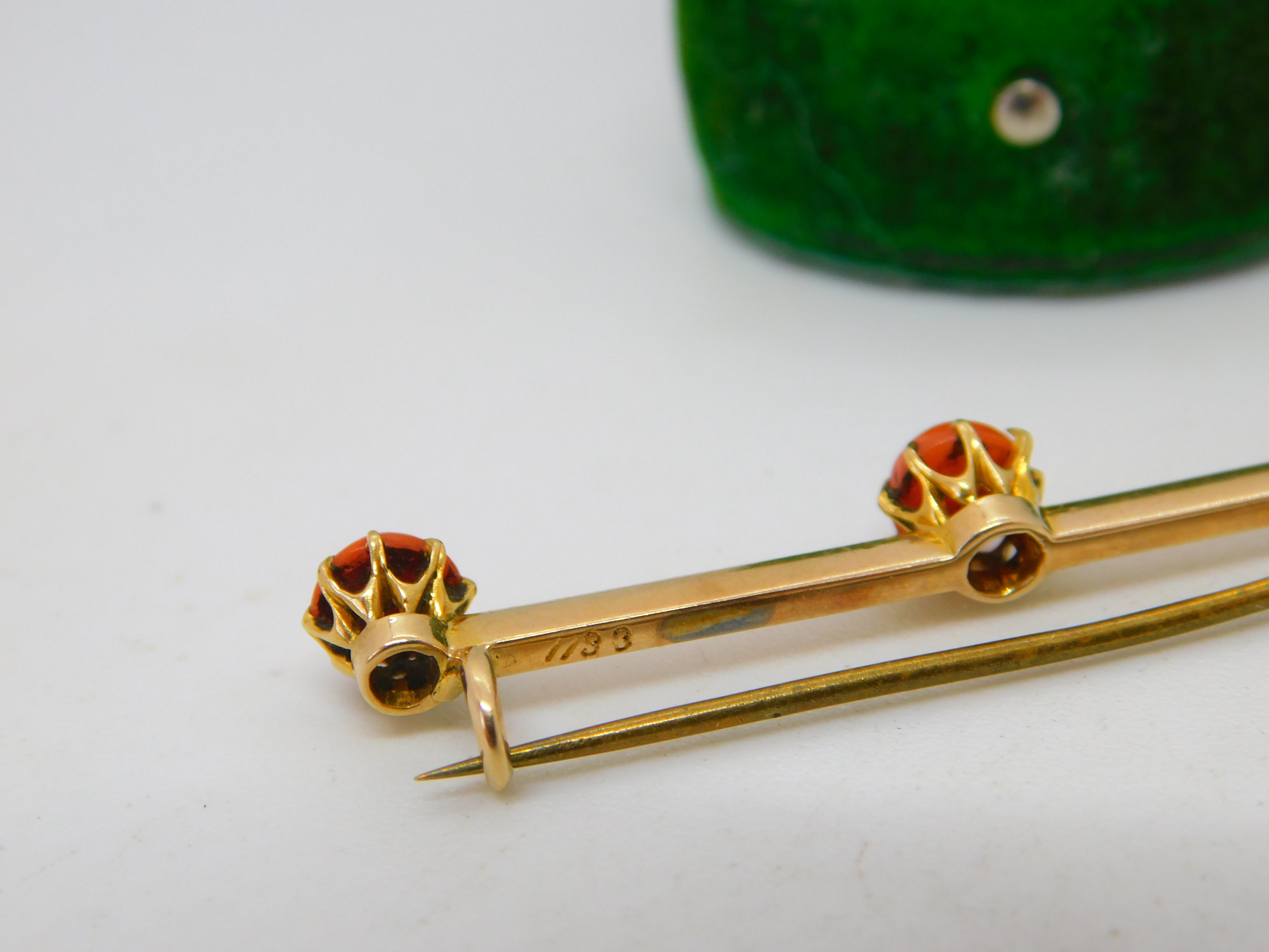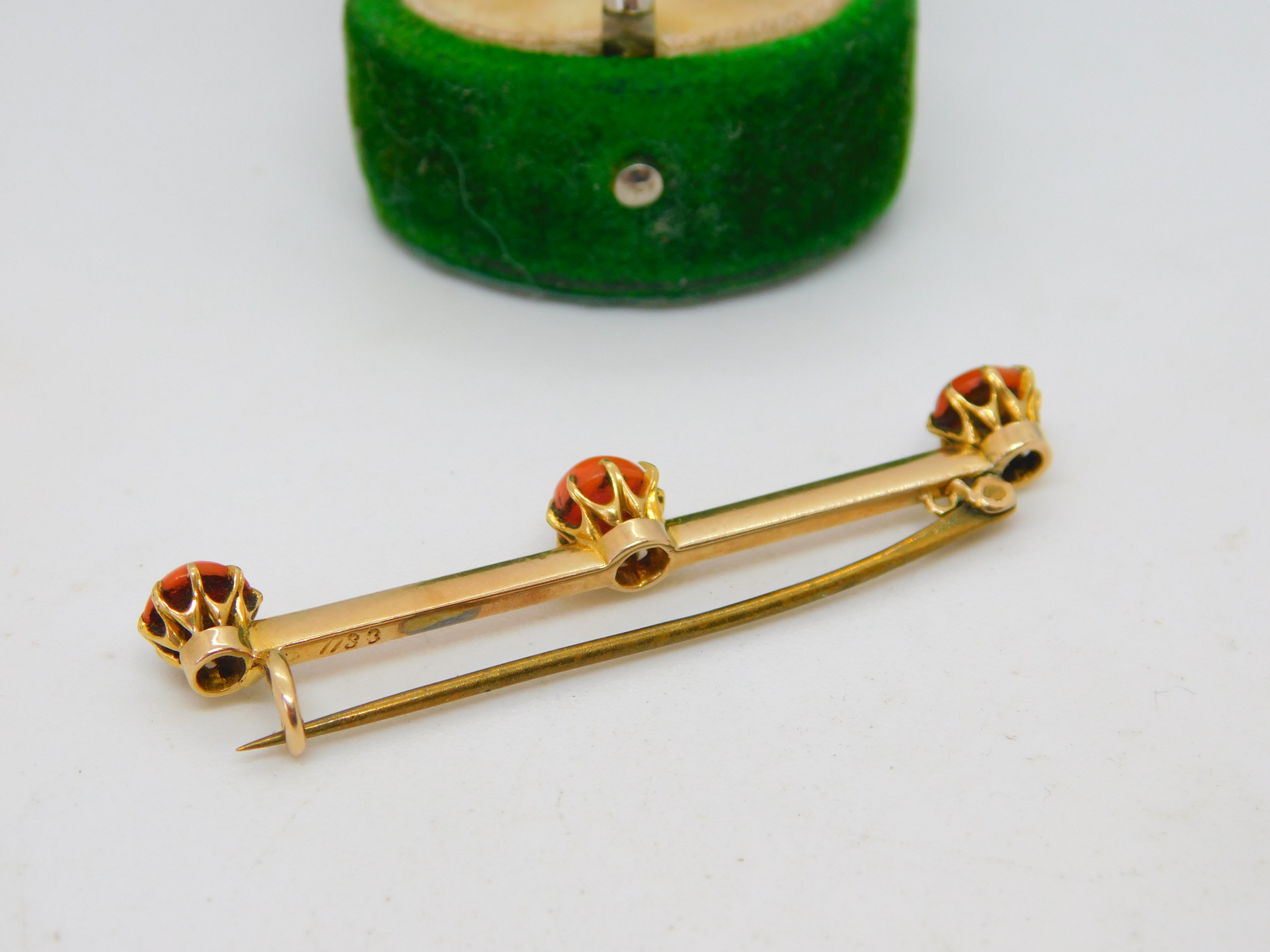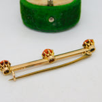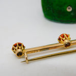 19th Century 15ct Yellow Gold Red Coral Set Bar Brooch Antique c1880