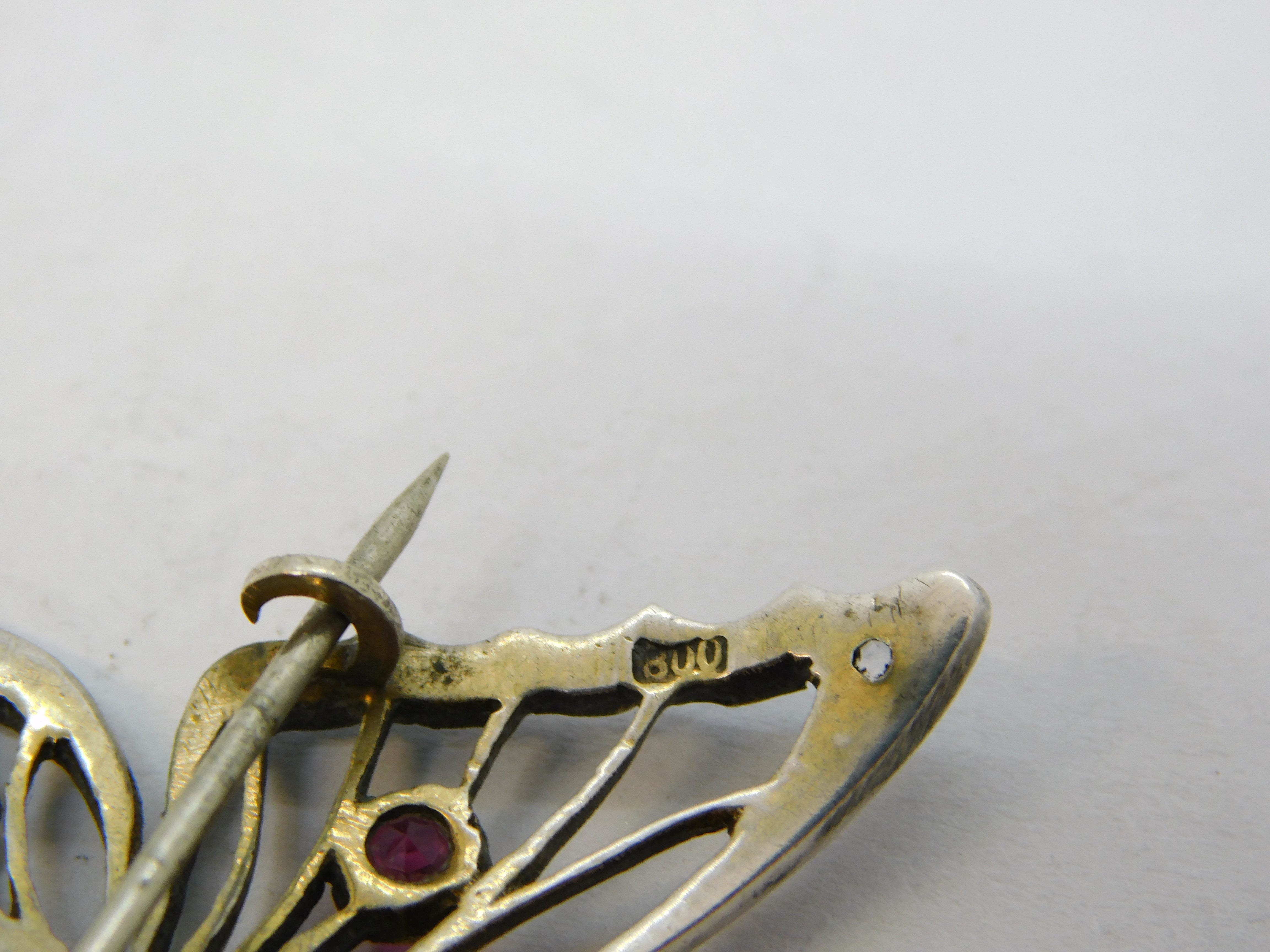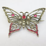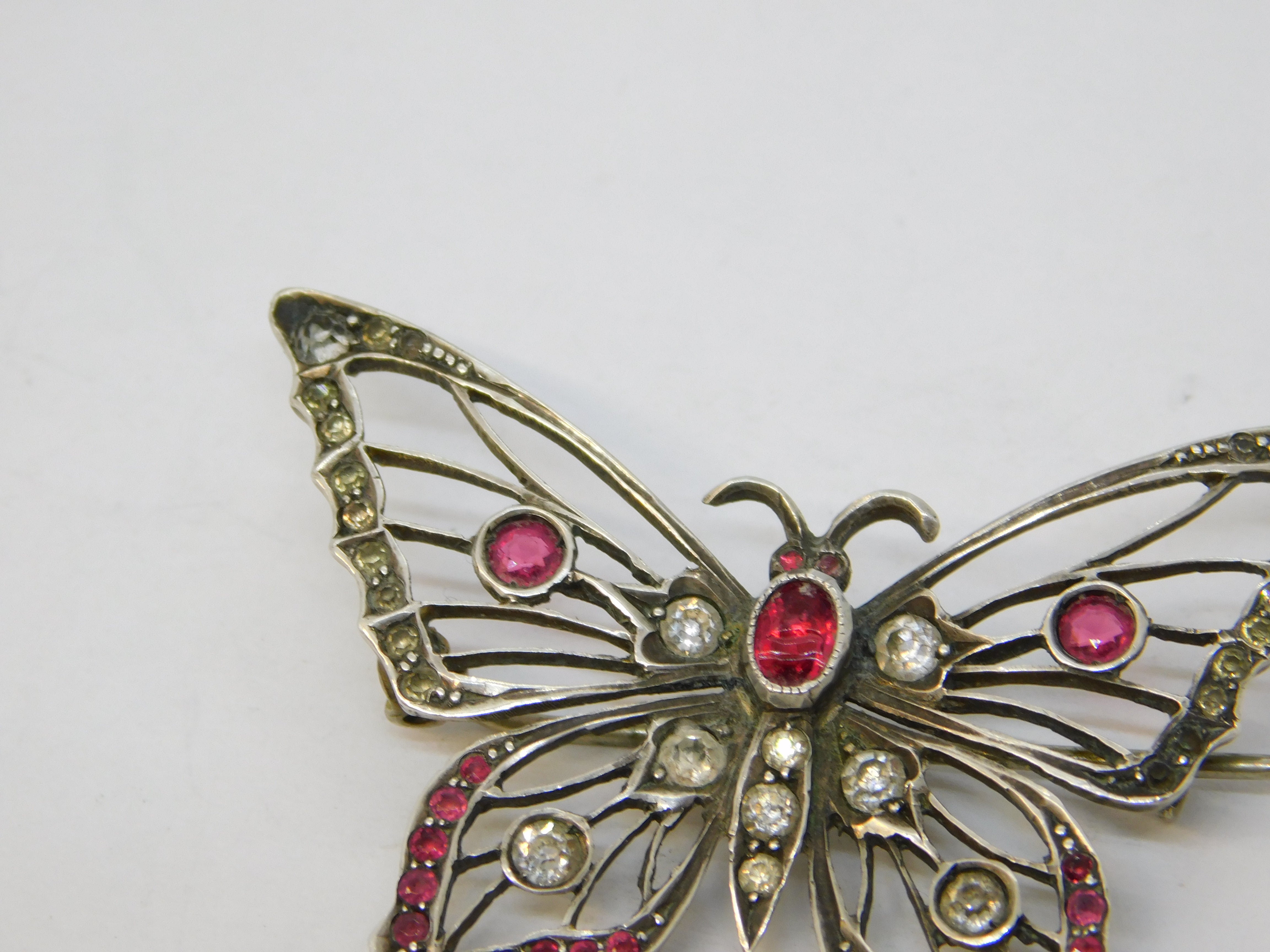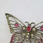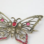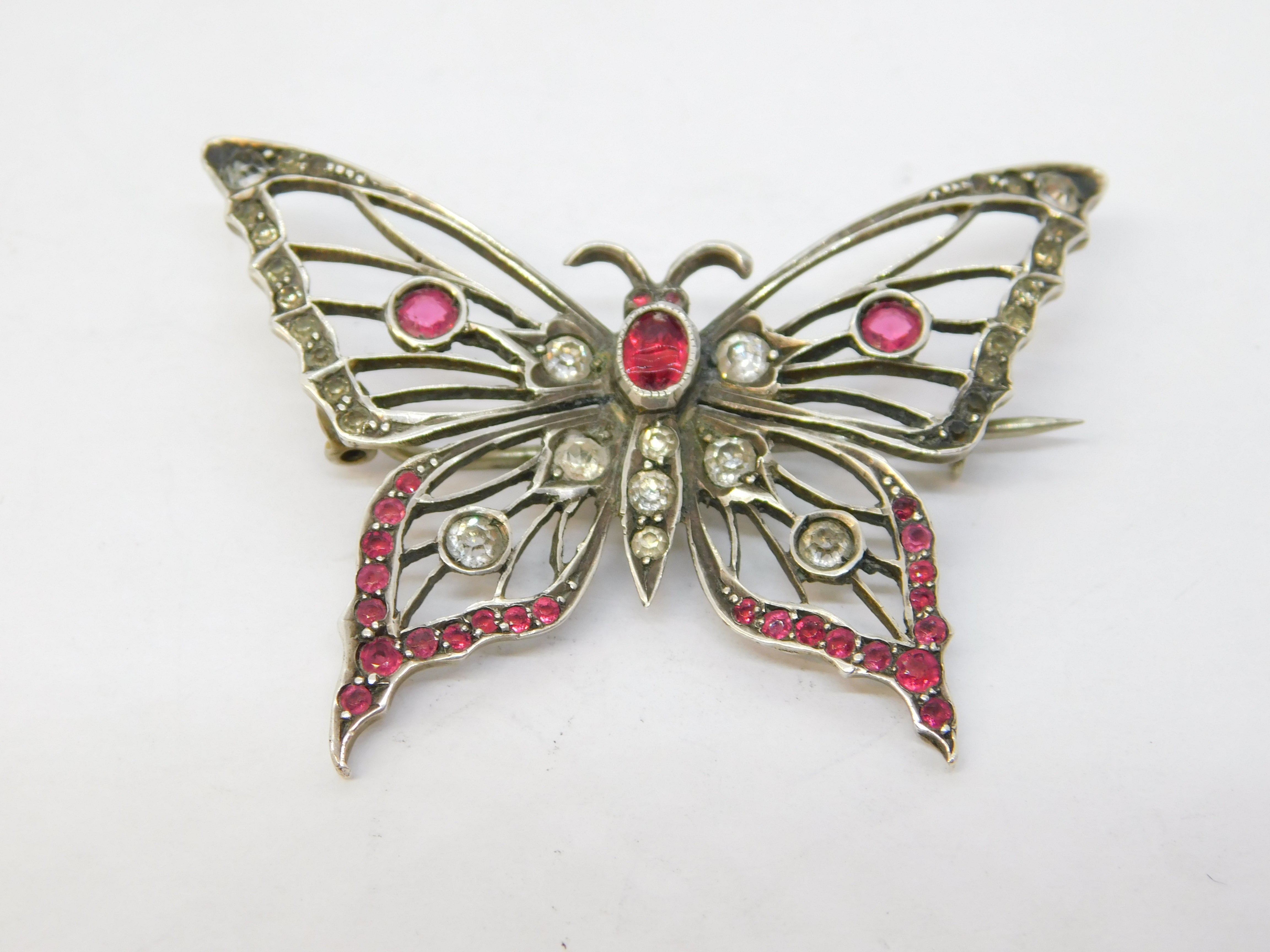 19th Century .800 Silver Red-White Paste Set Butterfly Brooch Antique c1860
