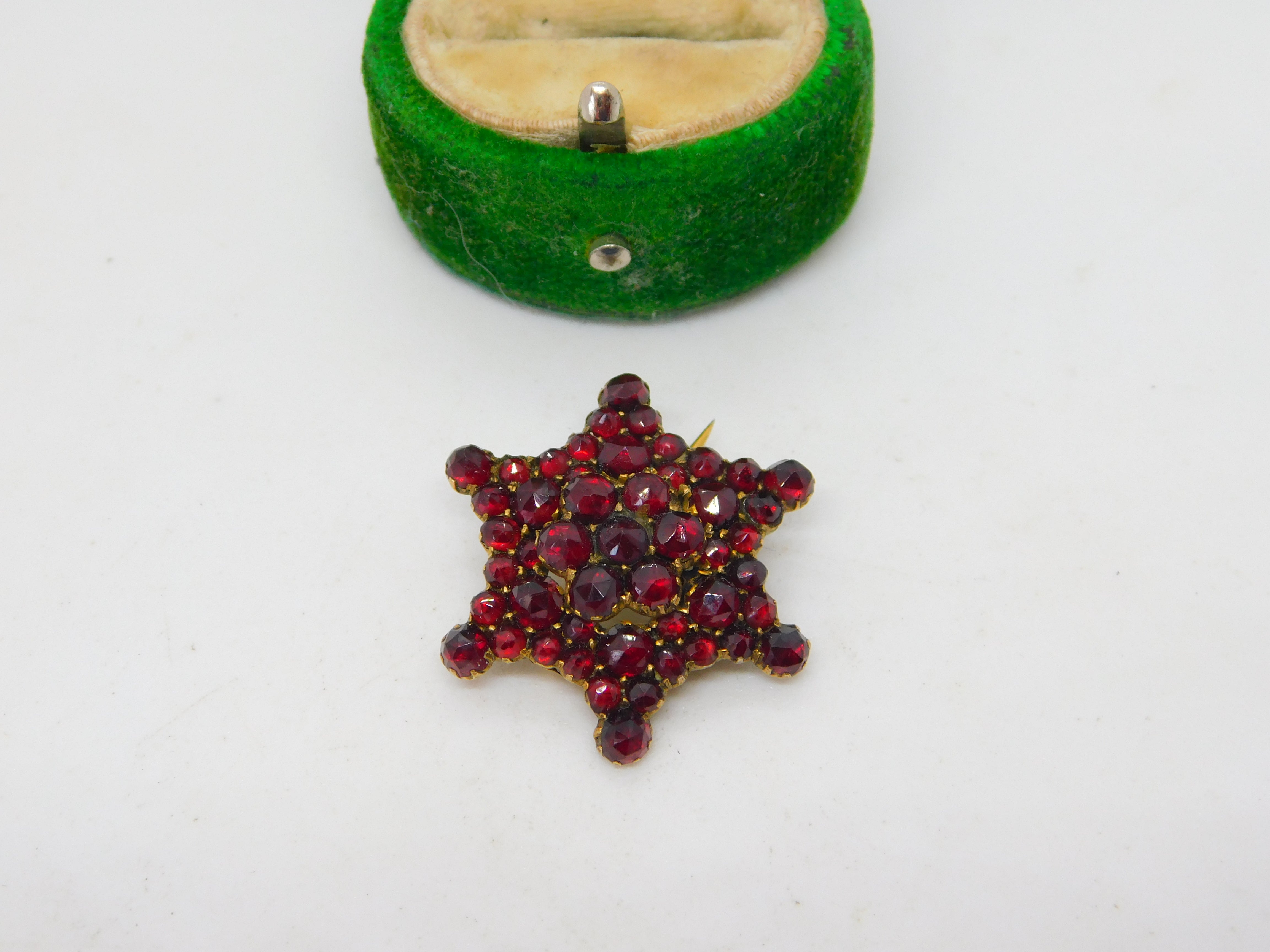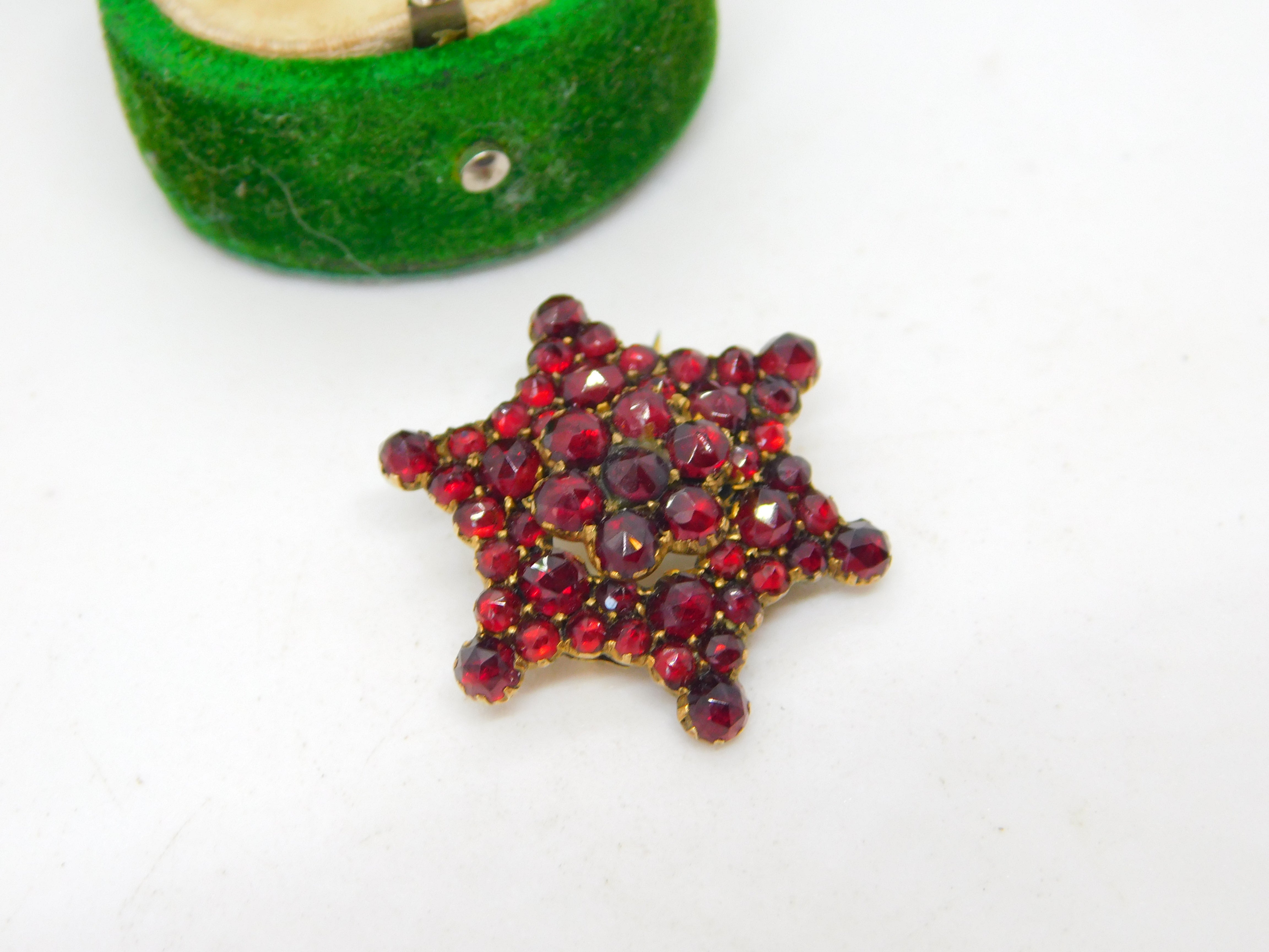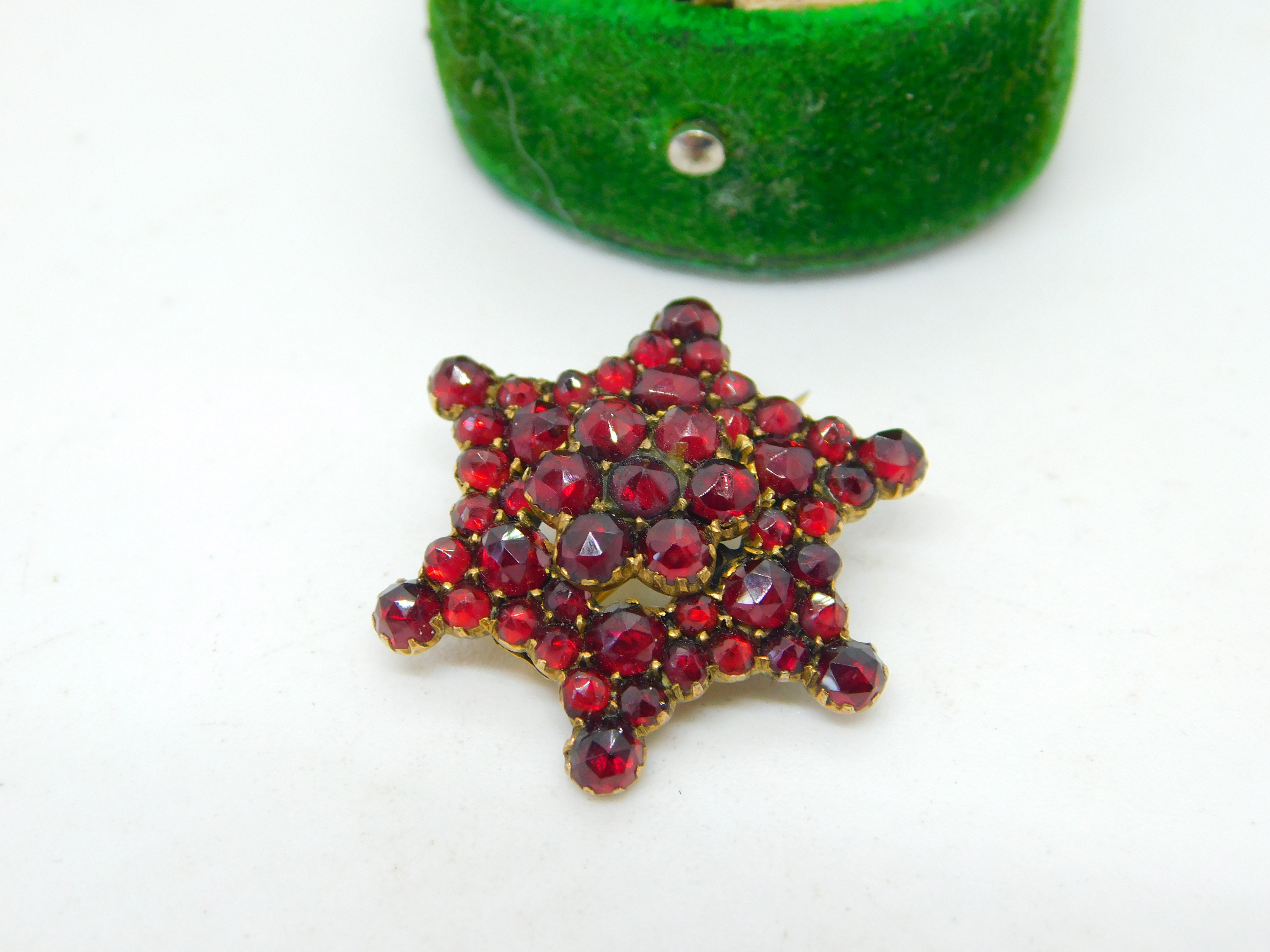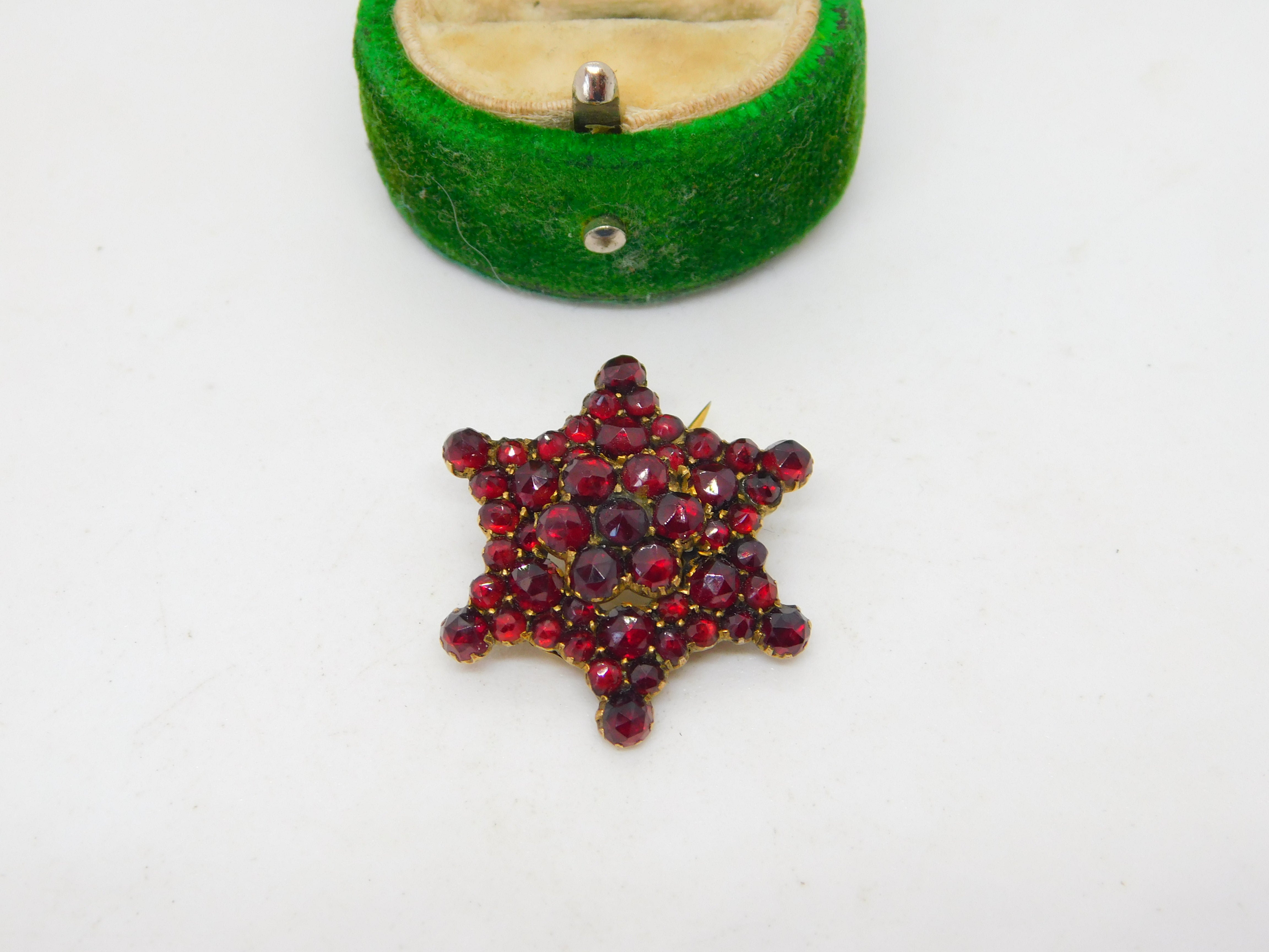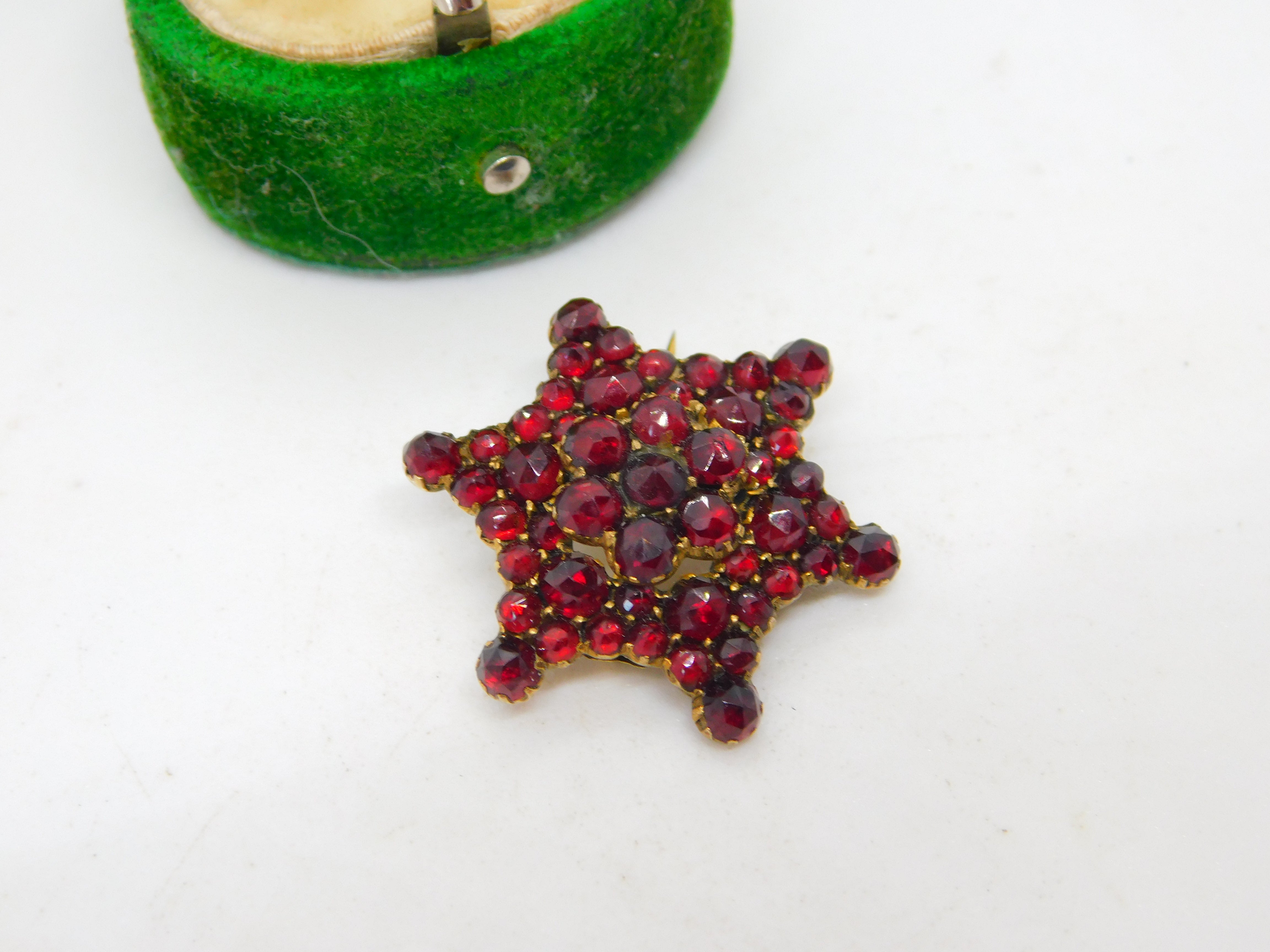19th Century Austrian 8ct Gold & Bohemian Garnet Star Brooch Antique c1860