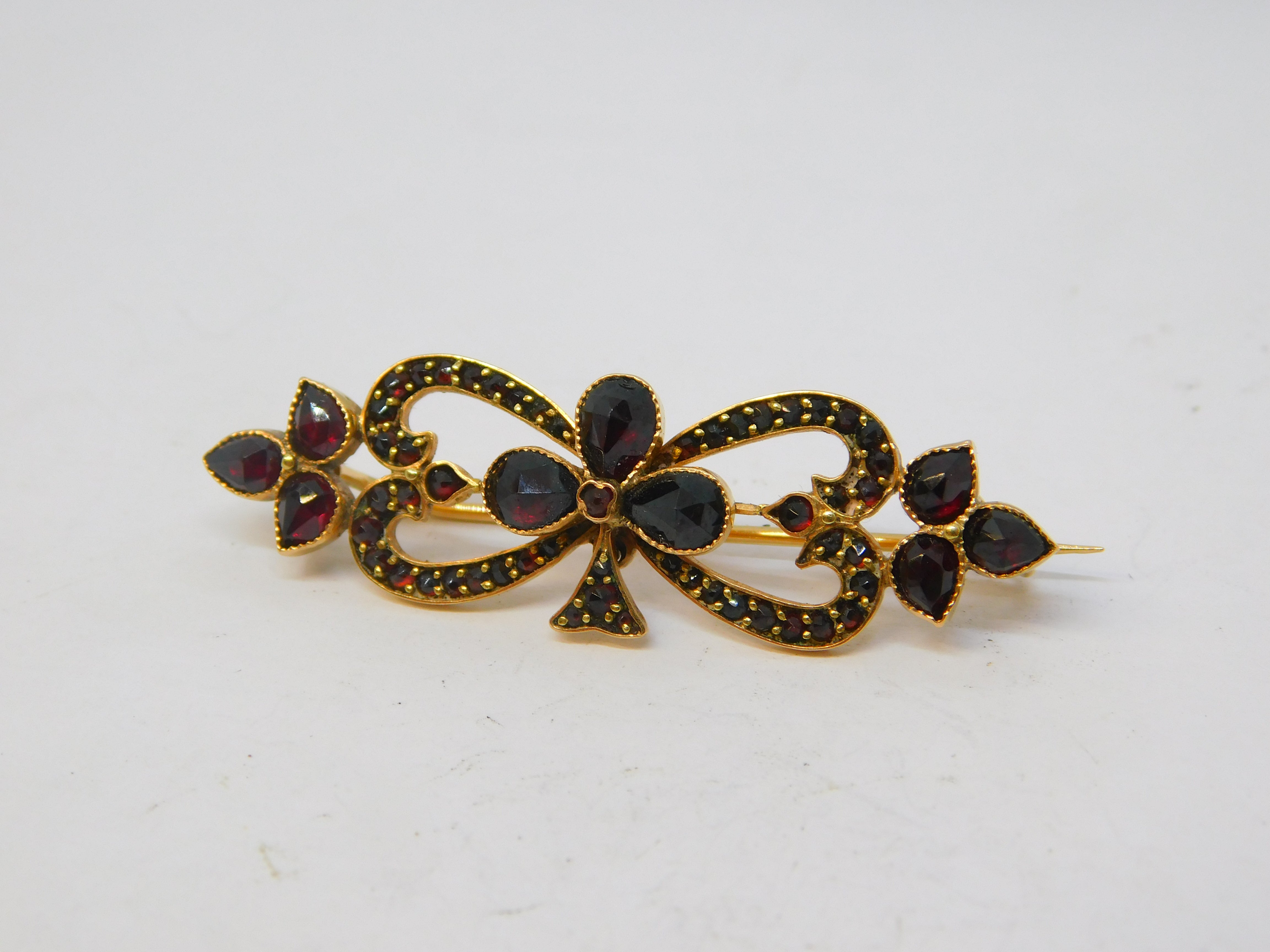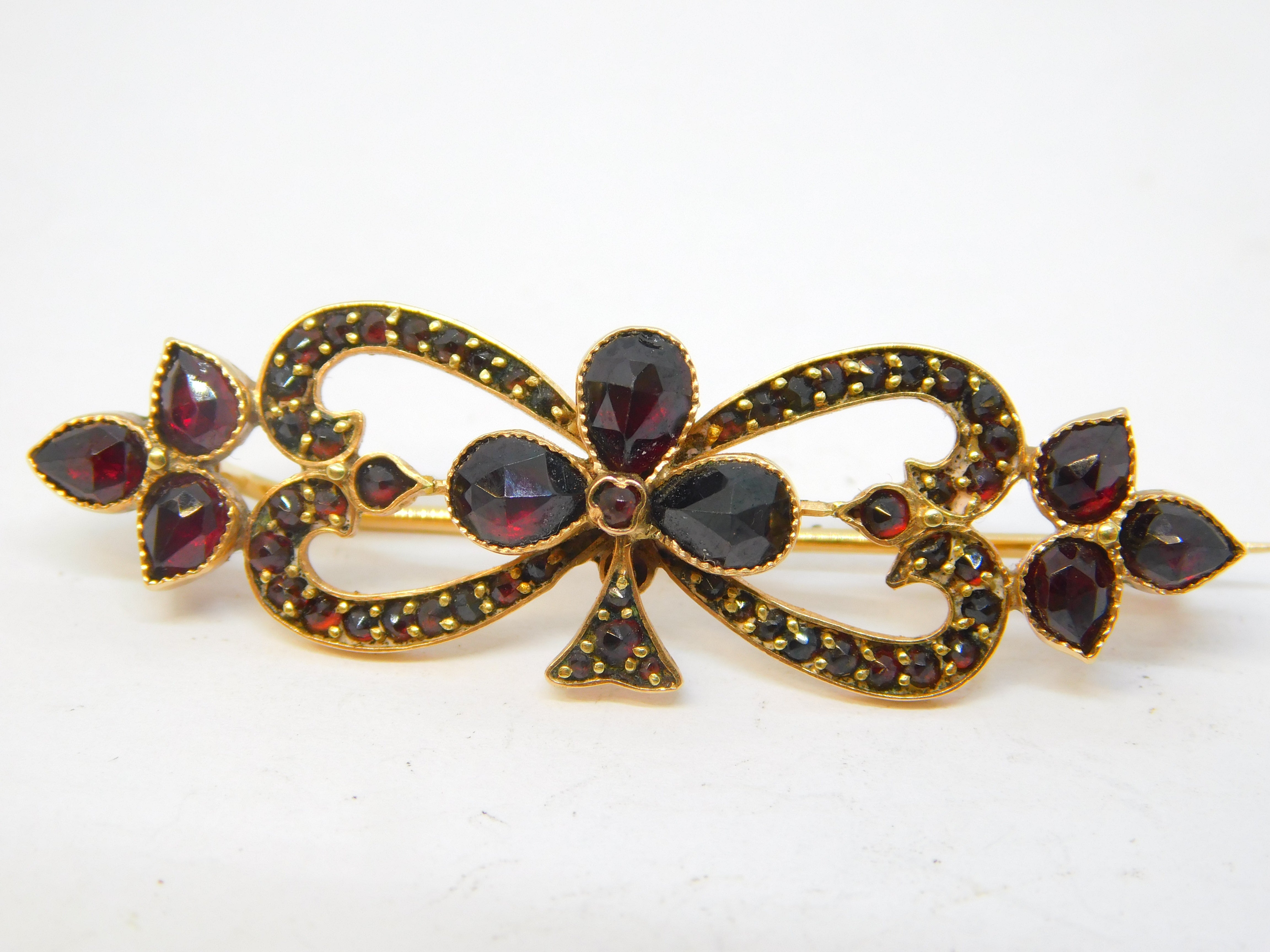 19th Century Austro-Hungarian 14ct Gold Garnet Set Floral Brooch Antique c1860