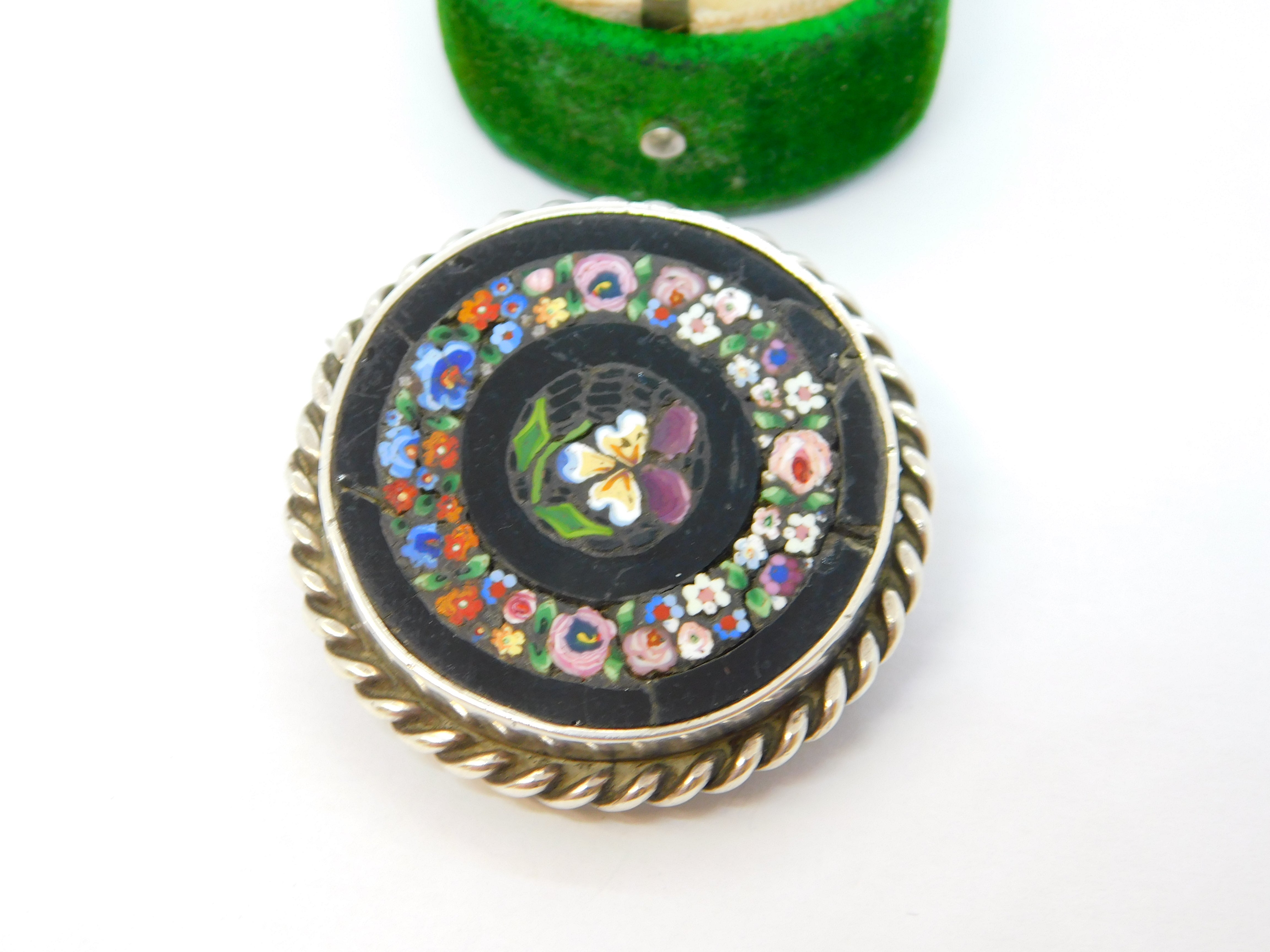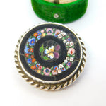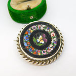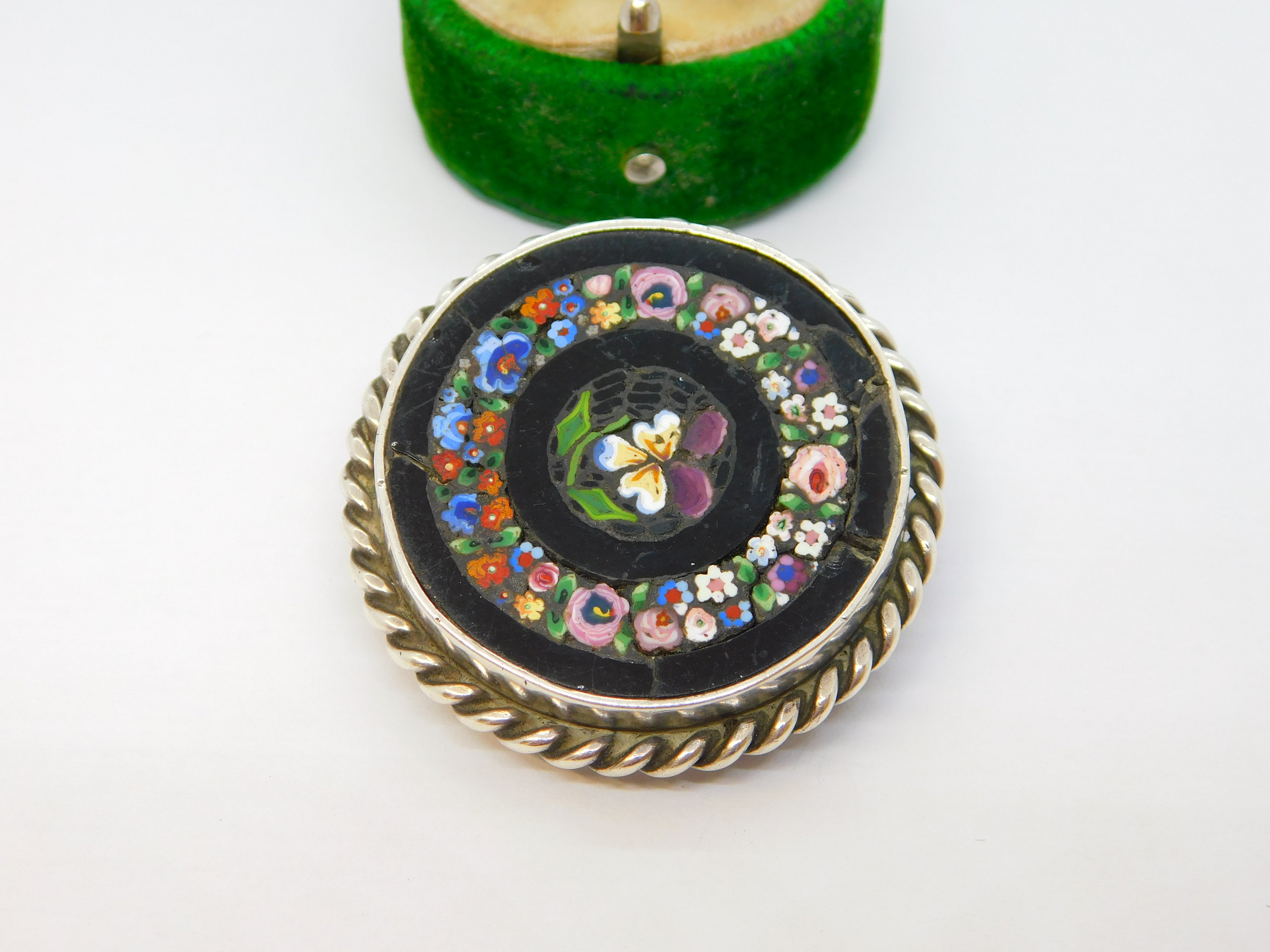 19th Century Sterling Silver Colourful Floral Micro Mosaic Antique c1860
