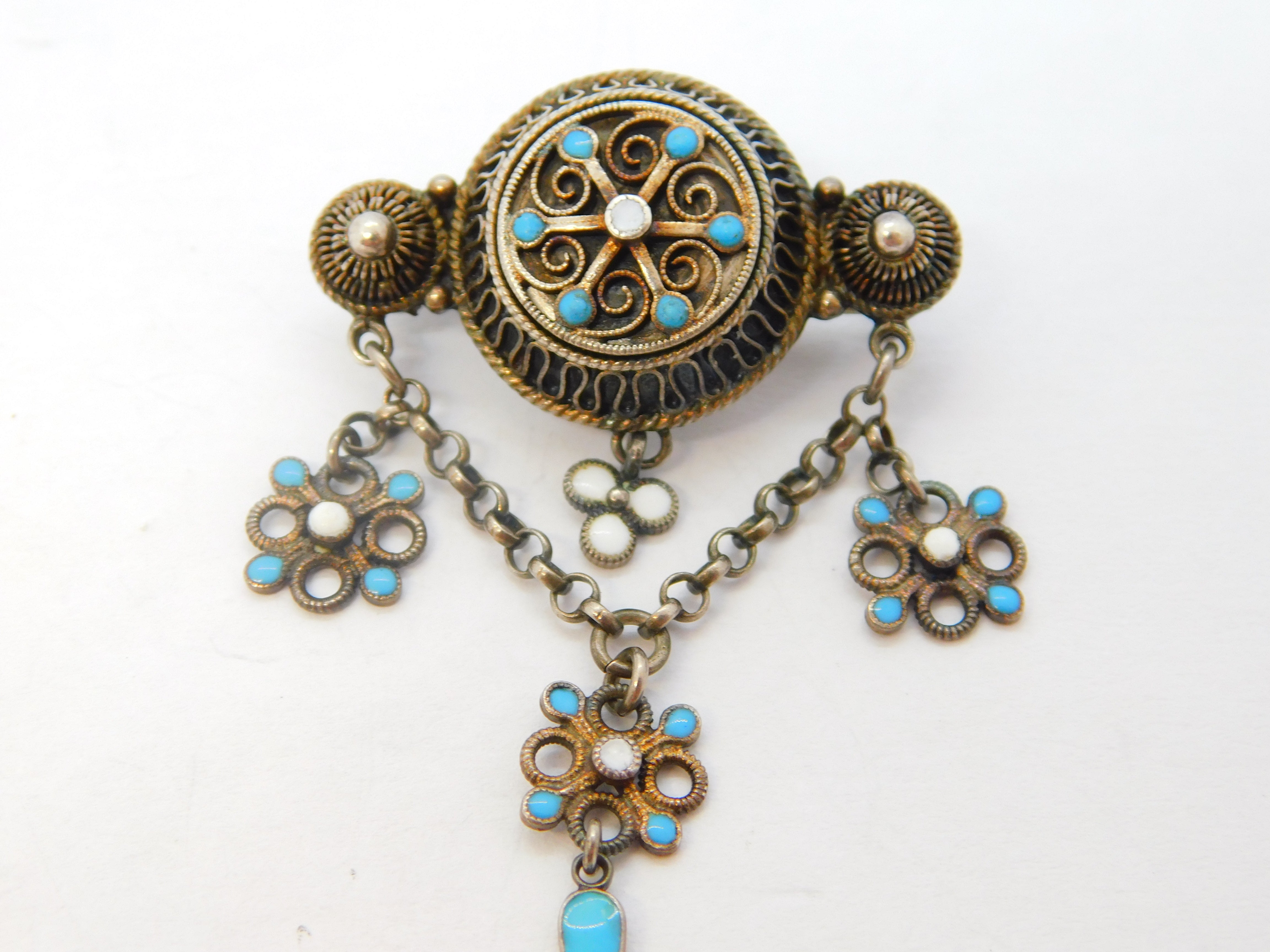 Details: A fantastic and wonderfully designed antique .830 Scandinavian silver & blue-white enamel floral lavalier drop brooch with lovely detailing hallmarked to the reverse by marker 'GH & Co.' This is a wonderful item that would make a perfect gift or addition to any collection.