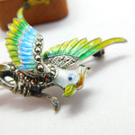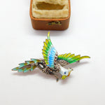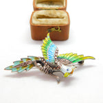 .800 Silver & Colourful Enamel Parrot on Perch Statement Brooch c1990 Vintage
